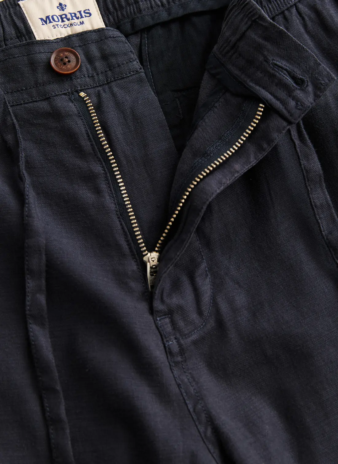 Fenix Linen Shorts fra Morris Stockholm. Laget i en lett bomulls- og linblanding med stretch, som gir god komfort og pusteevne på varme dager. Den avslappede passformen med snøring i livet og baklommer med knapp gjør dem både praktiske og stilrene. Perfekte til alt fra byliv til ferie ved sjøen.