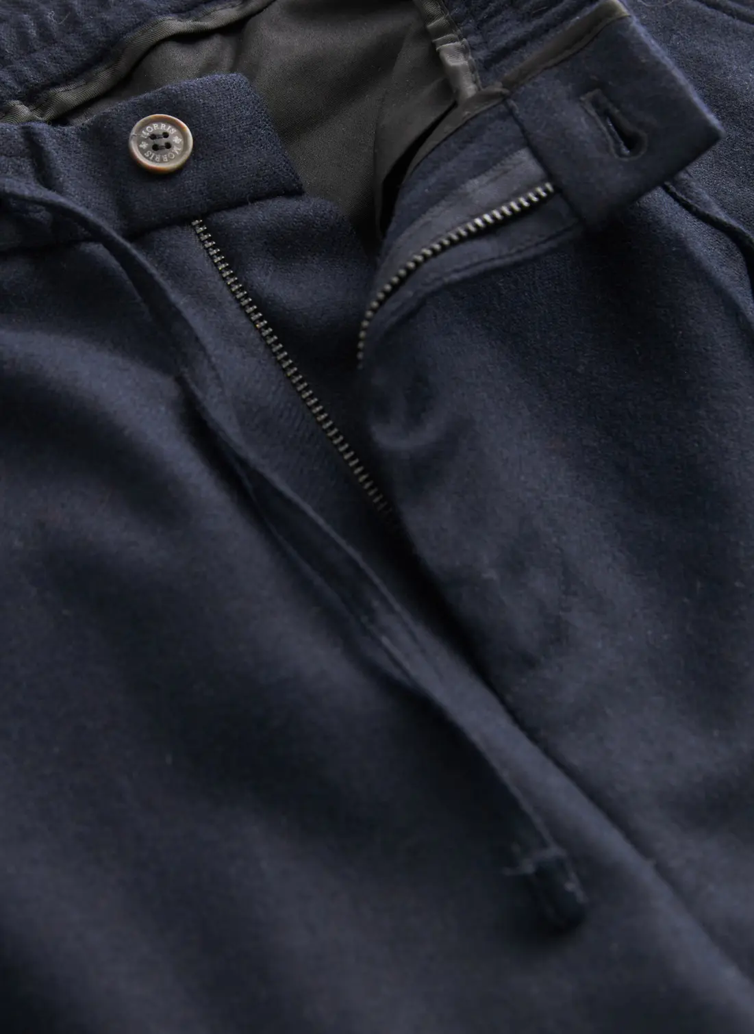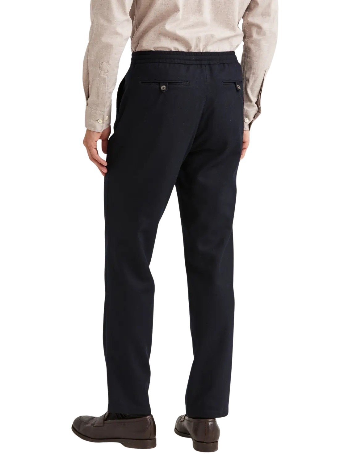 Bukse til herre fra Morris Stockholm. Laget i en myk og lun ullblanding som gir et sofistikert uttrykk, samtidig som den føles behagelig gjennom hele dagen. Den har en avslappet, men stilren passform med justerbar snøring i livet og diskré lommer som gir et pent, uformelt preg. Perfekt både til hverdags og mer pyntede anledninger. Kombiner den med en strikk eller blazer for et helhetlig, stilsikkert uttrykk.