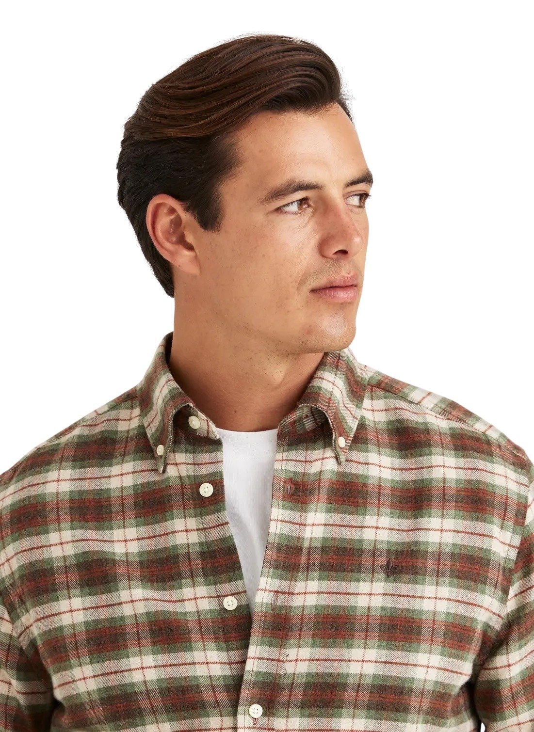 Skjorte til herre fra Morris Stockholm. En klassisk rutete skjorte, gjenskapt i mykt børstet bomullsflanell. Varm uten å føles tung, dette er den typen plagg som fungerer like bra kneppet opp under en jakke som åpen over en t-skjorte. Enkel å kombinere med denim, kordfløyel eller ull.