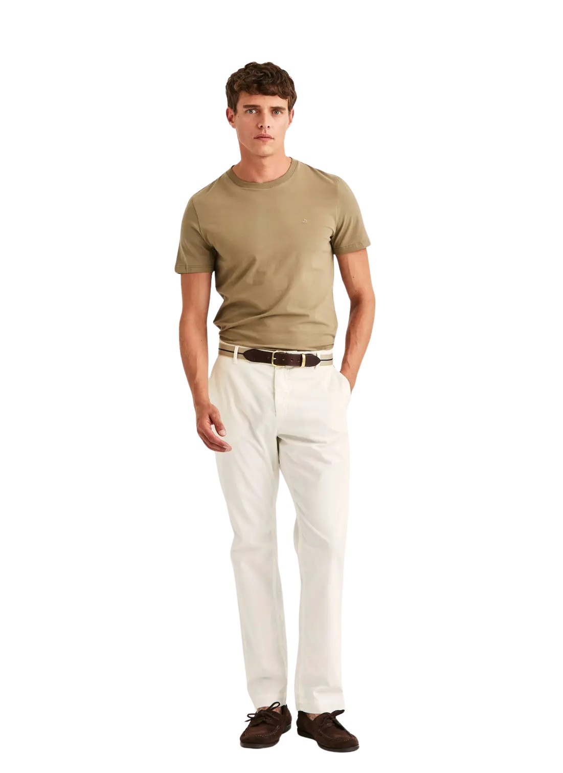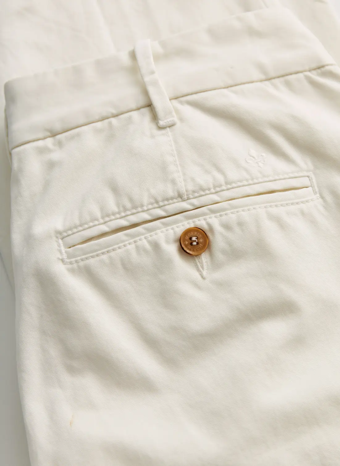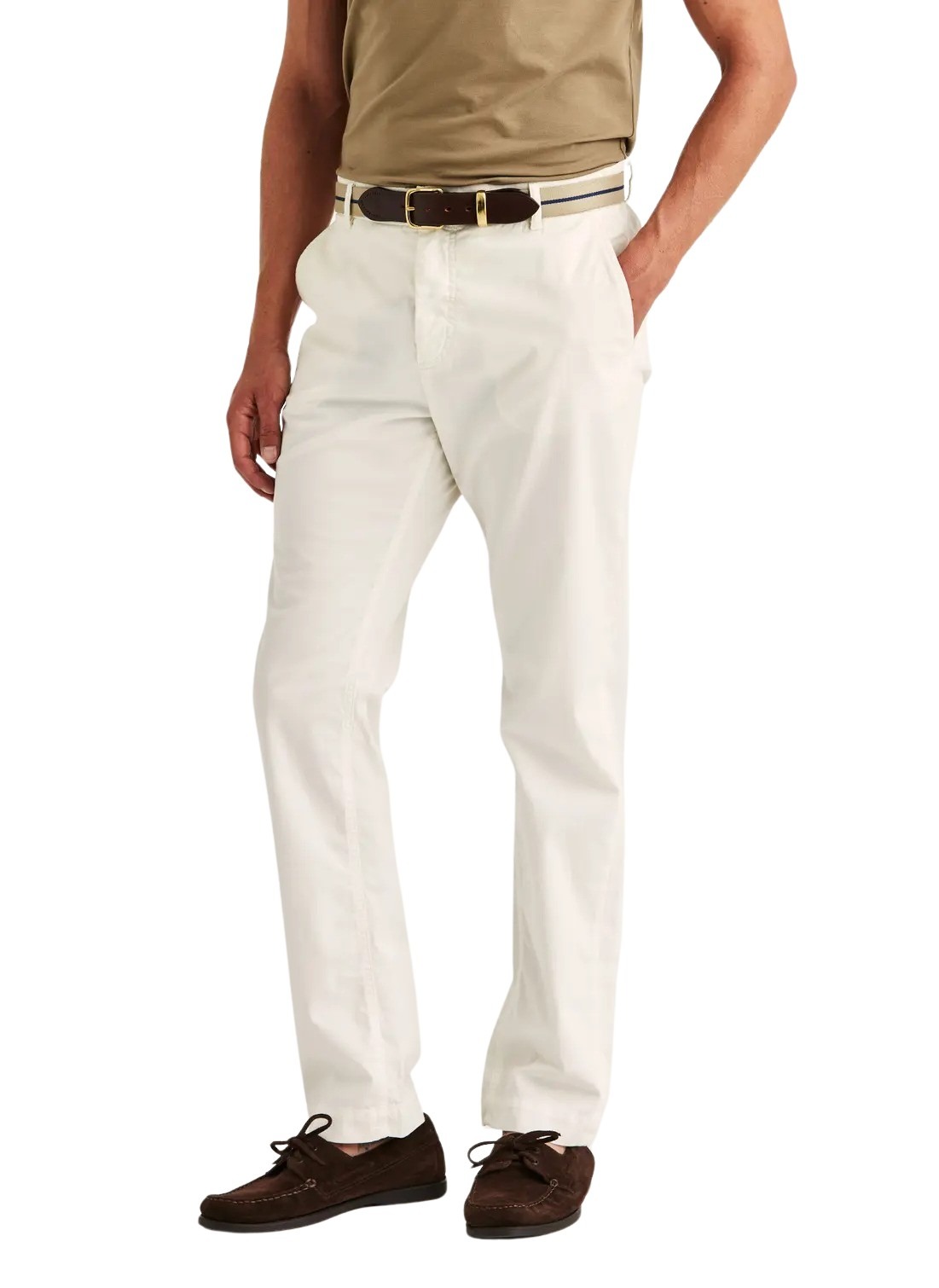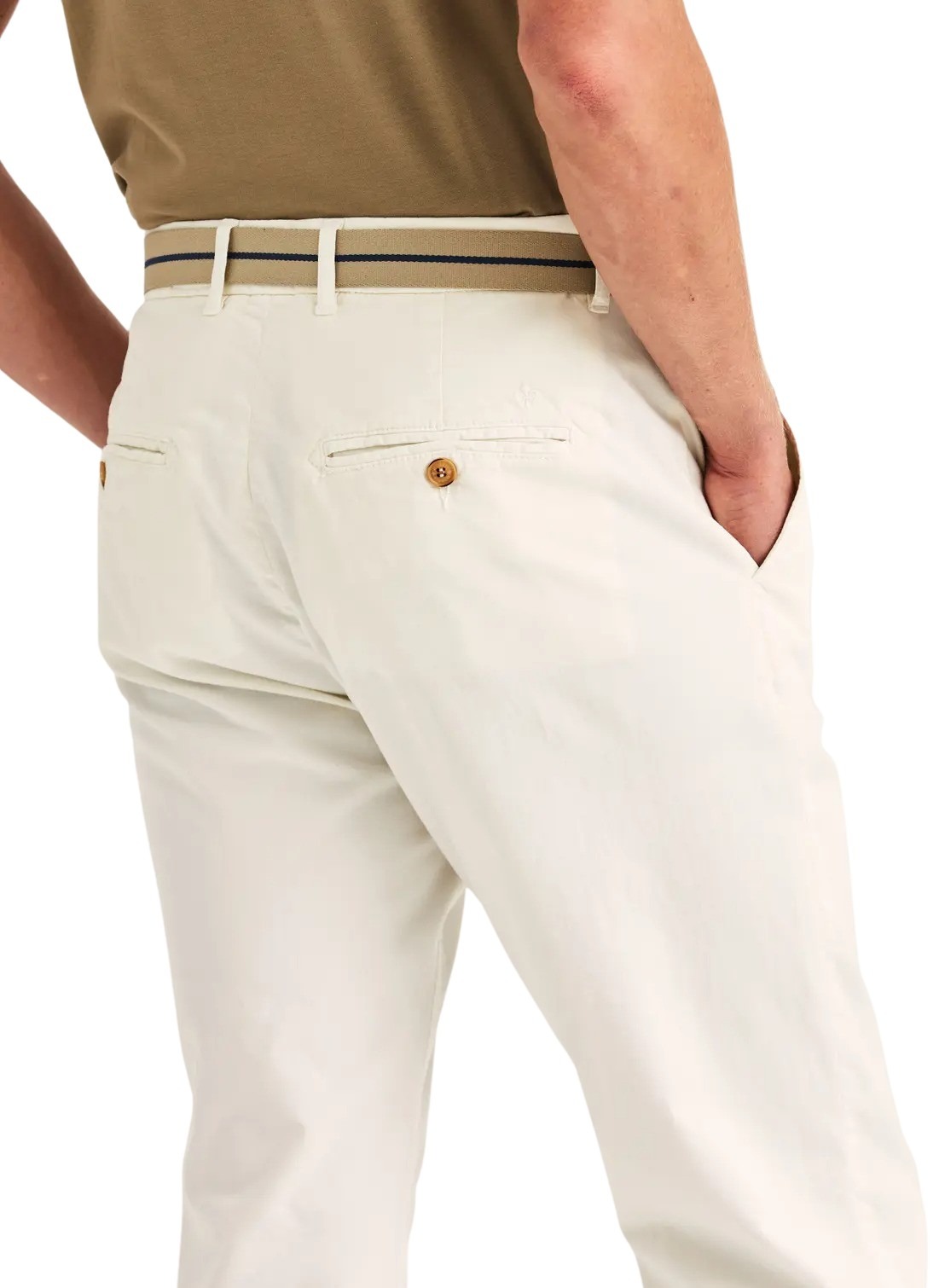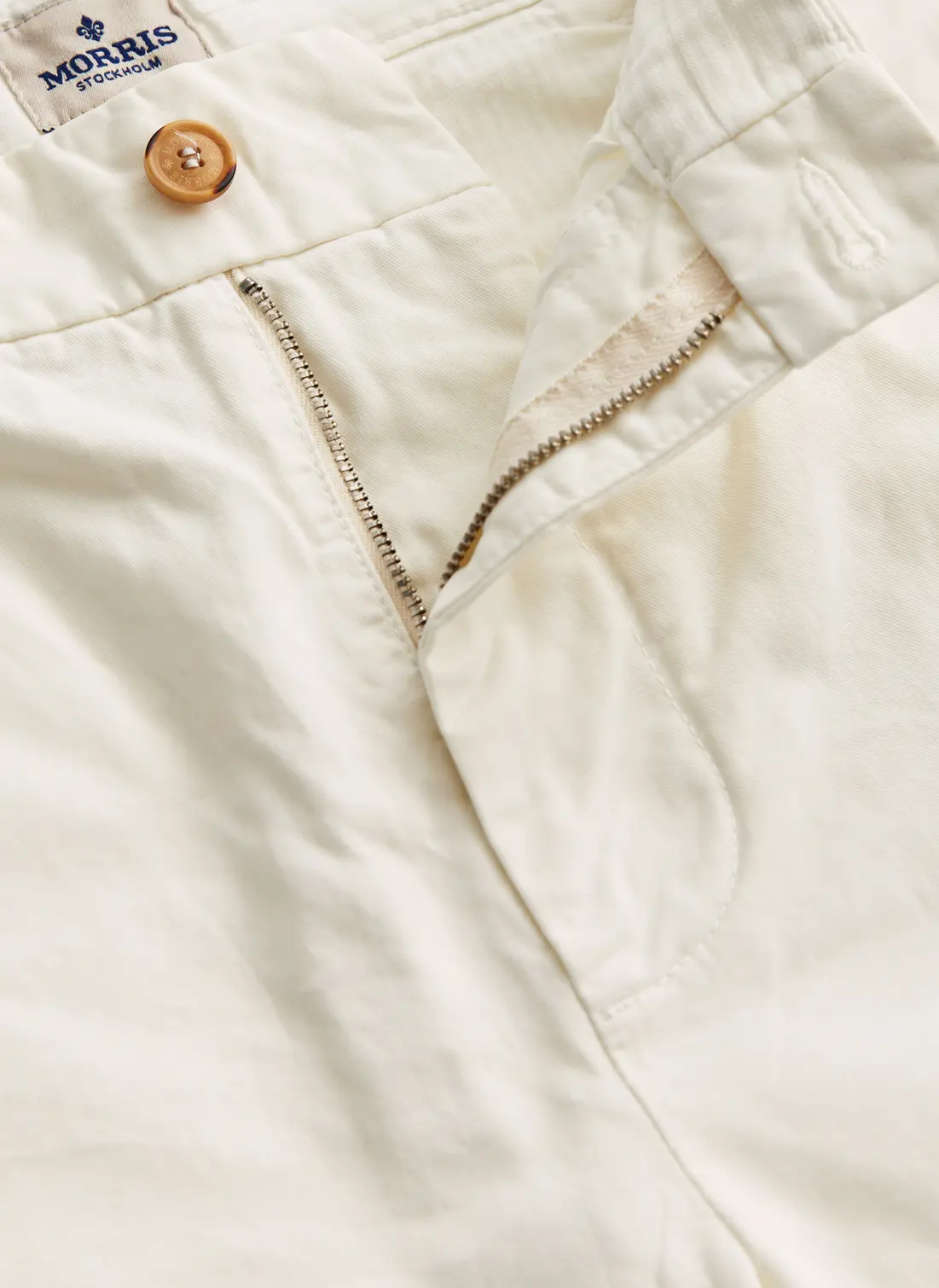 Jeffrey Summer Chino fra Morris Stockholm. Laget i myk bomullstwill med stretch, med en smal passform og middels høy midje. Designet for varme dager, med en balanse mellom struktur og komfort. Skrå frontlommer og passepoilerte baklommer gir et rent, skreddersydd uttrykk. En moderne garderobefavoritt for en uanstrengt og velkledd sommerstil.