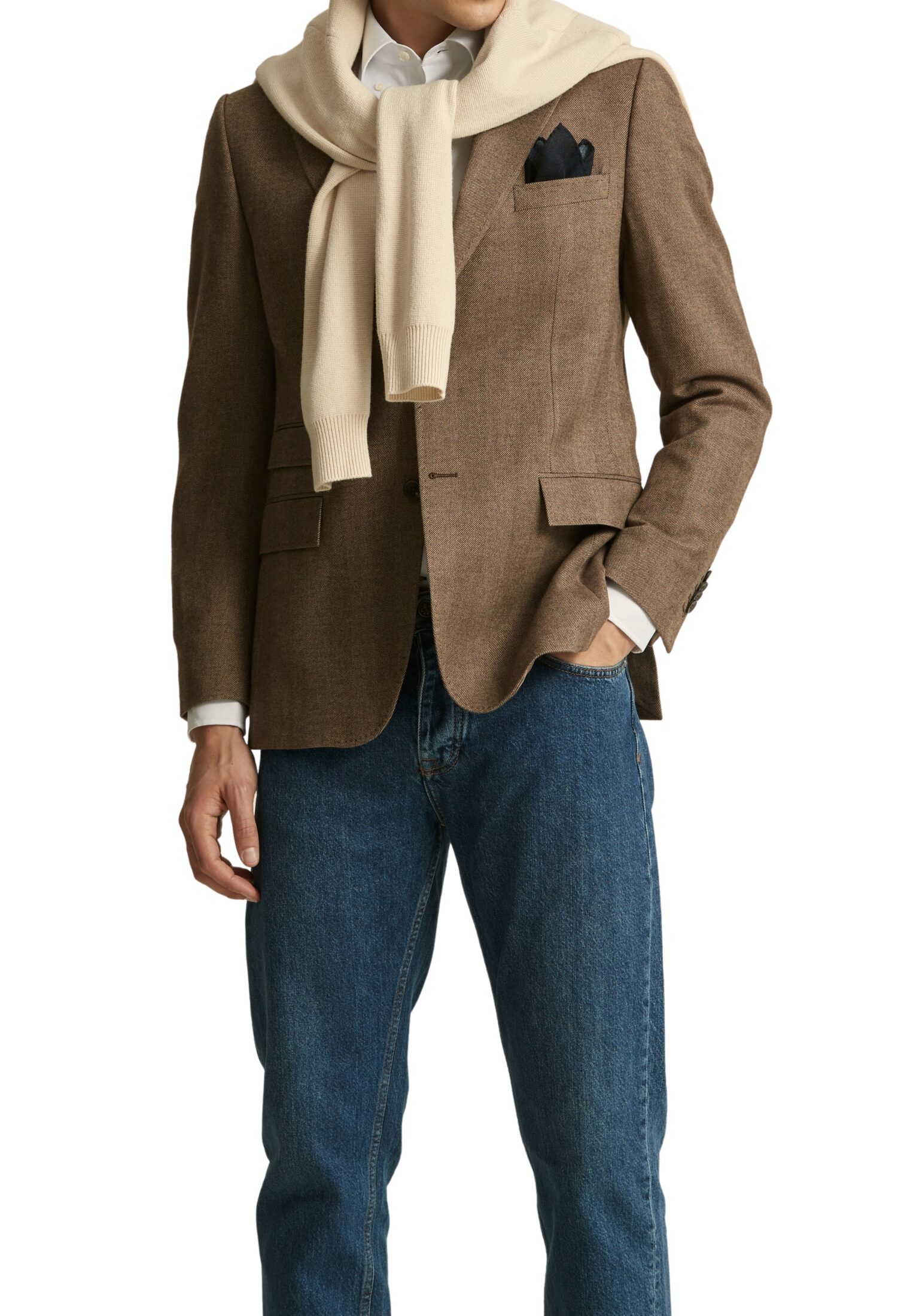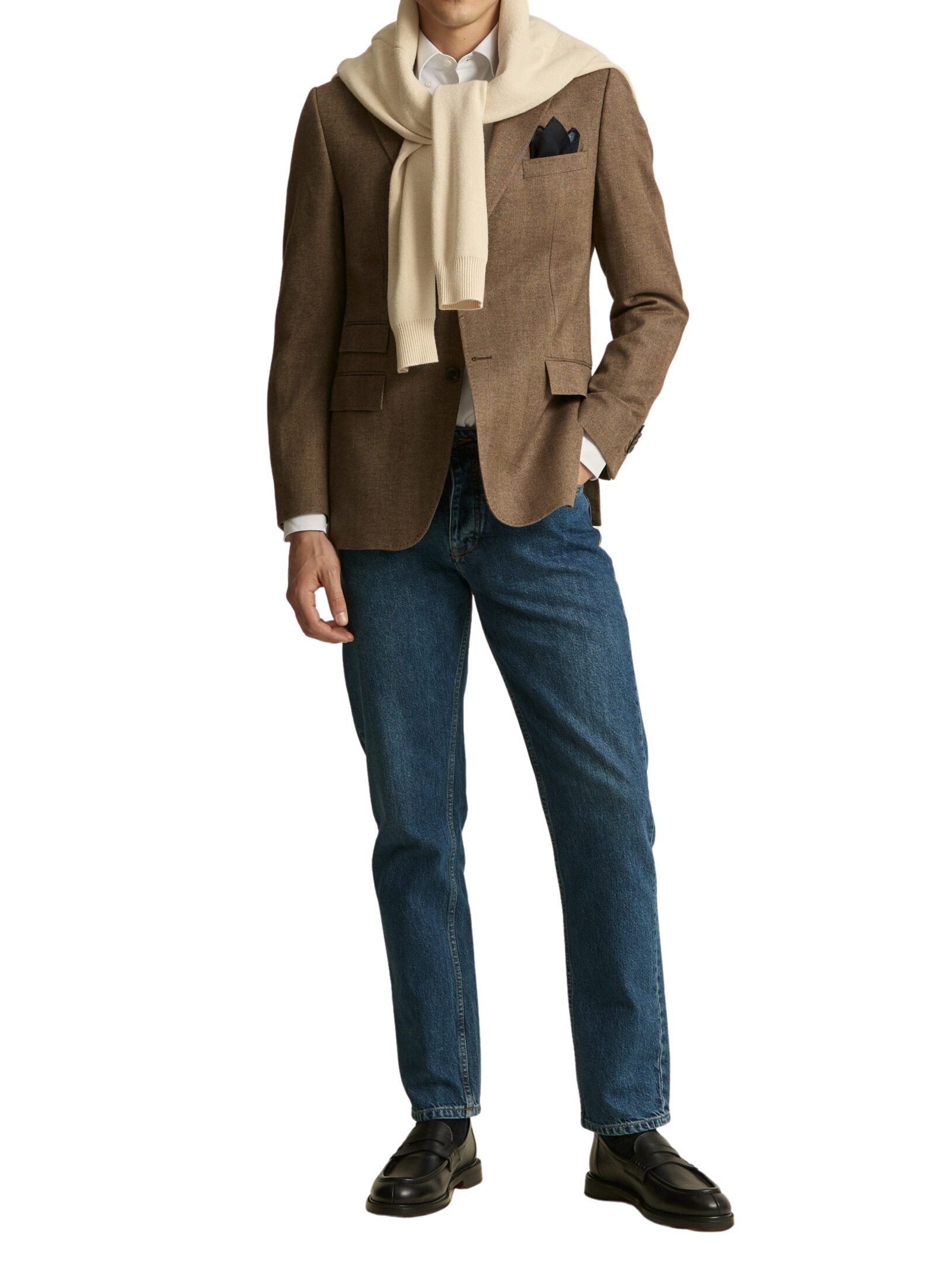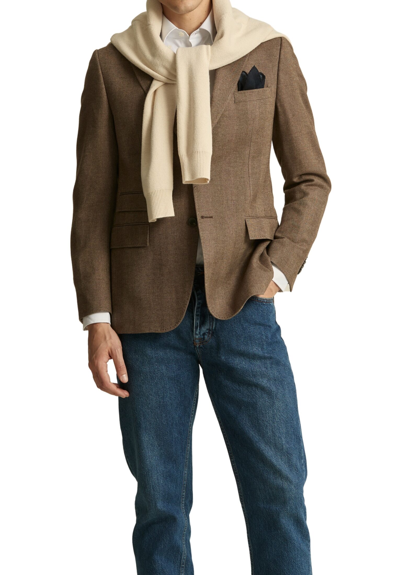 Enkeltspent blazer fra Morris Stockholm. Blazeren er fikskebensmønstret og har to rette lomemr foran i tillegg til brystlomme.