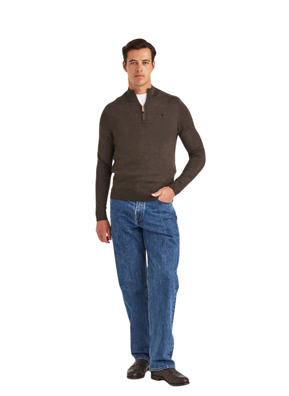 Klassisk half-zip genser i myk merinoull fra Morris Stockholm. En elegant, sporty og allsidig genser, som er et must i garderoben. Like fin over en skjorte, under en blazer eller som den er.