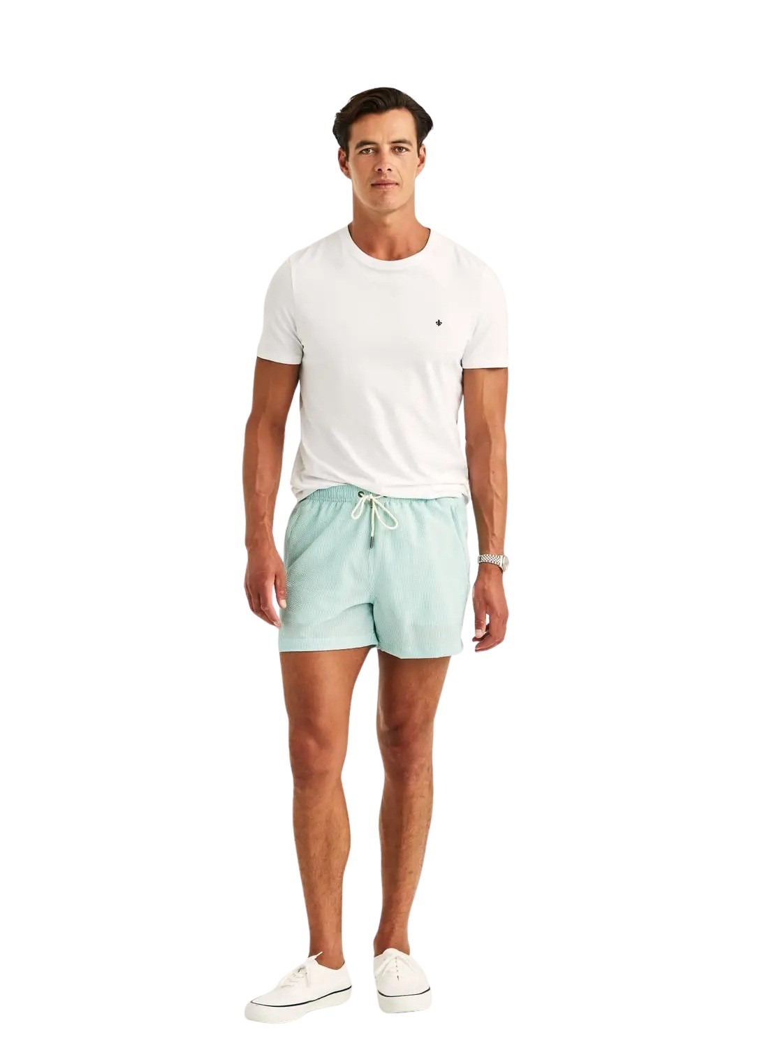 Morris Seersucker Bathing Trunks fra Morris Stockholm. En lett og hurtigtørkende badeshorts med strukturert seersucker-kvalitet. Den har elastisk linning med snøring og praktiske sidelommer med glidelås. Et stilrent og funksjonelt valg til både strand og basseng.