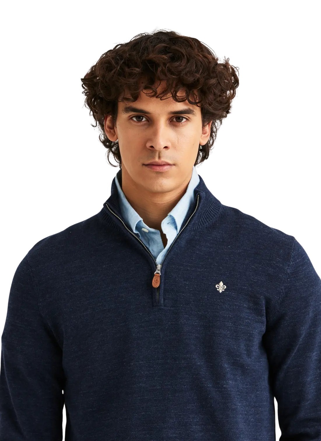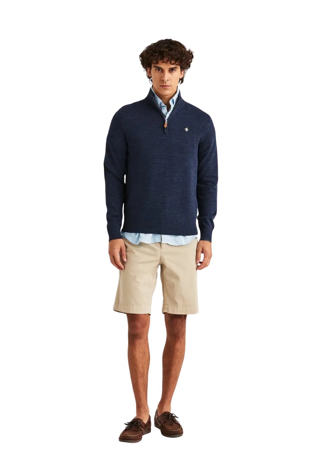 Randall Half Zip fra Morris Stockholm. En lett og behagelig genser i 100% bomull, perfekt for vårsesongen. Den er enkel å style i lag og gir komfort hele dagen, med en smal og velkledd silhuett. Den broderte liljen på brystet tilfører en elegant signatur.