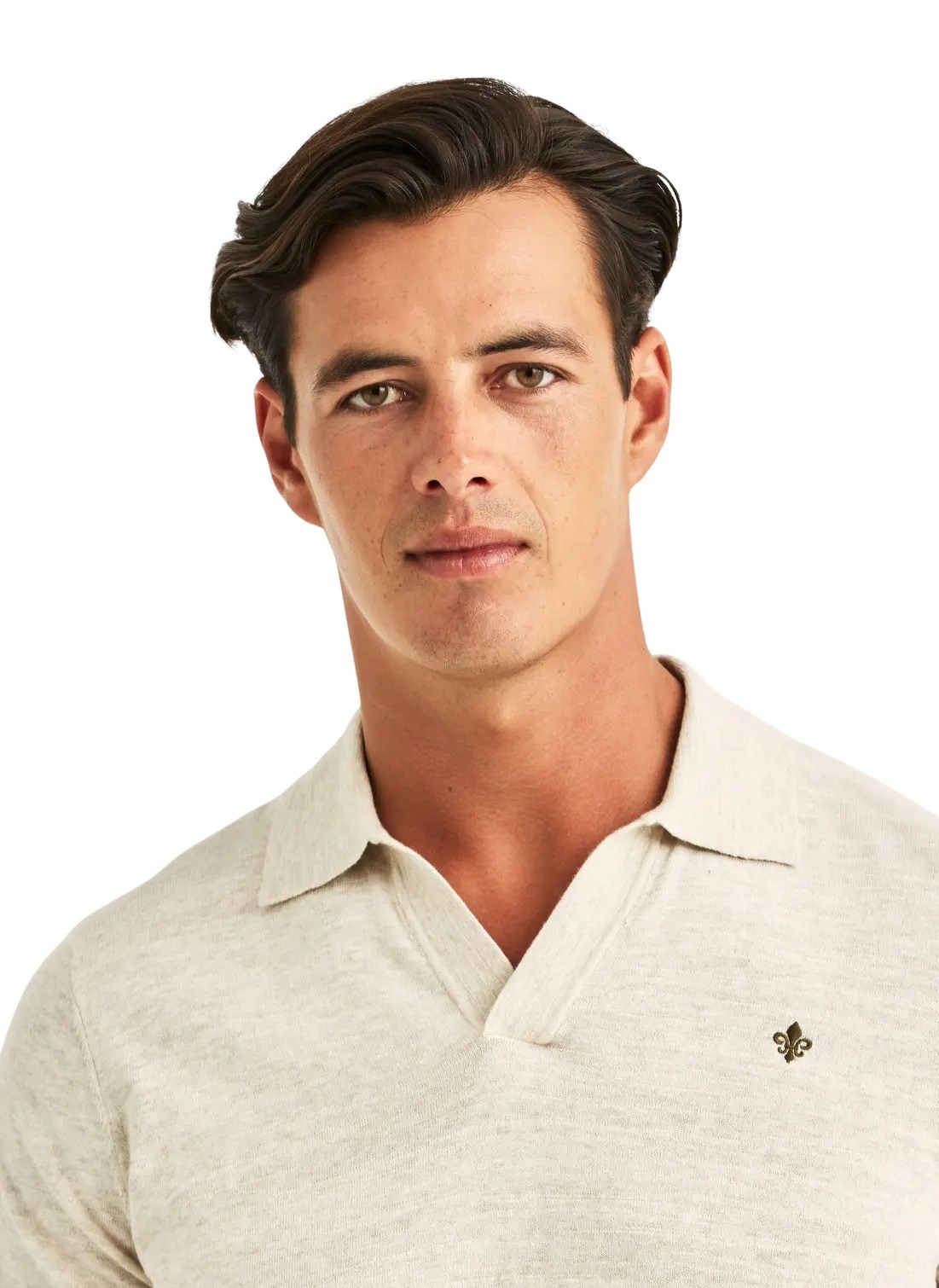 Randall Resort Polo fra Morris Stockholm. En stilren strikket polo i myk bomull. Den har en avslappet passform og åpen krage som gir et elegant, men uanstrengt uttrykk. Den broderte Morris-liljen på brystet tilfører en klassisk signatur. Perfekt til varme dager med shorts eller lette bukser.
