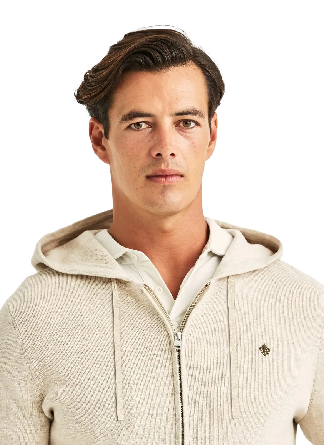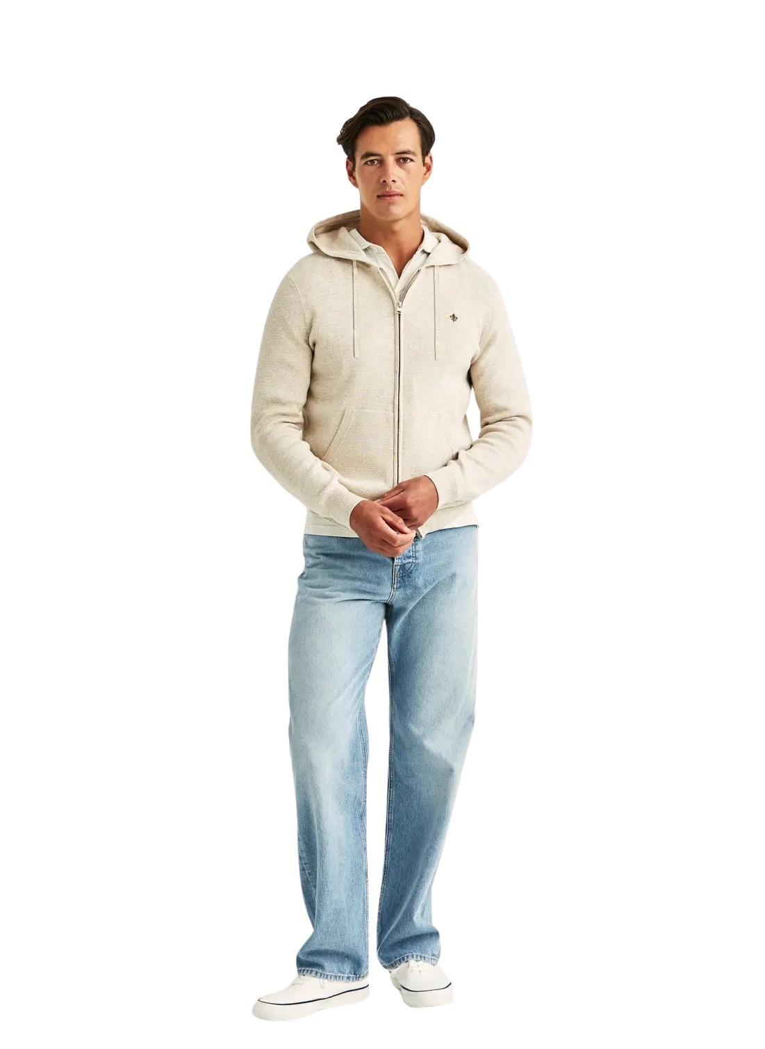 Randall Hood fra Morris Stockholm. En komfortabel hettejakke i 100% bomull med et avslappet, men gjennomført uttrykk. Den har en myk strikket kvalitet og en klassisk passform som gjør den perfekt til fritid og reise. Den broderte liljen på brystet gir et tydelig Morris-preg.