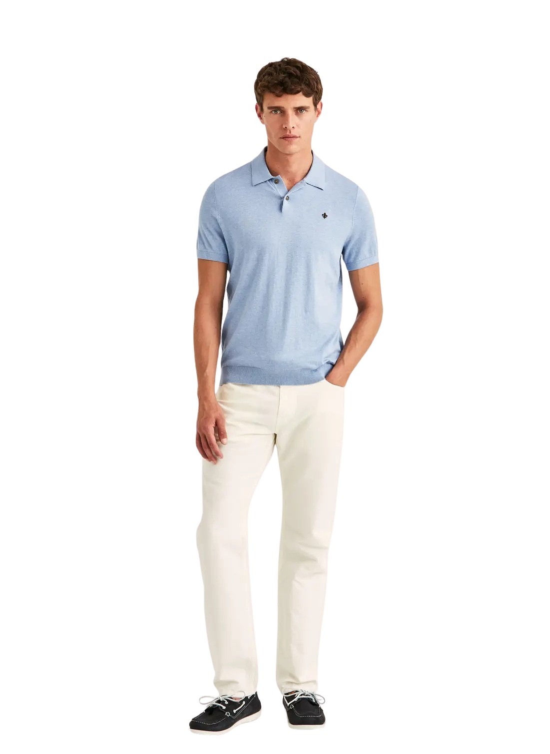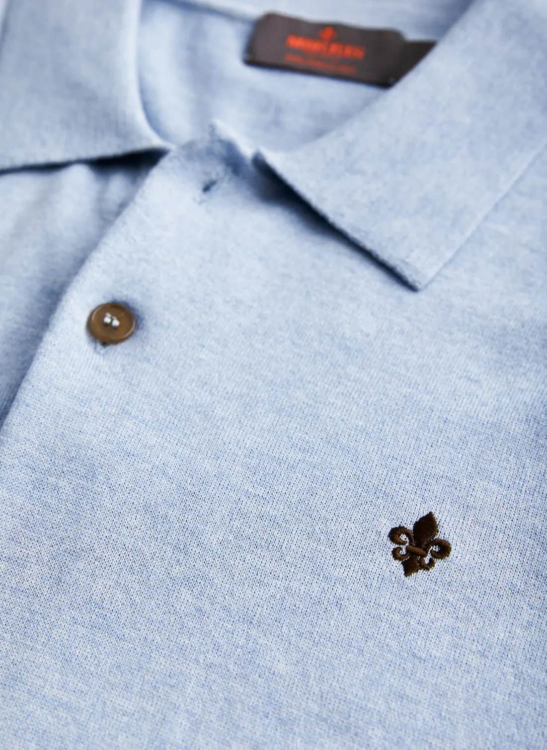 Riley SS Polo fra Morris Stockholm. En klassisk polo i myk og pustende bomull. Den har en ren og elegant silhuett som passer like godt til hverdags som til mer velkledde anledninger. Den broderte Morris-liljen på brystet gir et diskret og tidløst preg.
