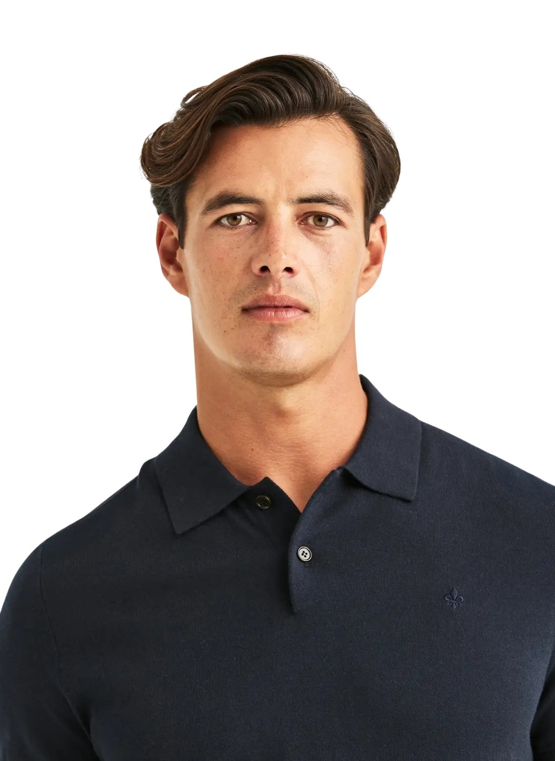Riley SS Polo fra Morris Stockholm. En klassisk polo i myk og pustende bomull. Den har en ren og elegant silhuett som passer like godt til hverdags som til mer velkledde anledninger. Den broderte Morris-liljen på brystet gir et diskret og tidløst preg.