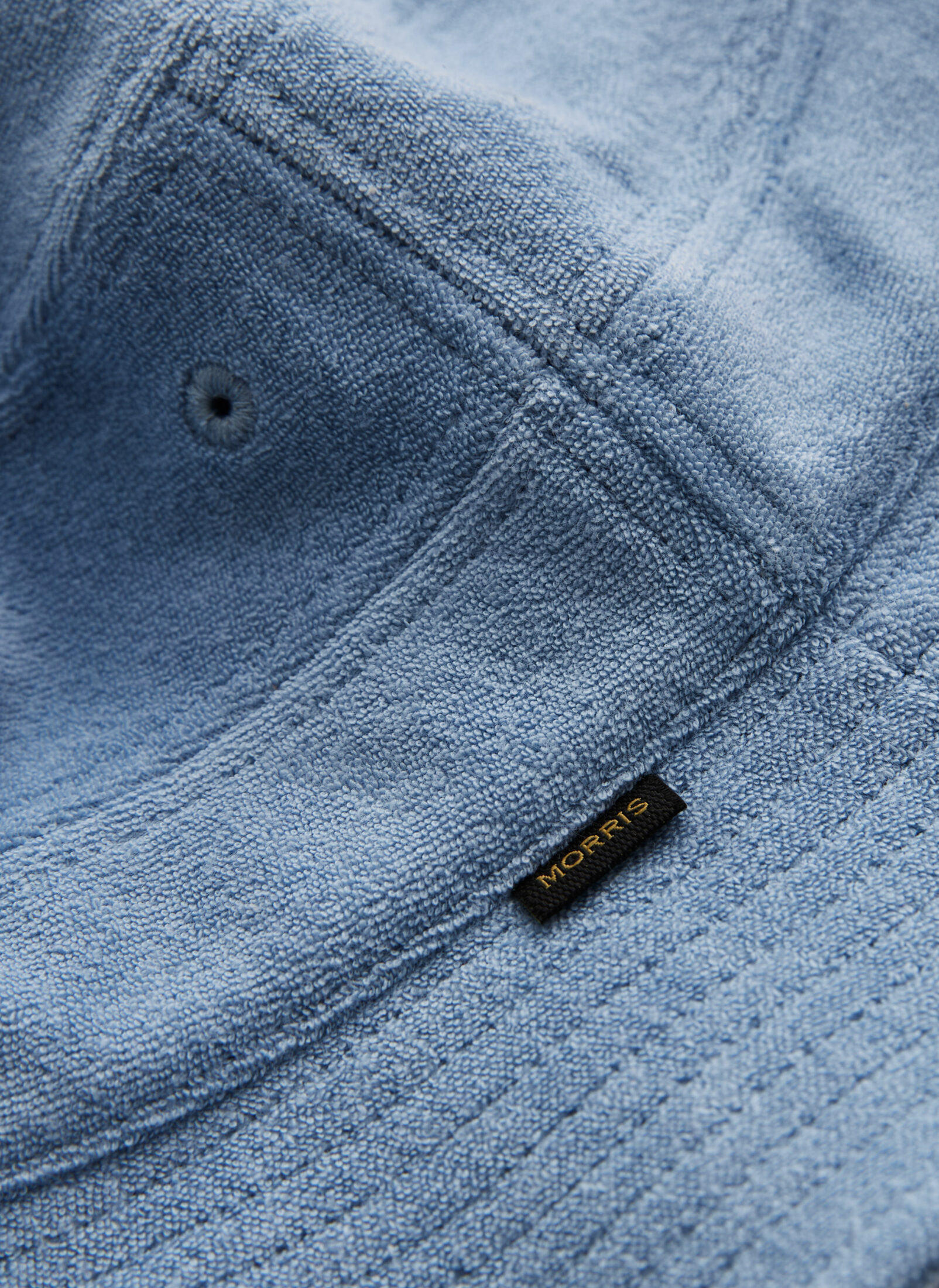 Terry Bucket Hat fra Morris Stockholm. En avslappet og moderne bøttehatt laget i myk frotté. Den lette kvaliteten gjør den behagelig å bruke på varme dager, samtidig som den gir antrekket et trendy preg. En stilfull detalj som passer perfekt til sommerens casual looks.