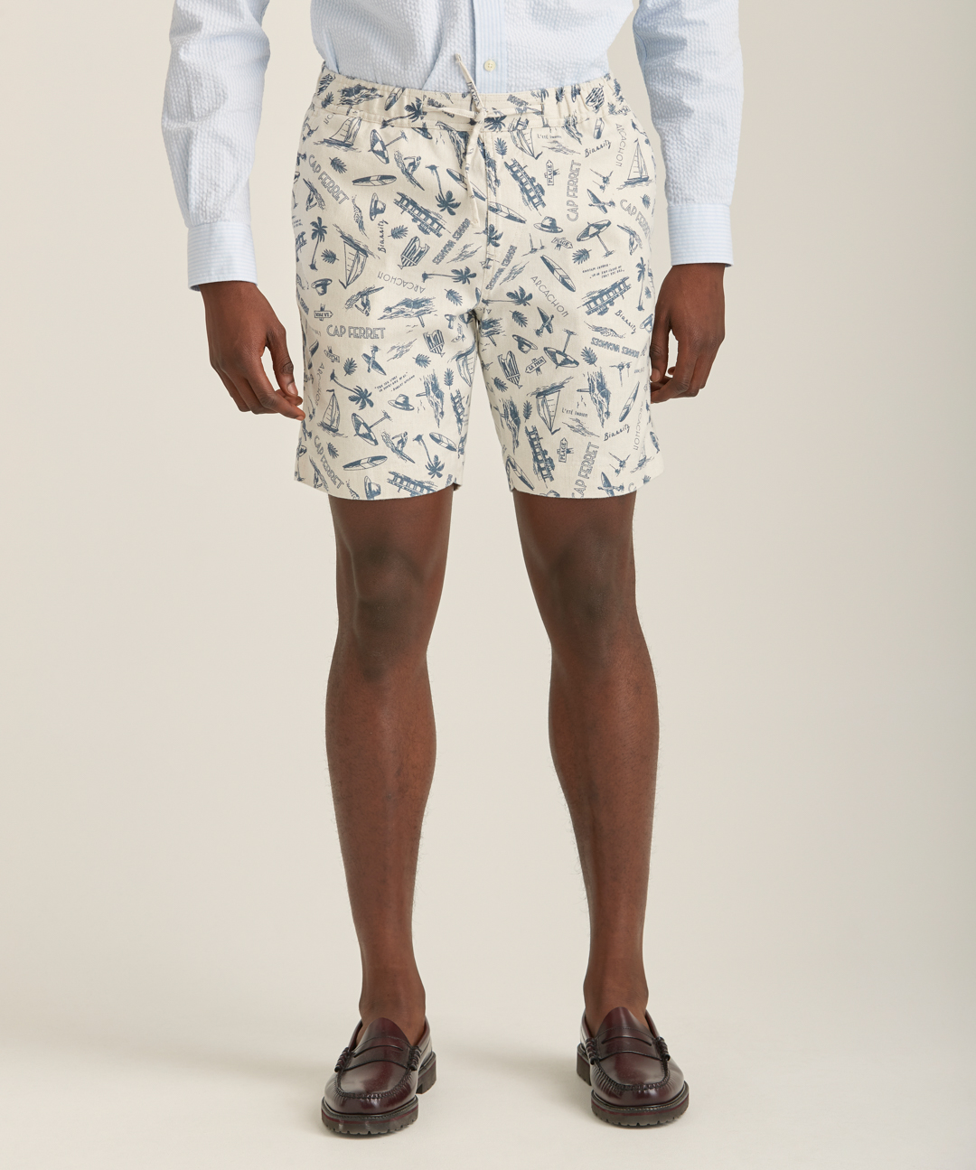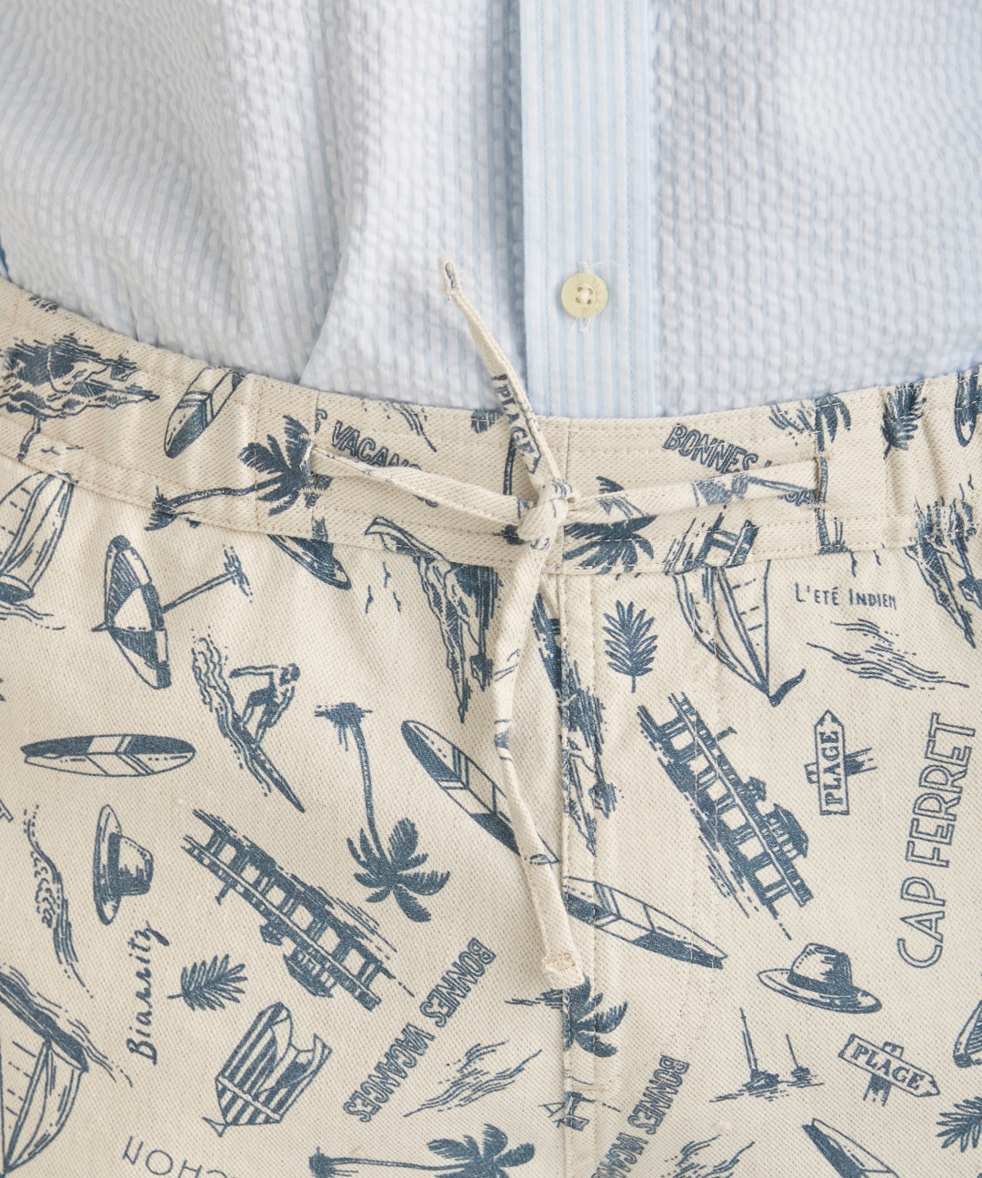 Mønstret linshorts fra Morris Stockholm. Shortsen er pustende og sval for varme sommerdager og kombineres fint med oxfordskjorte, pique og T-skjorte.