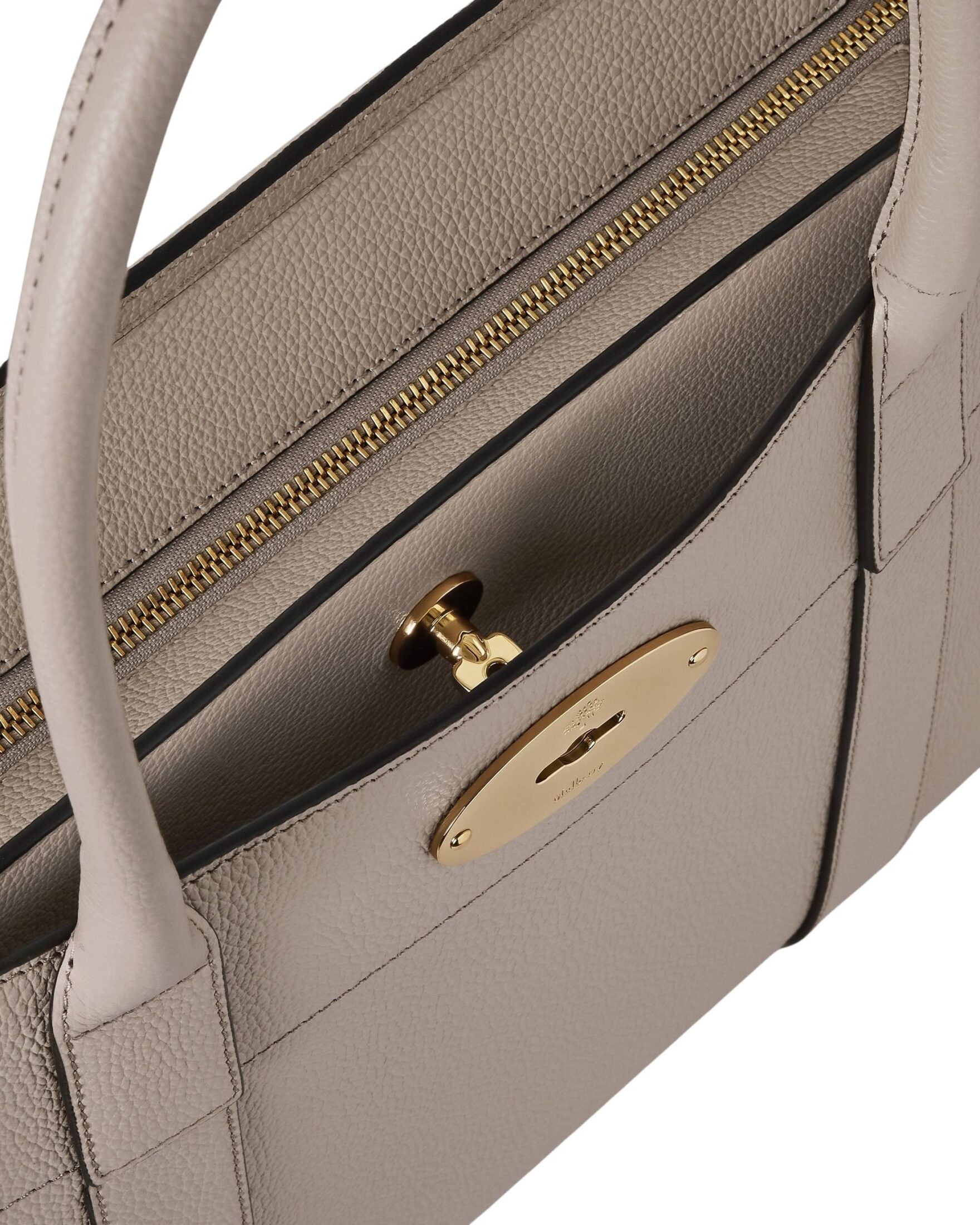 Elegant og funksjonell veske fra Mulberry i preget kuskinn, designet for en travel arbeidsdag. Vesken har god plass til laptop, dokumenter og det du ellers trenger. Lukkes trygt med glidelås og kan bæres i hånden eller over skulderen.