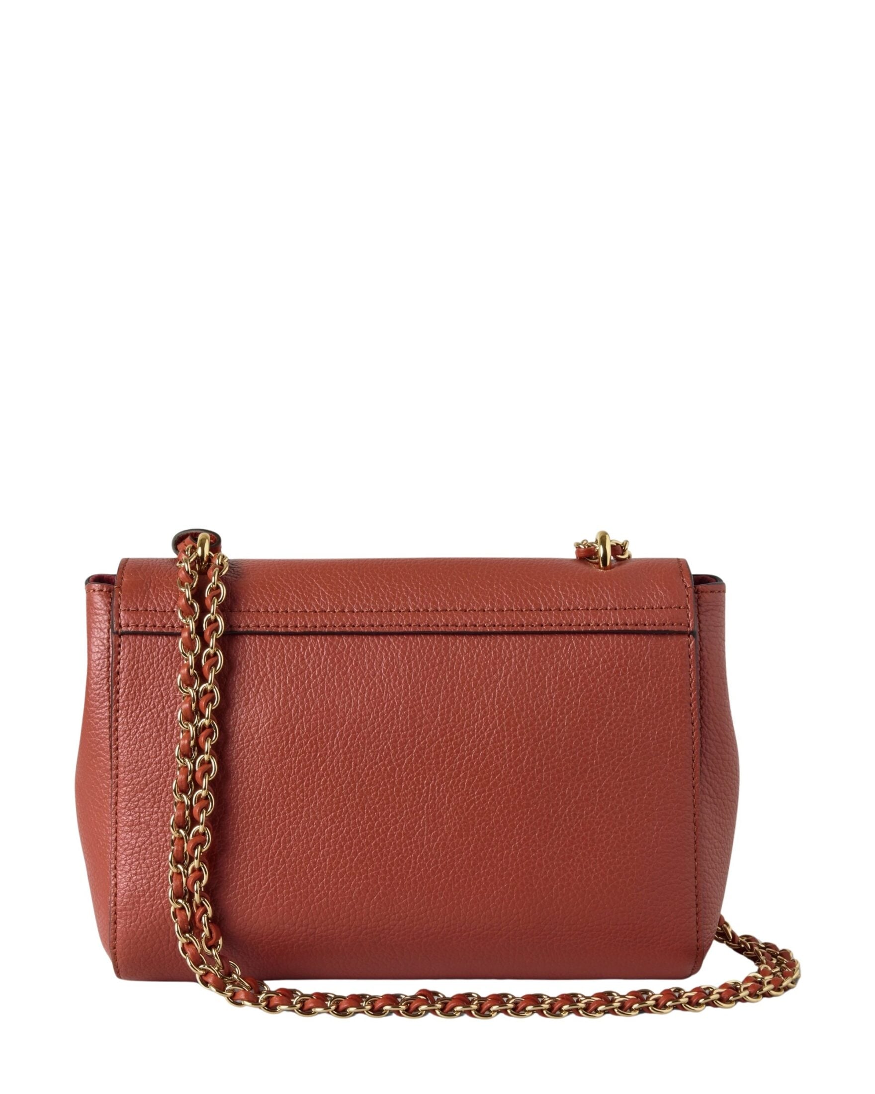 Elegant veske til dame fra Mulberry i mykt, strukturert kuskinn. Lily er en tidløs modell med flettet skulderrem i skinn og kjede, Postman’s Lock og skjult hengelås. Perfekt til både hverdag og kveld.