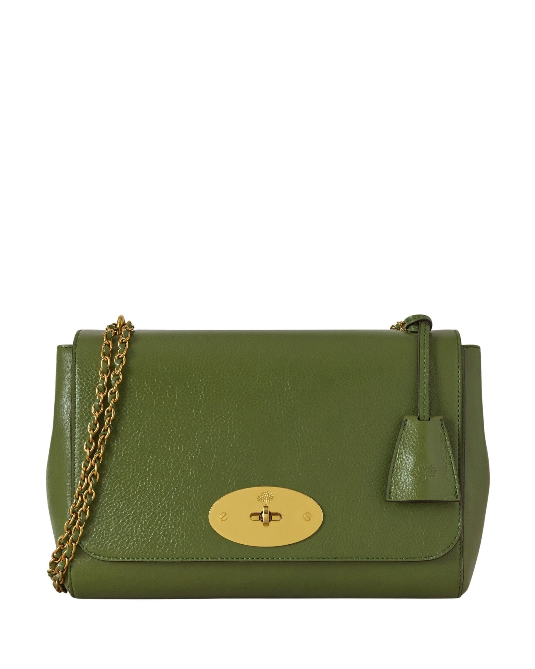 Elegant veske til dame fra Mulberry i blankt, glatt kuskinn med høyglansfinish. Medium Lily er en tidløs klassiker med ikonisk Postman’s Lock og flettet skulderrem i skinn og kjede. En allsidig veske som passer perfekt til både hverdag og kveld.