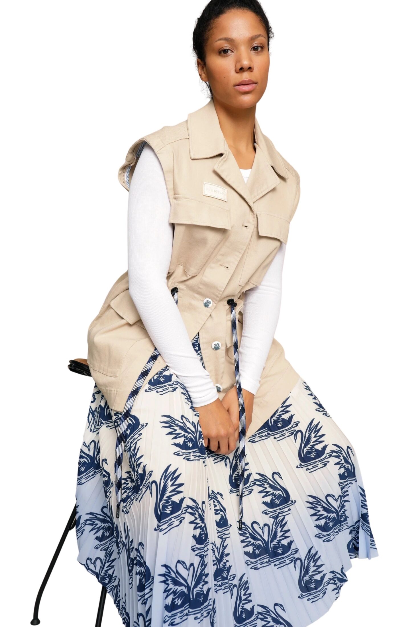 Plisséskjørt med strikk i midjen fra Munthe.