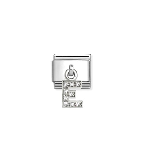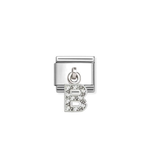 Letter Pendant fra Nomination. Et personlig anheng i rustfritt stål, bundet med sølv og dekorert med glitrende cubic zirkonia-stener.