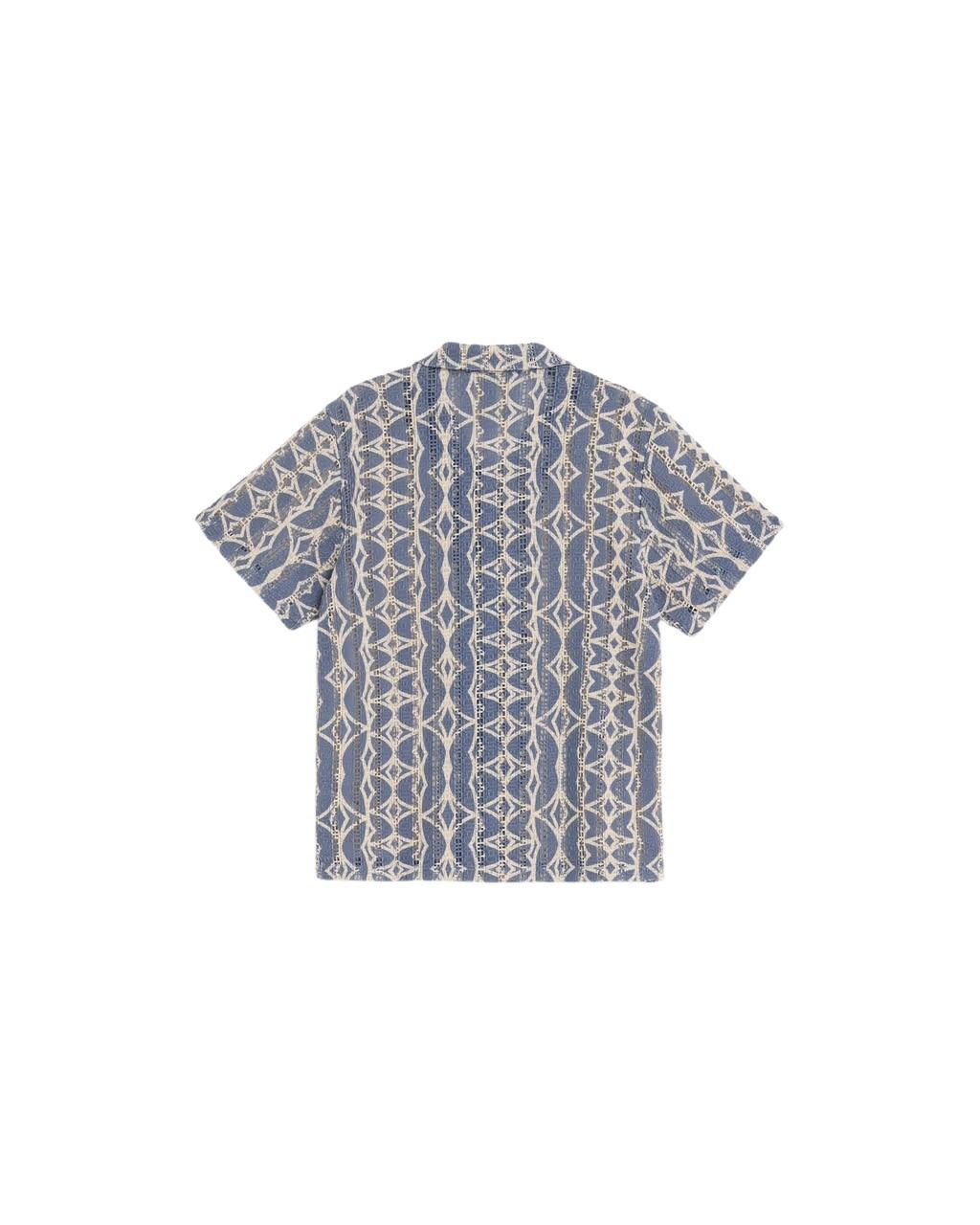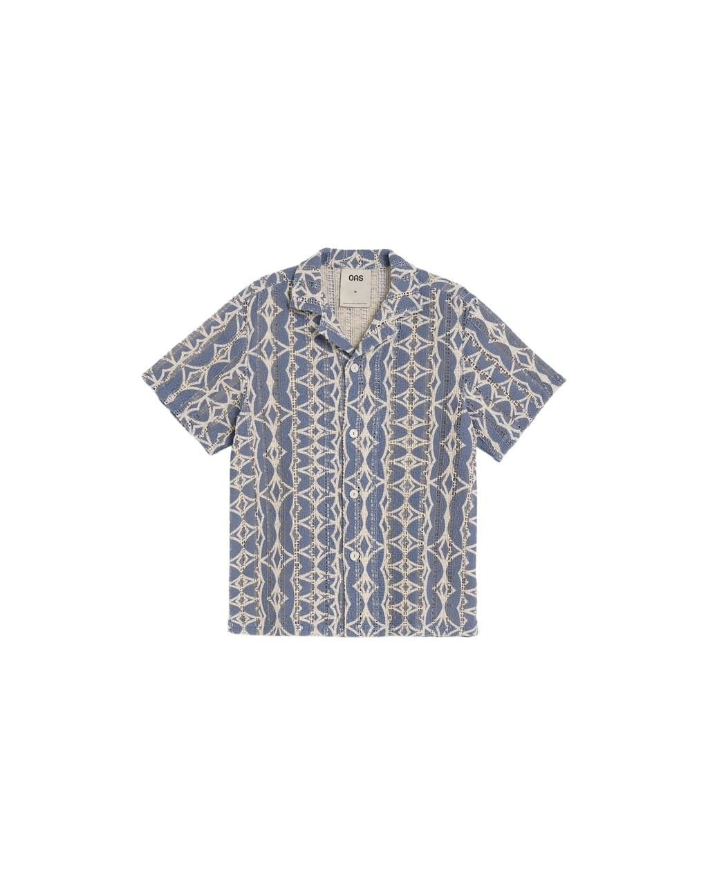 Kortermet skjorte fra OAS. Laget i 100% bomull med et printet, strikket jaquard som gir en lett og teksturert følelse. Den pustende kvaliteten gjør den perfekt på varme dager, med en avslappet passform som sitter behagelig. Resort-kragen gir en laidback sommerstil som passer like godt til linbukser som til shorts.