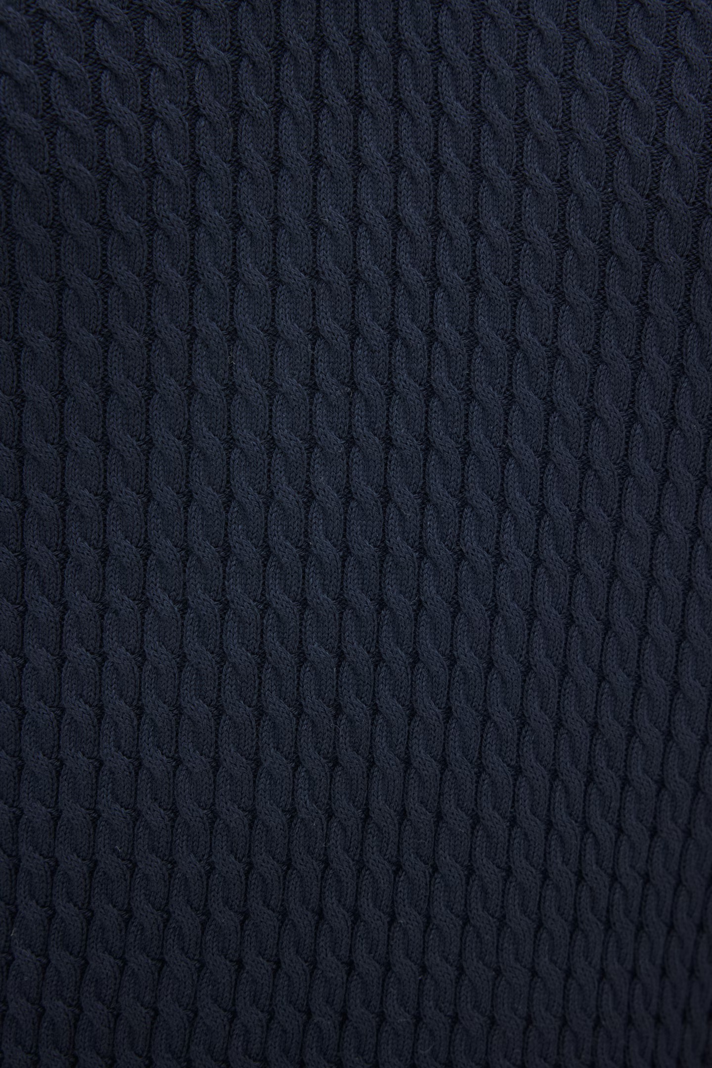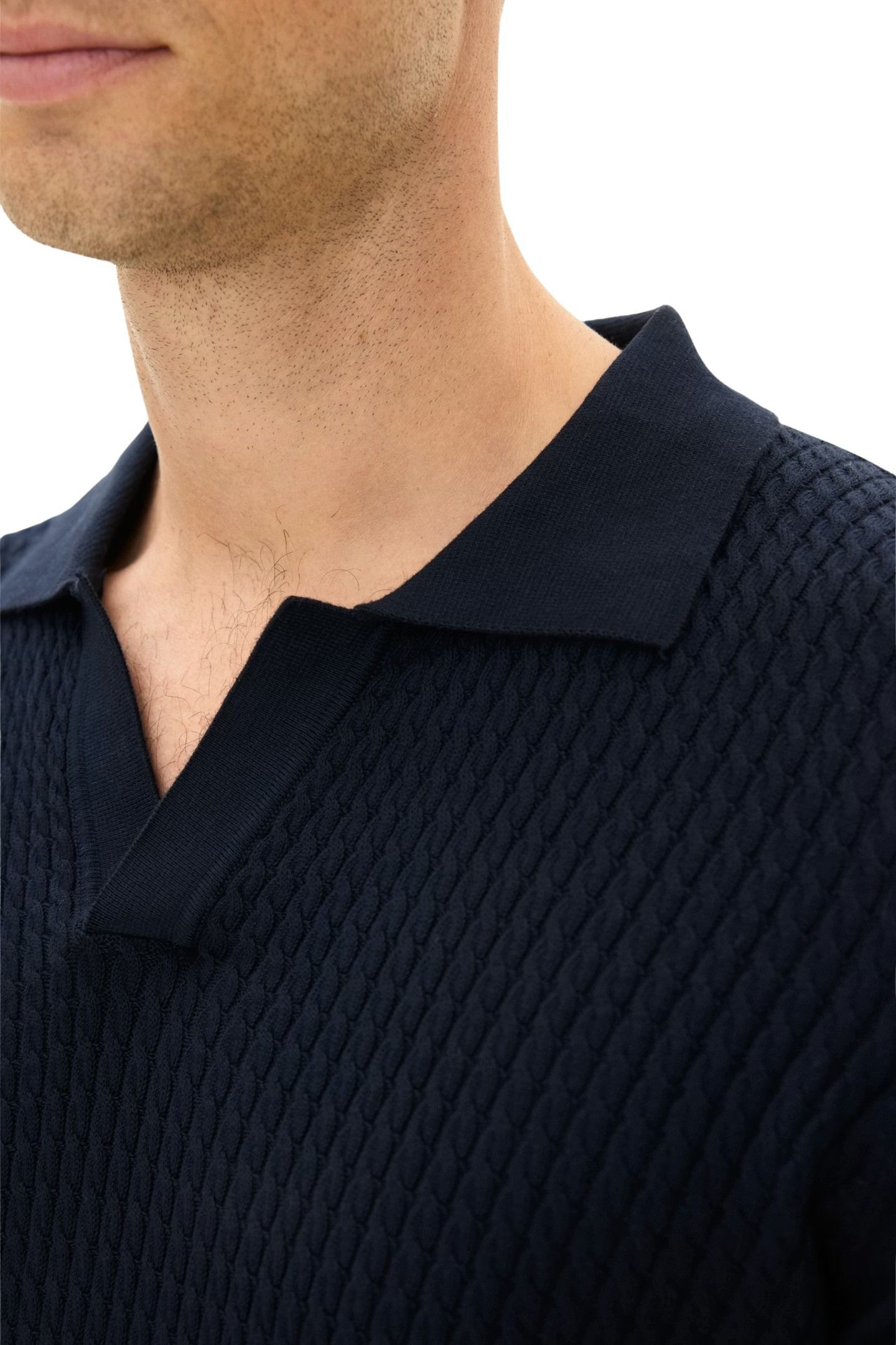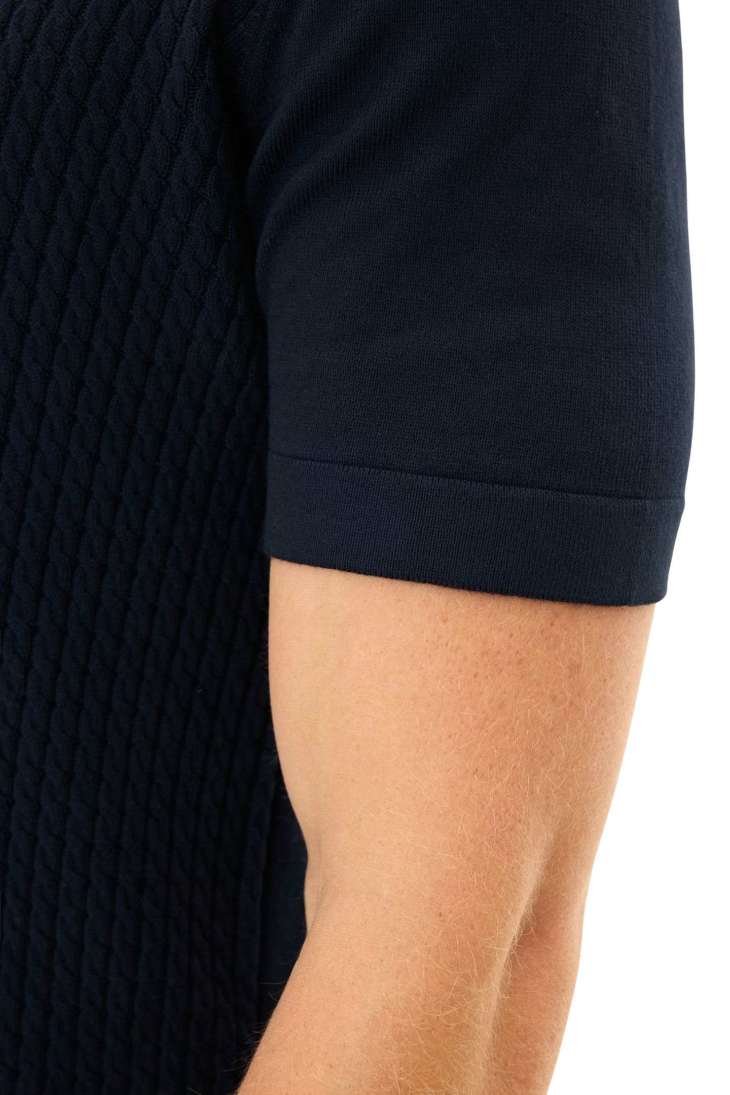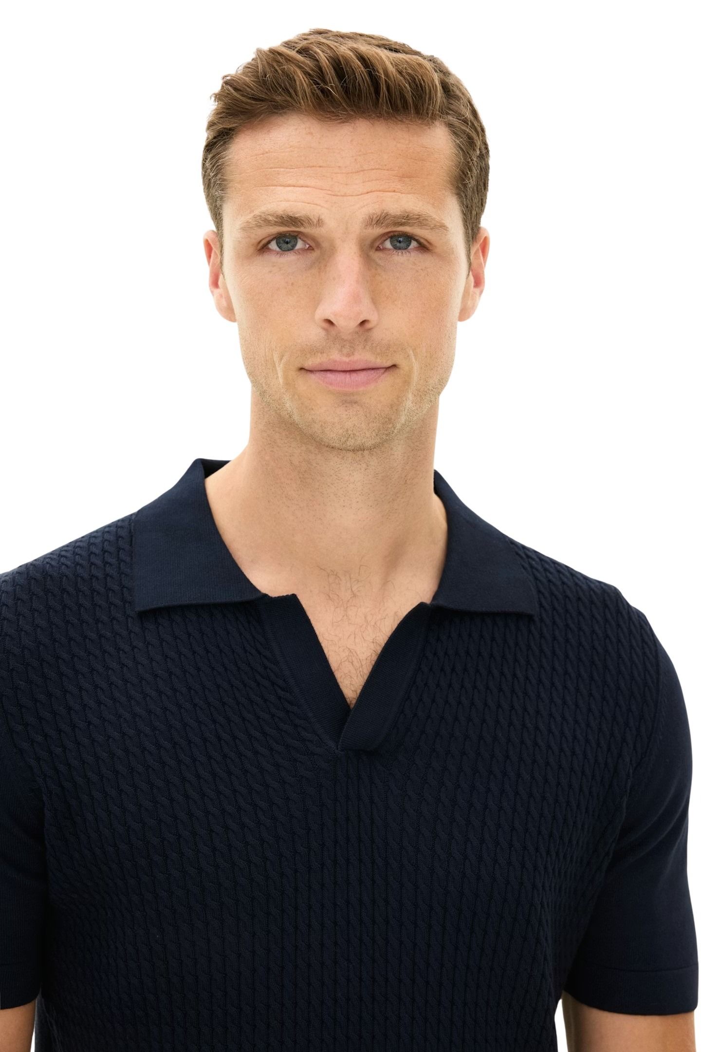 Polo til herre fra Oscar Jacobson. Kortermet polo strikket i plaggfarget bomull med en raffinert kabelstruktur som gir et eksklusivt, men avslappet uttrykk. Den knappeløse åpningen i halsen gjør den moderne og lett å style. Perfekt til chinos for en uanstrengt look, eller under blazer og dress for en mer sofistikert vri.