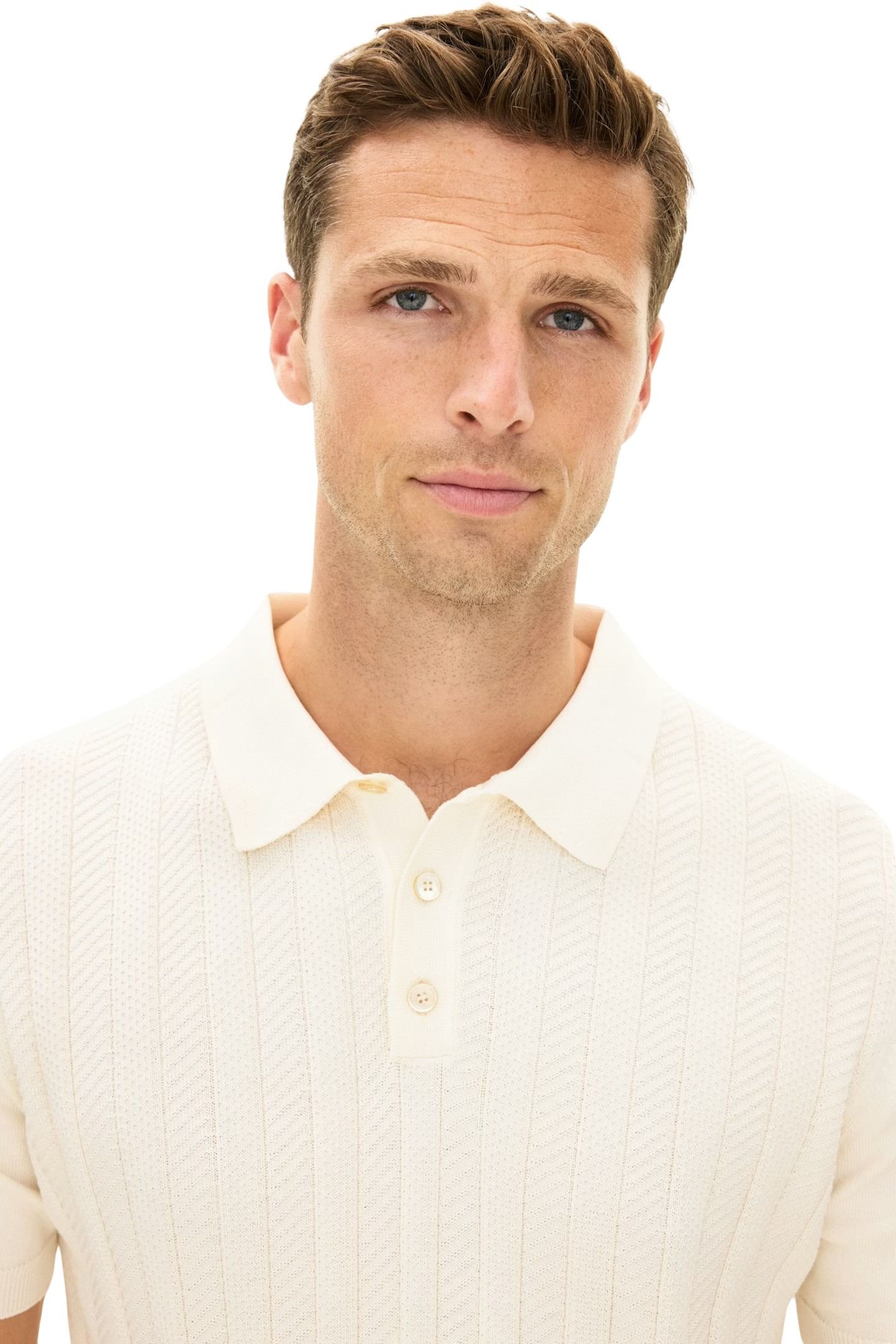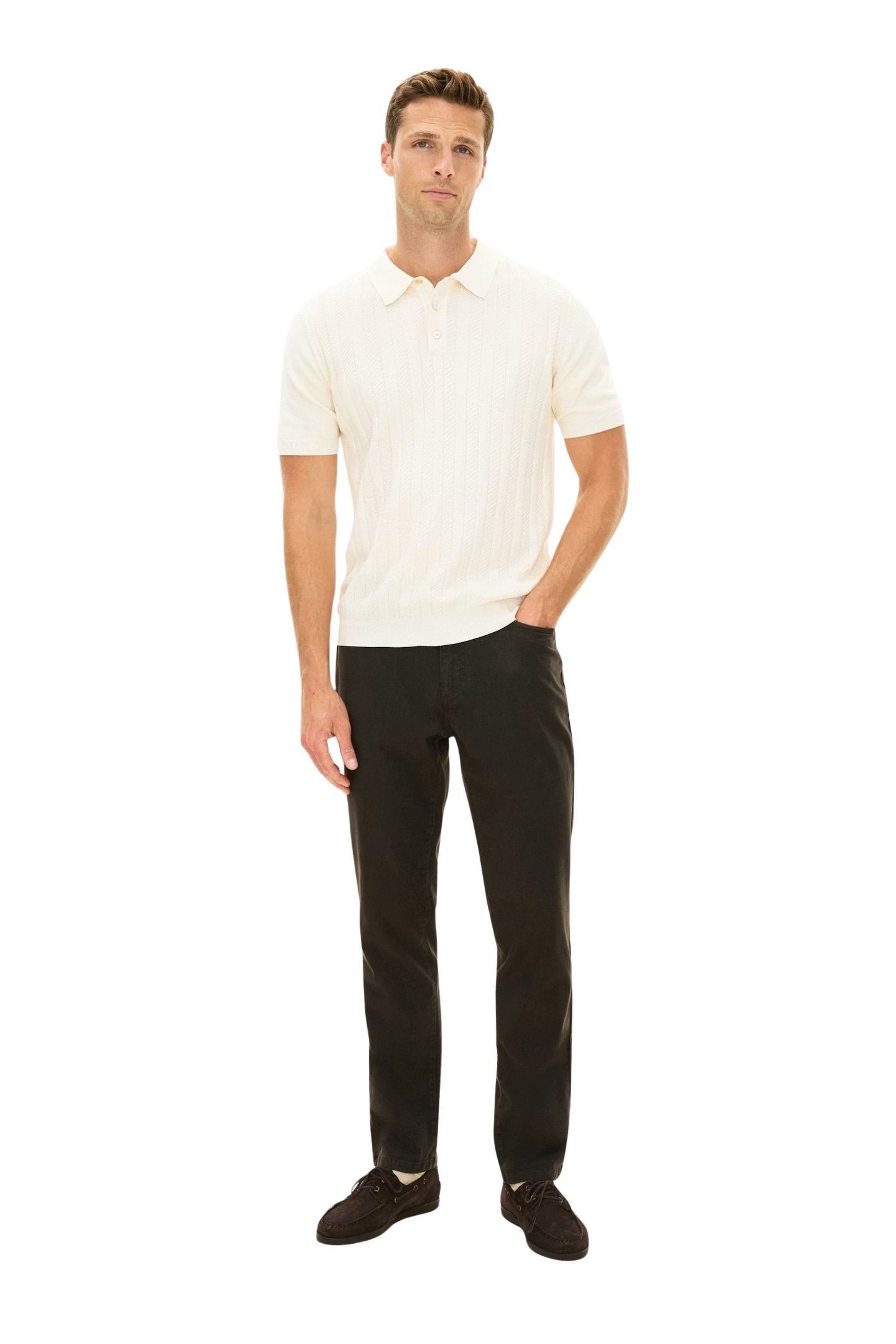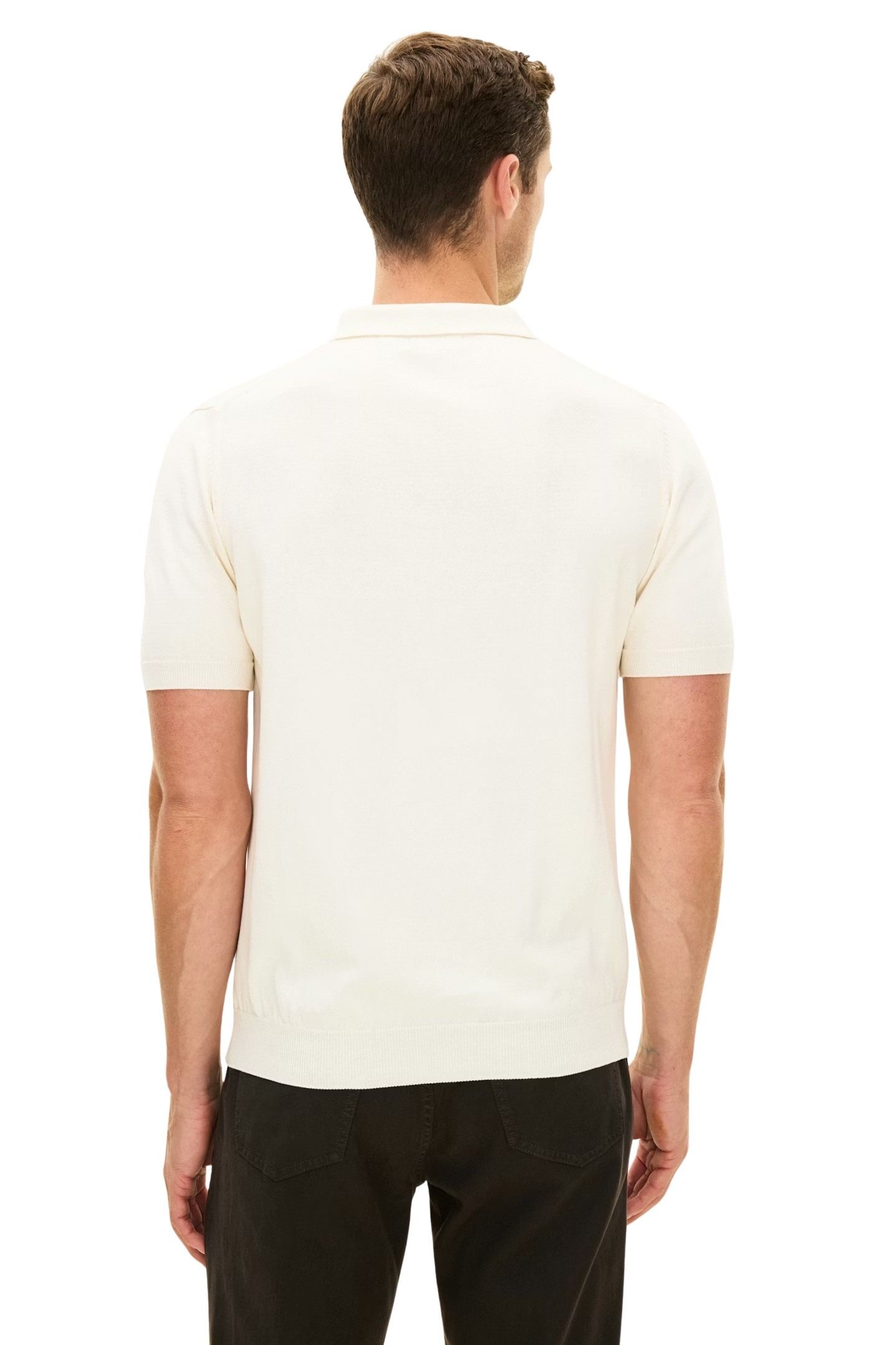 Piqué til herre fra Oscar Jacobson. Kortermet pique strikket i bomull med en elegant struktur i front og en lett, behagelig kvalitet. Den fasongstrikkede kragen og perlemorknappene gir et raffinert preg som løfter helheten. Et allsidig plagg som fungerer perfekt alene, og minst like bra under blazer for en gjennomført stil.