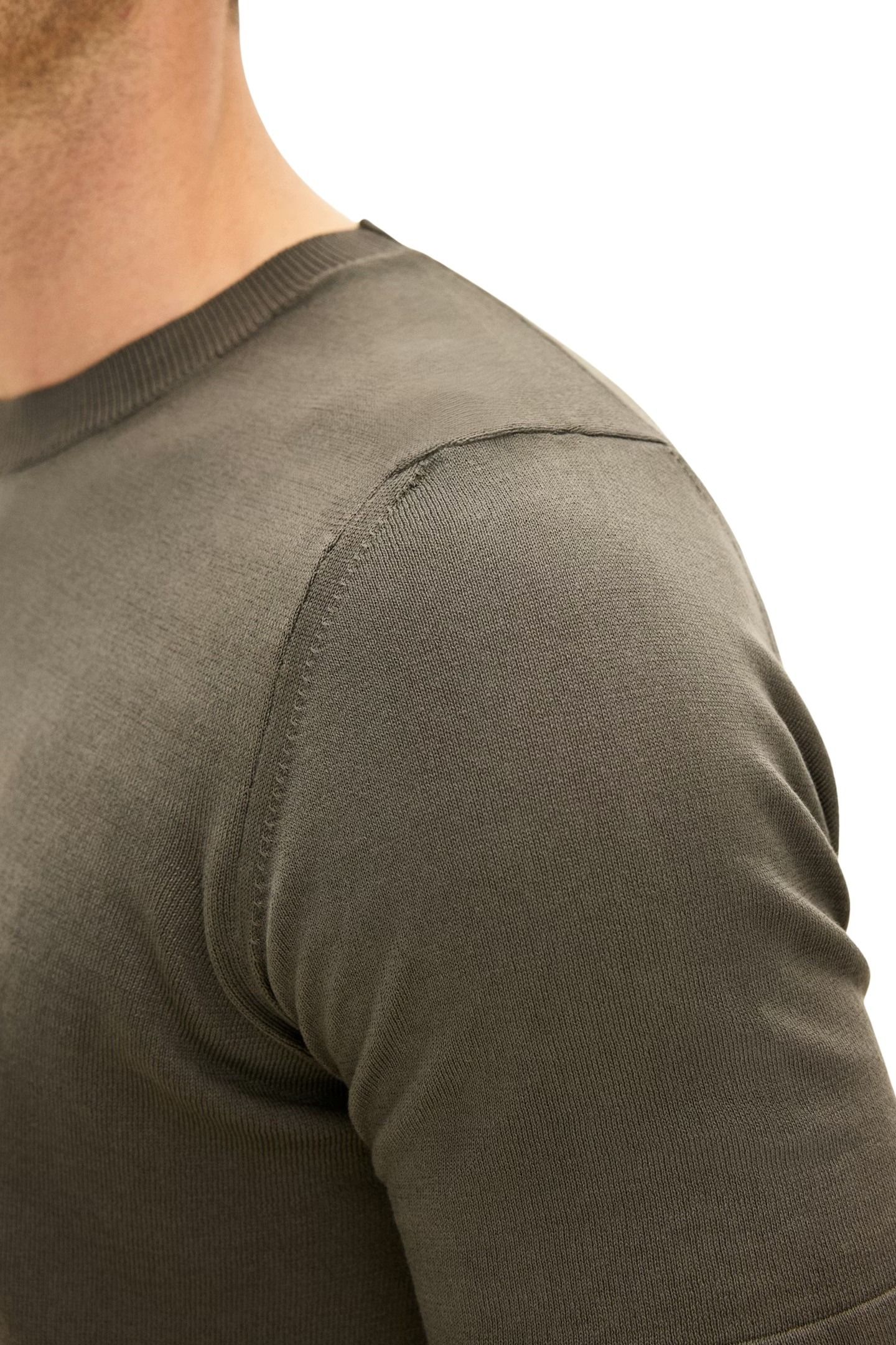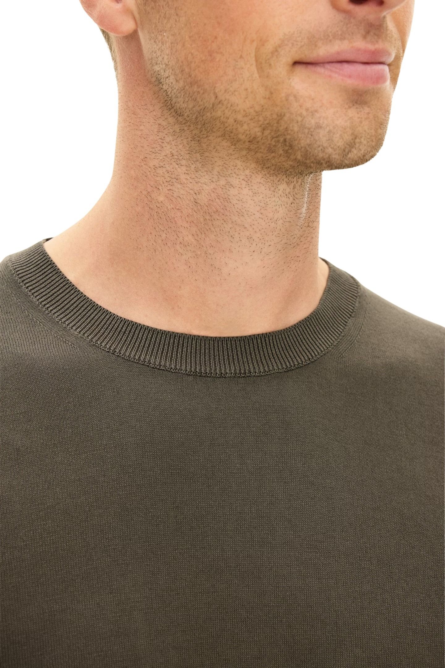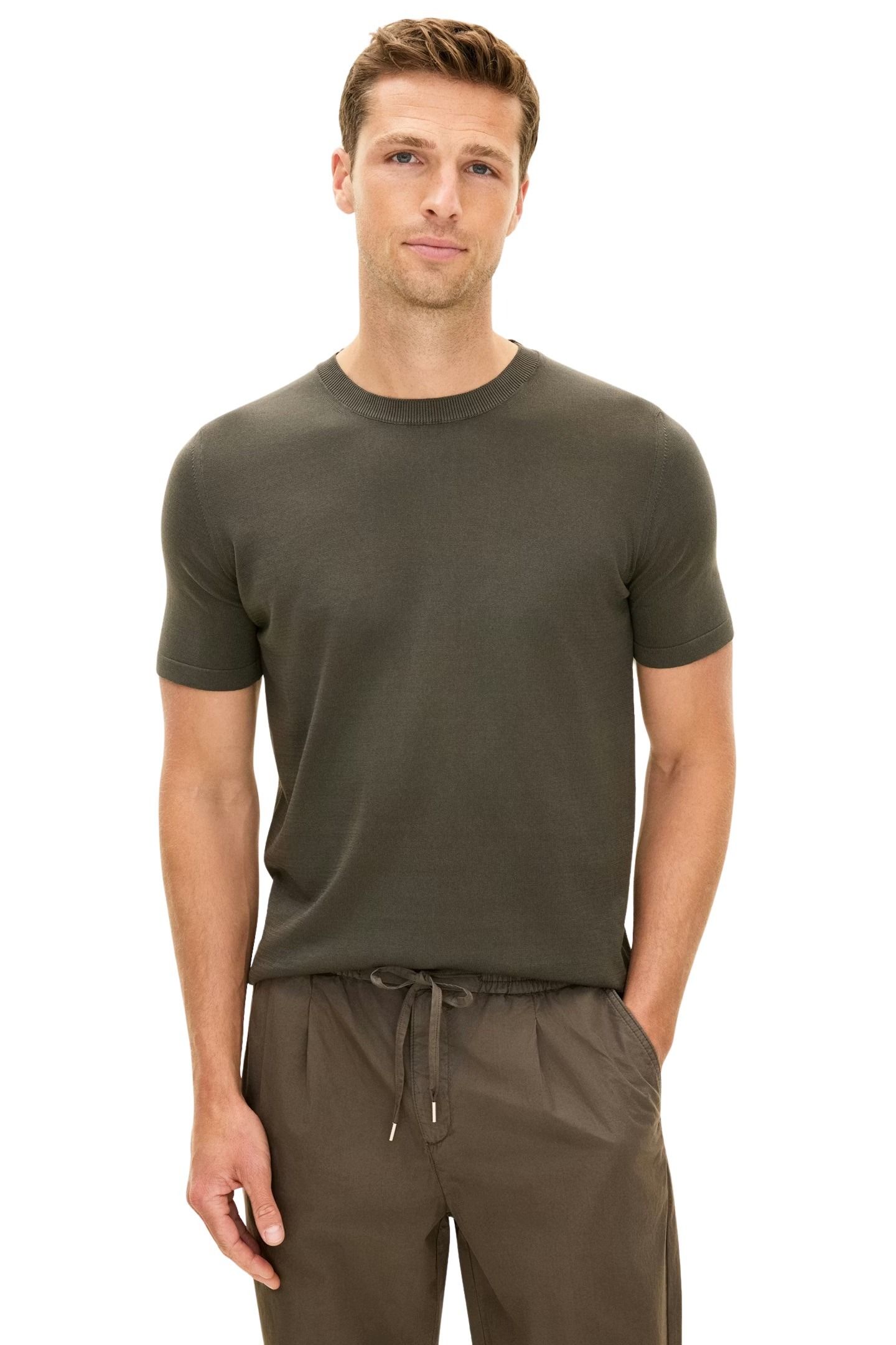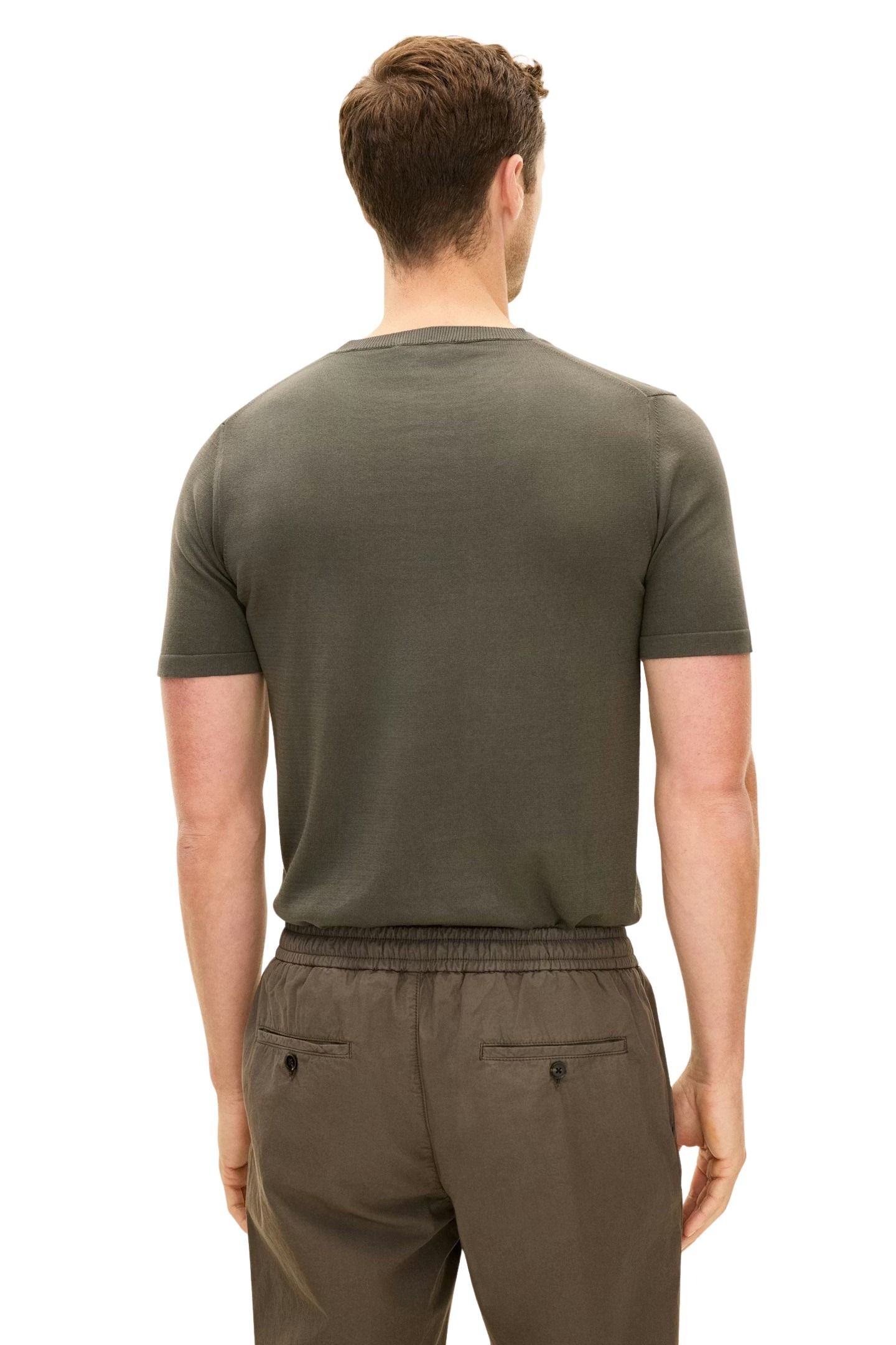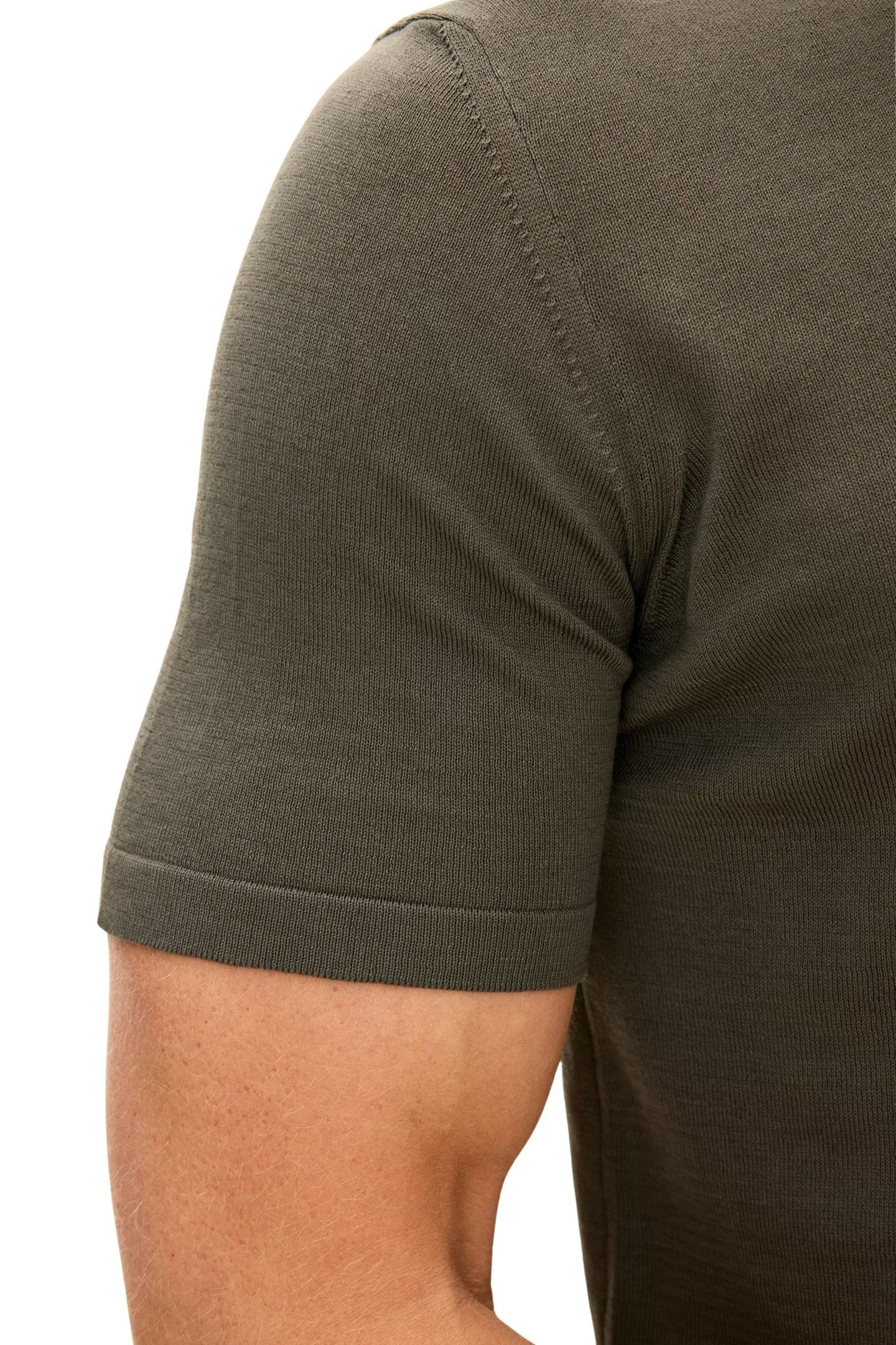 Strikket t-skjorte til herre fra Oscar Jacobson. En slim fit-modell i 100% bomull med et rent og stilrent uttrykk. Den fine strikkekvaliteten gir en myk og komfortabel følelse, samtidig som passformen sitter pent på kroppen. Et allsidig basisplagg som fungerer like godt alene som under en skjorte eller blazer.