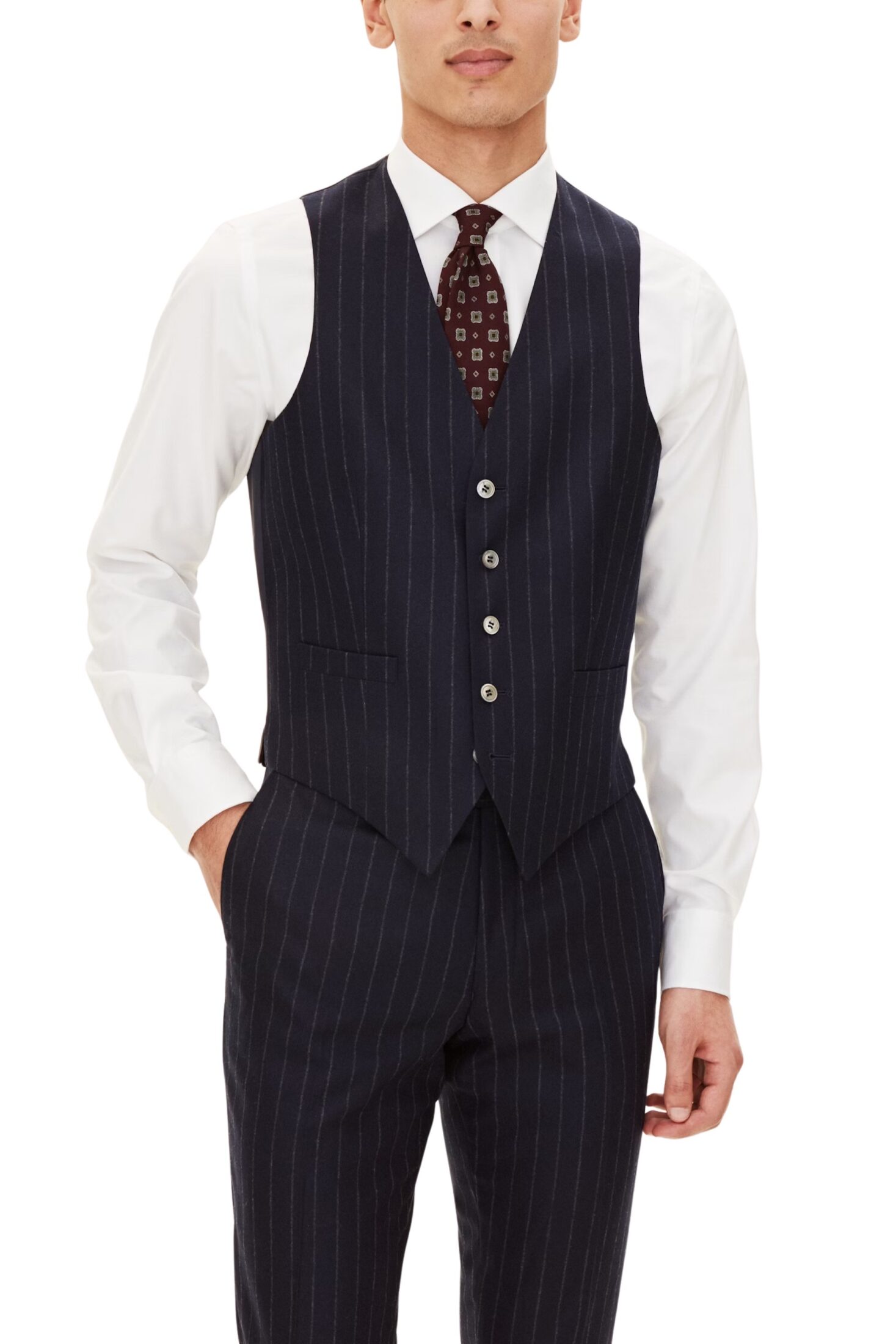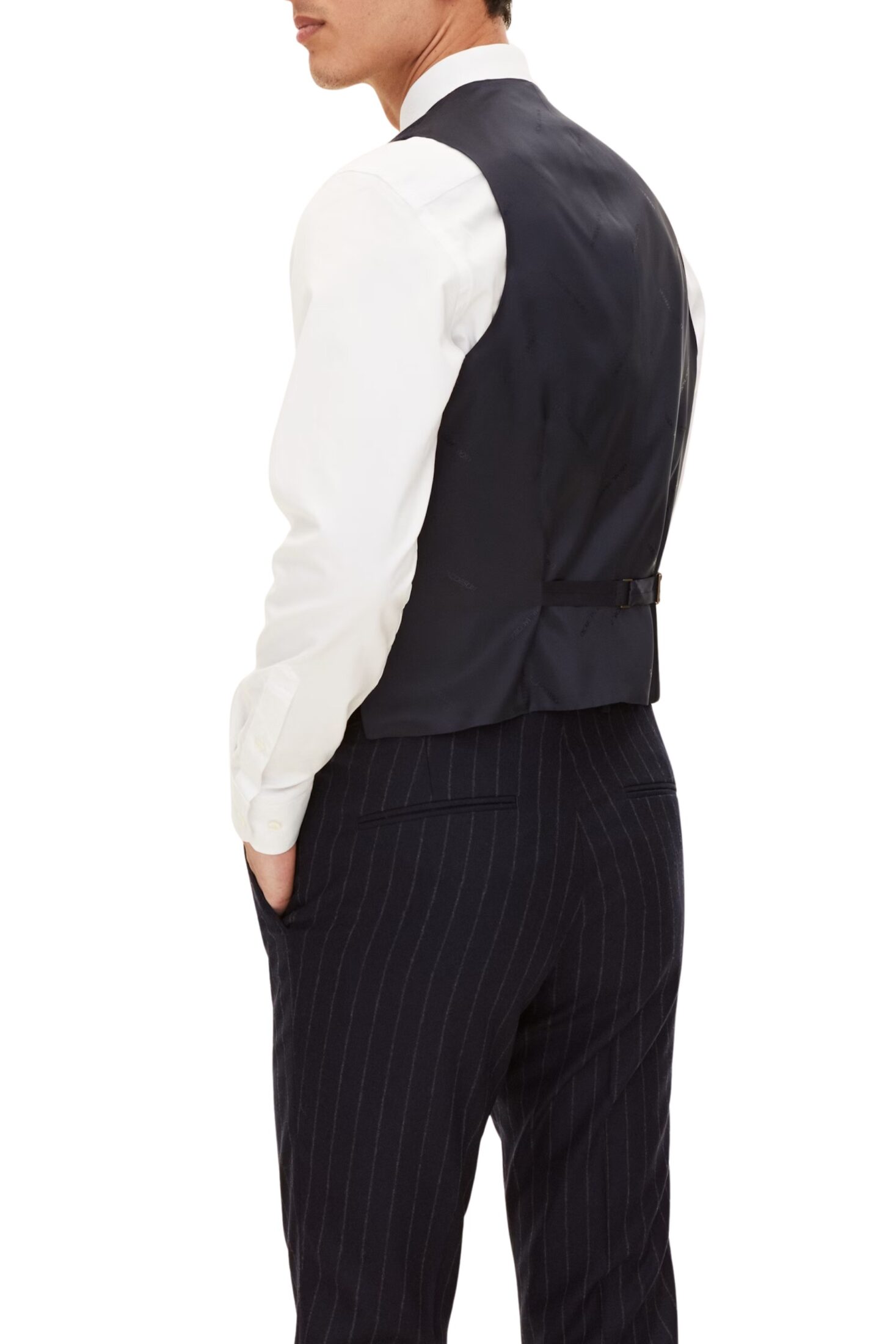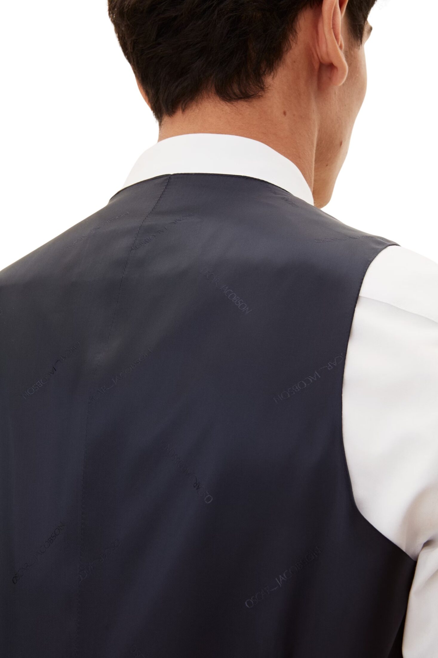 Elegant vest til herre fra Oscar Jacobson. Klassisk vest med passpolerte lommer og justerbar rygg. Style den med matchende dress for en fullført look.