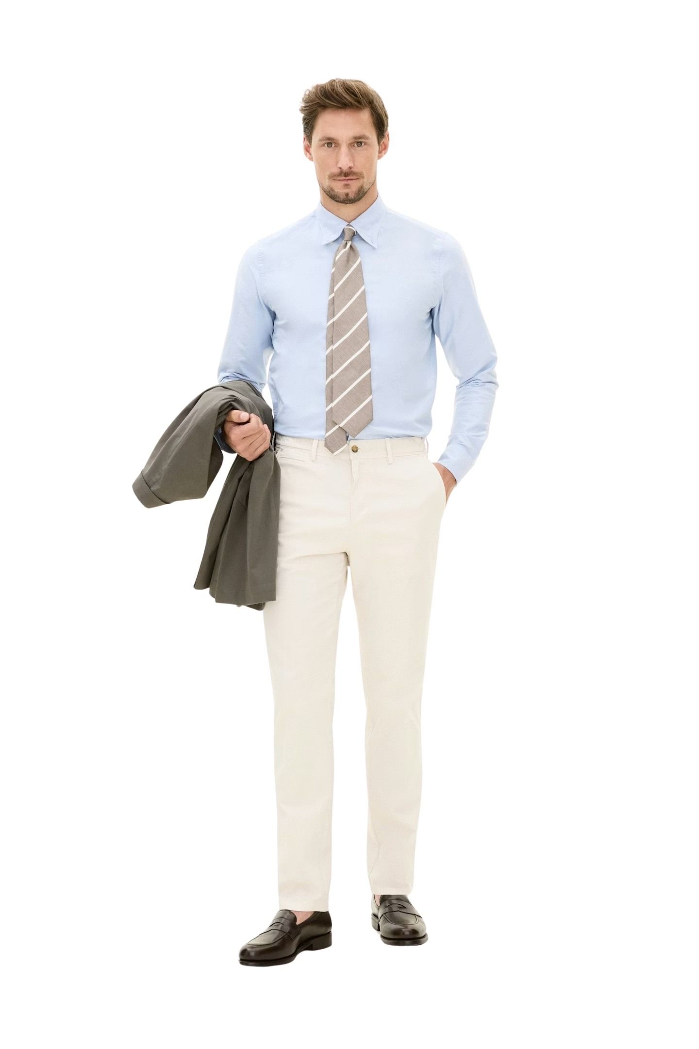 Bukse til herre fra Oscar Jacobson. Laget i myk bomullsstretch med raffinert twill-struktur. Slim fit og normal midje gir en moderne og strømlinjeformet silhuett. En allsidig klassiker til både jobb og fritid.