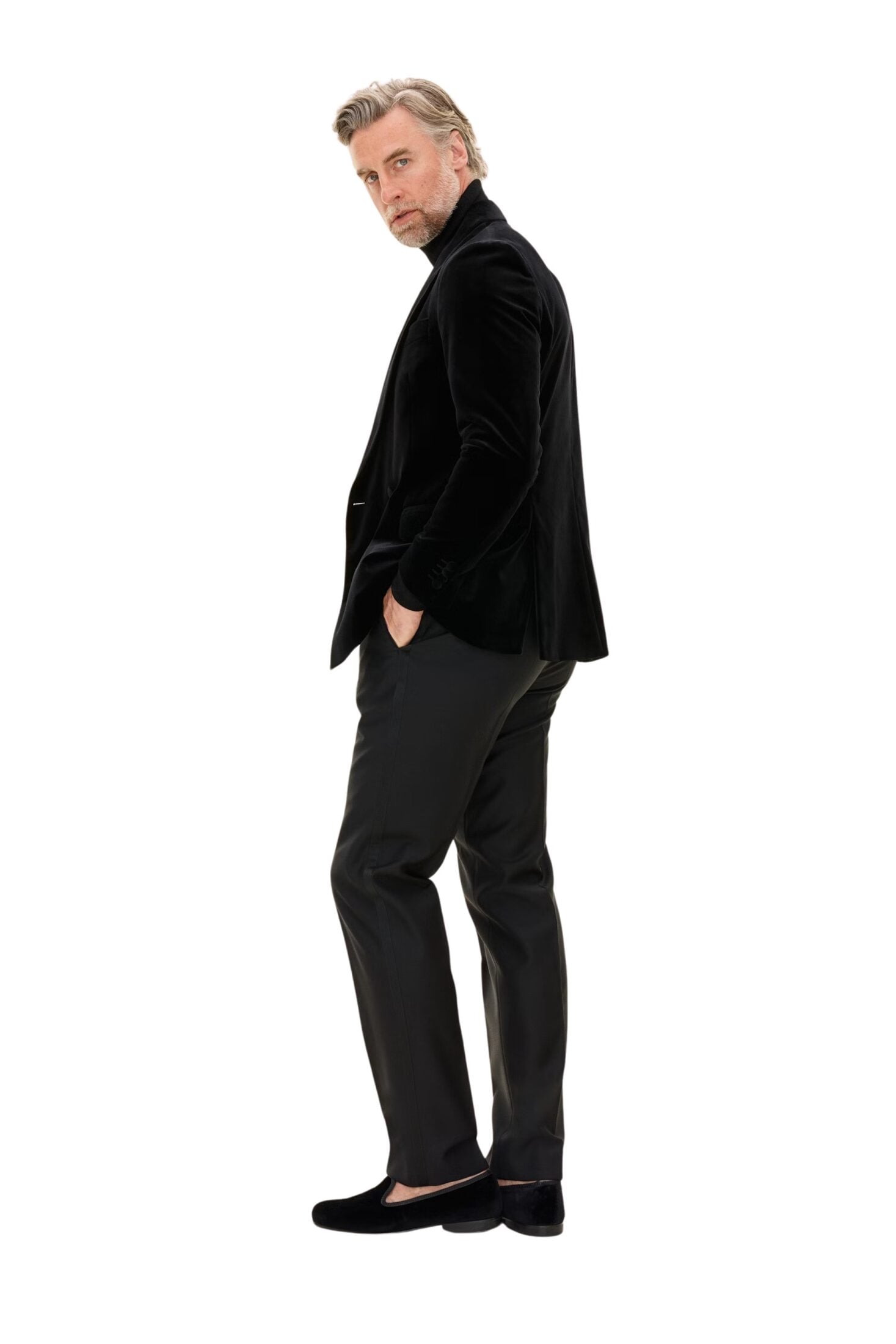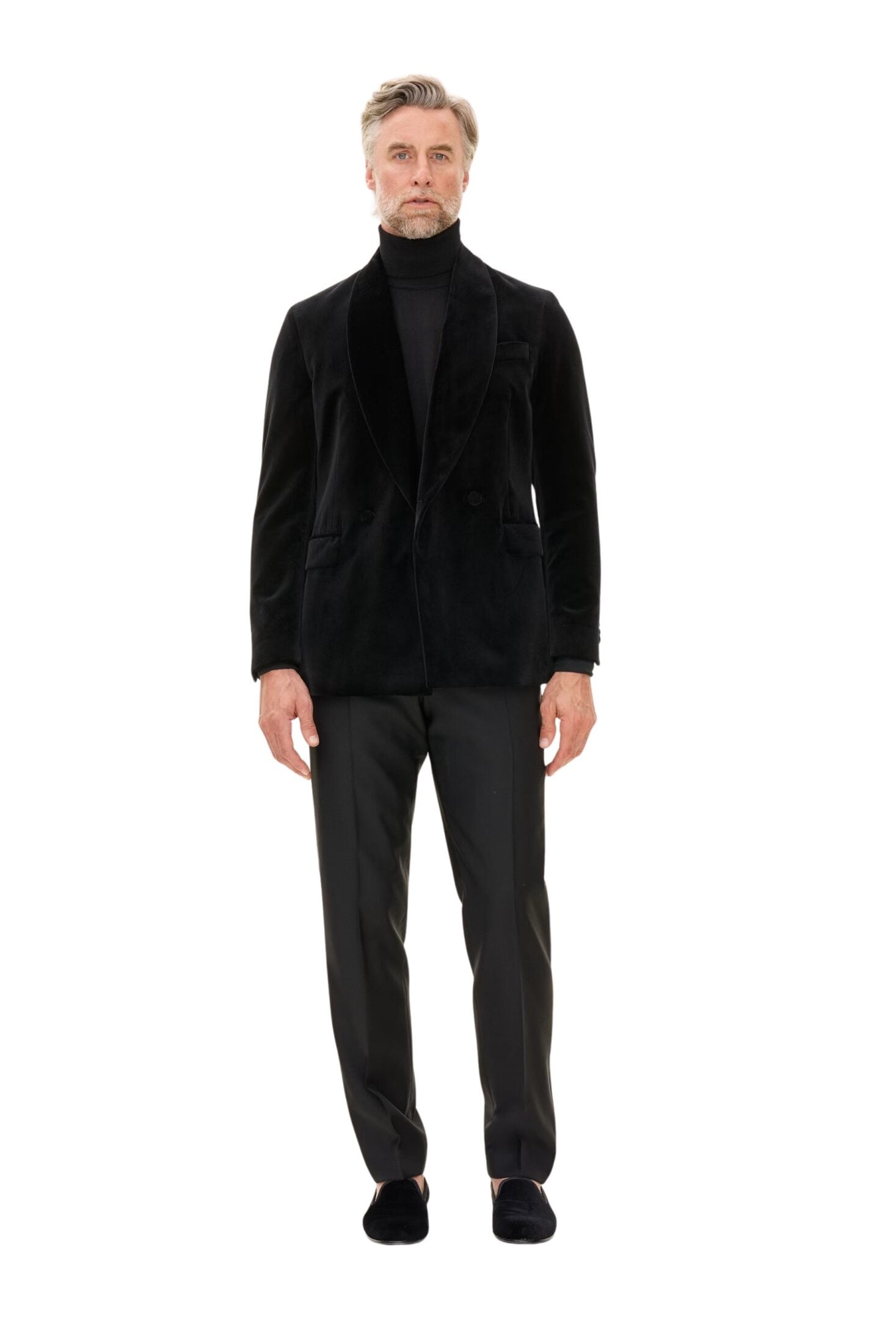 Fattore Blazer fra Oscar Jacobson. En eksklusiv dobbeltspent smokingblazer i luksuriøs fløyel. Den dype, svarte kvaliteten gir et sofistikert uttrykk, mens de avrundede sjalslagene tilfører klassisk eleganse. Perfekt for festlige anledninger, julebord og gallakvelder. Dette er blazeren som løfter ethvert antrekk til et nytt nivå av stil og raffinement.