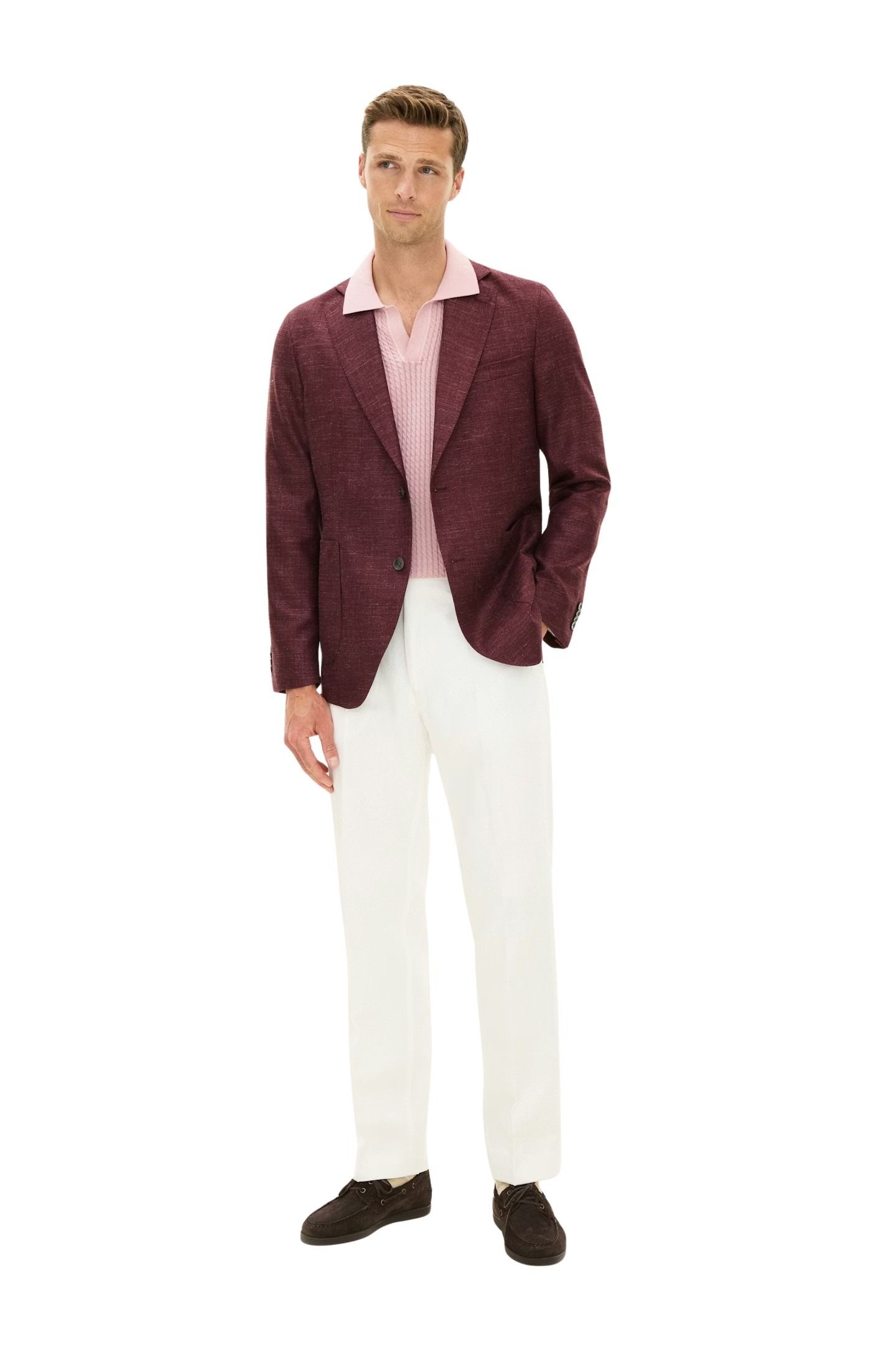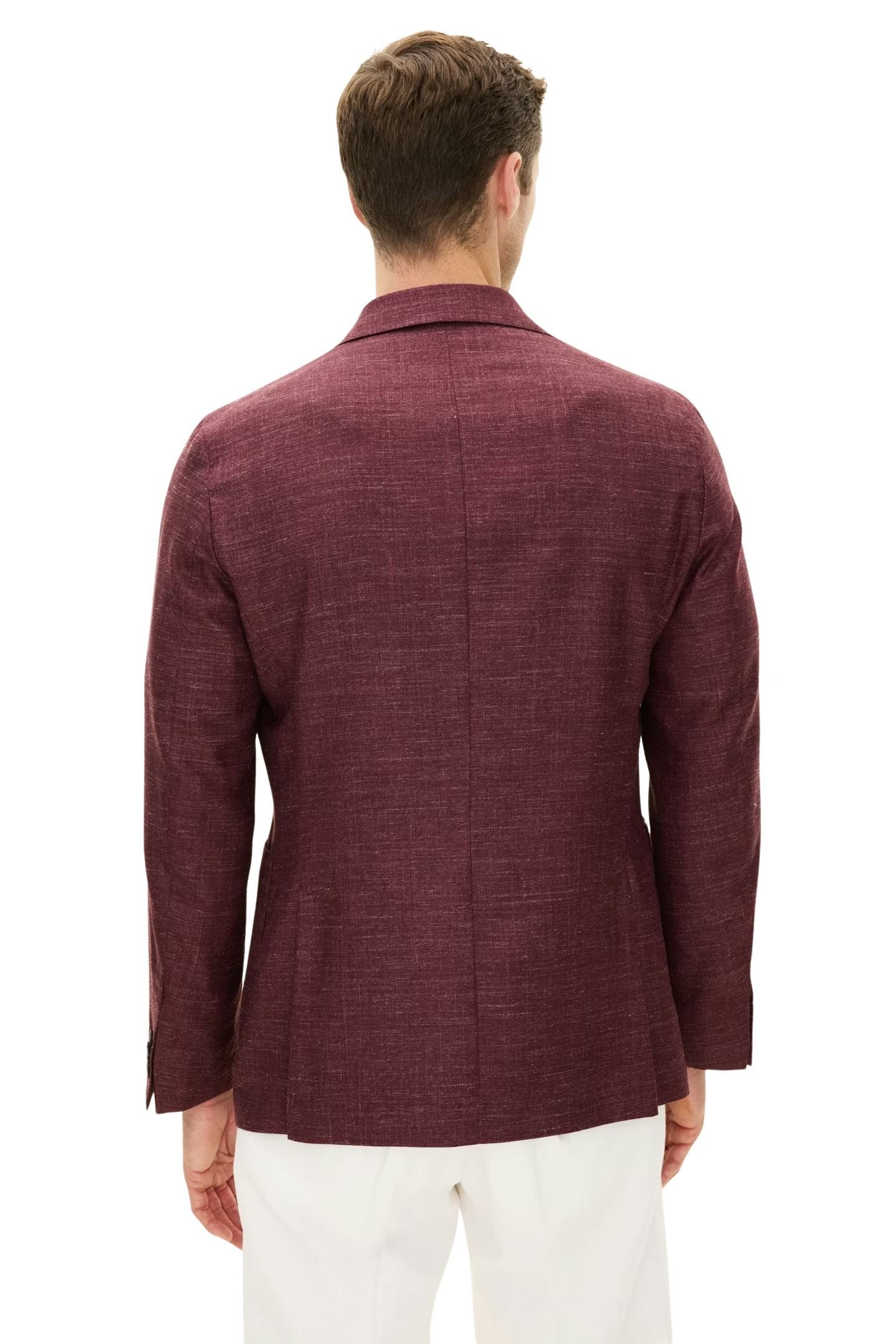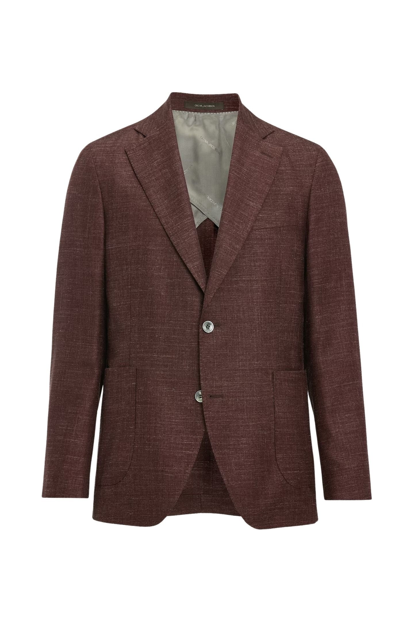 Blazer til herre fra Oscar Jacobson. Laget i en eksklusiv blanding av ull, silke og lin med twillvev fra Lanificio di Pray. Den ukonstruerte skulderen og lette konstruksjonen gir et avslappet, men sofistikert uttrykk, perfekt til sesongens anledninger.