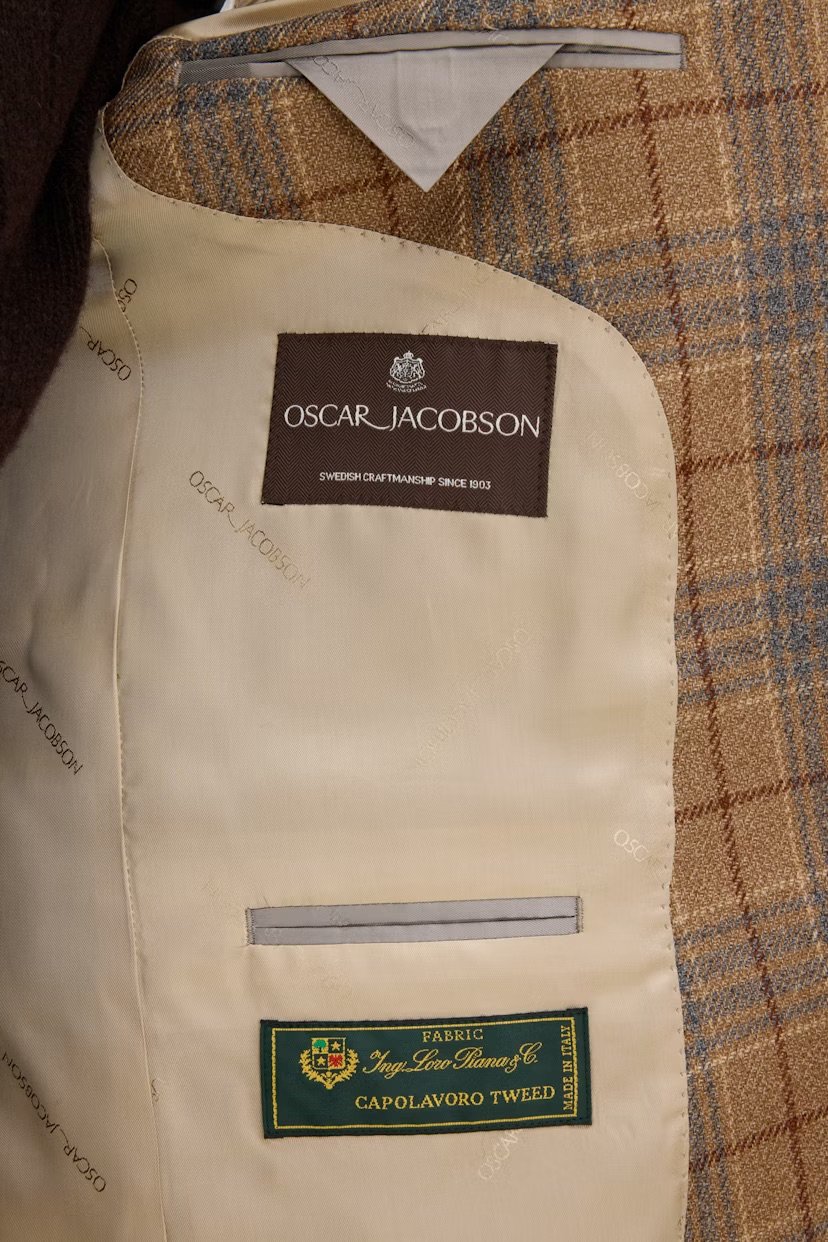 Blazer til herre fra Oscar Jacobson. Fogerty er laget i eksklusiv Loro Piana-ull med stretch, og har et klassisk rutemønster, ekstra myk skulder og behagelig regular fit. En tidløs investering du kan bruke sesong etter sesong.