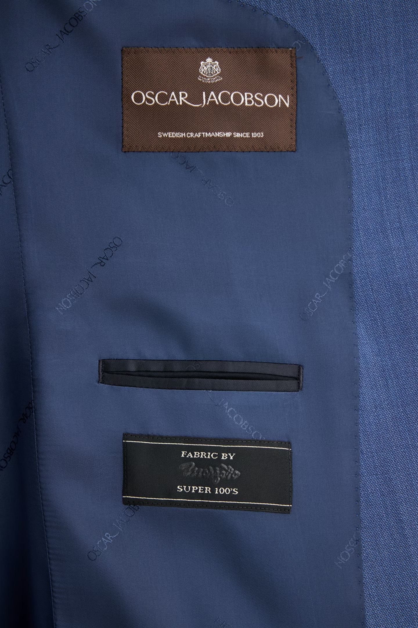 Blazer til herre fra Oscar Jacobson. Laget i 100% Super 100’s ull fra Marzotto med en elegant microstruktur. Helfôret konstruksjon med mykt formet bryst og skulder gir en moderne, men komfortabel silhuett som er perfekt til jobb og formelle anledninger.