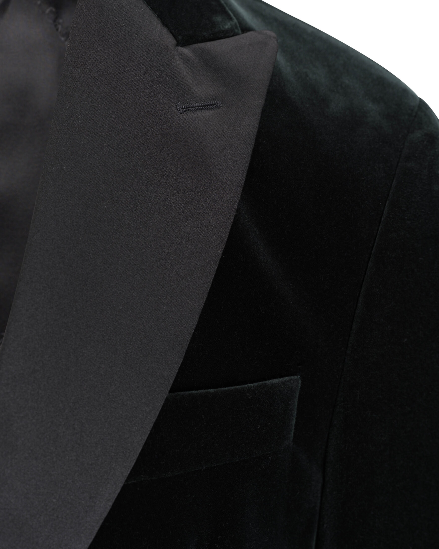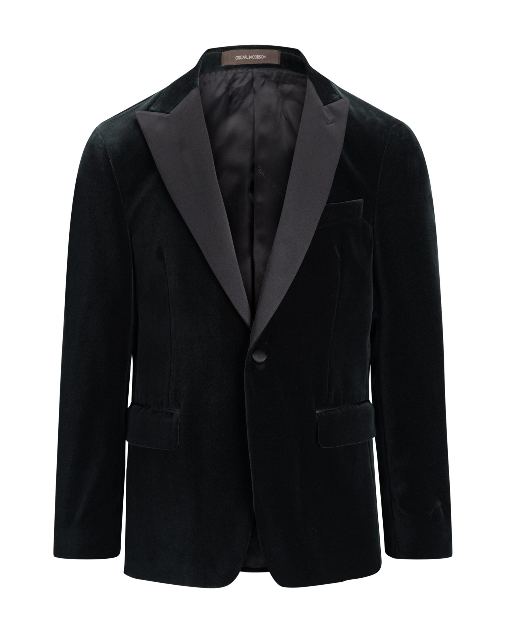 Frampton Blazer fra Oscar Jacobson. En eksklusiv fløyelsblazer i 100% bomull, perfekt for festlige anledninger og kvelder med stil. Den dype grønnfargen gir et luksuriøst uttrykk, mens satengslagene tilfører et sofistikert preg. Kombiner den med en sort bukse og hvit skjorte for en klassisk, elegant look med særpreg.