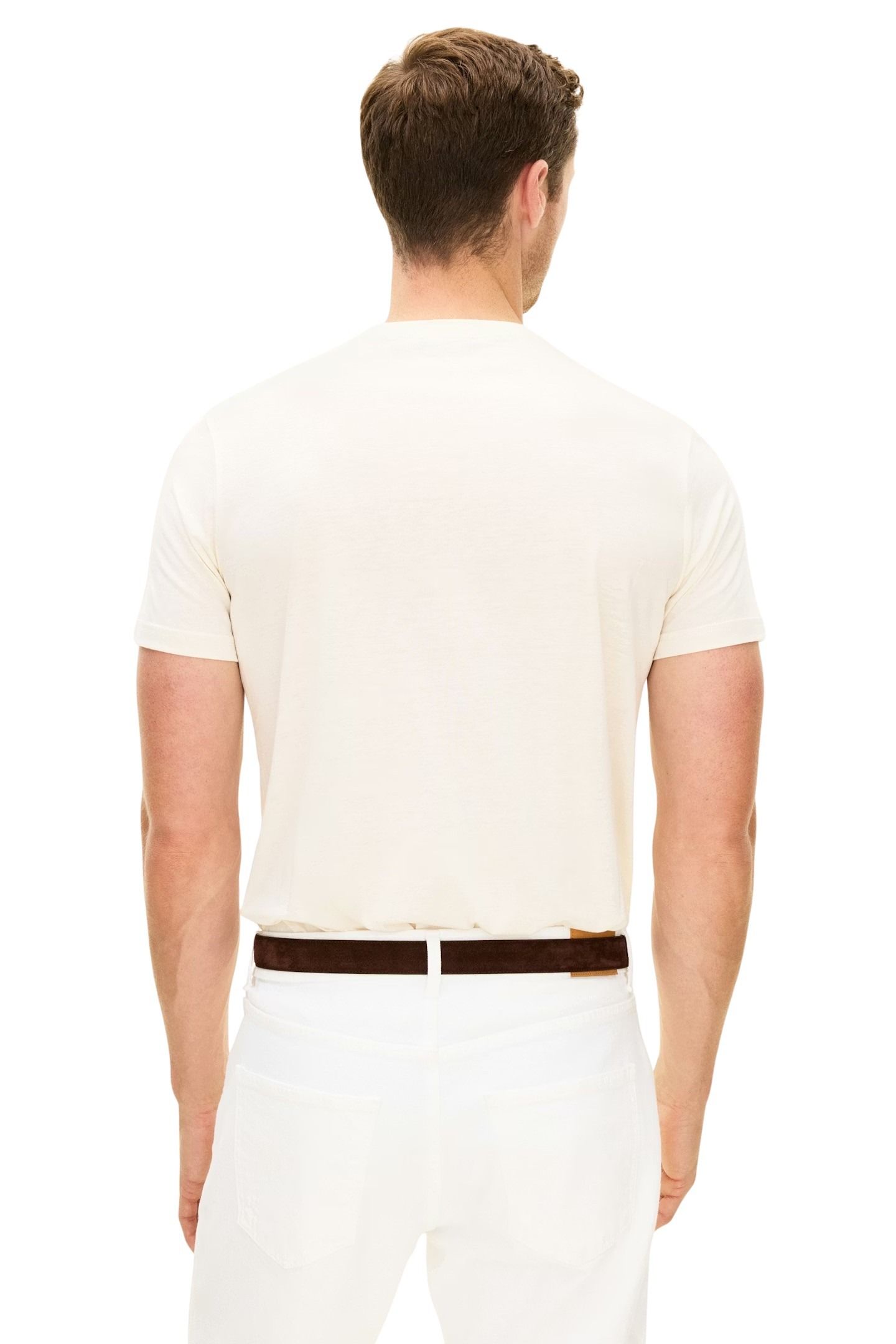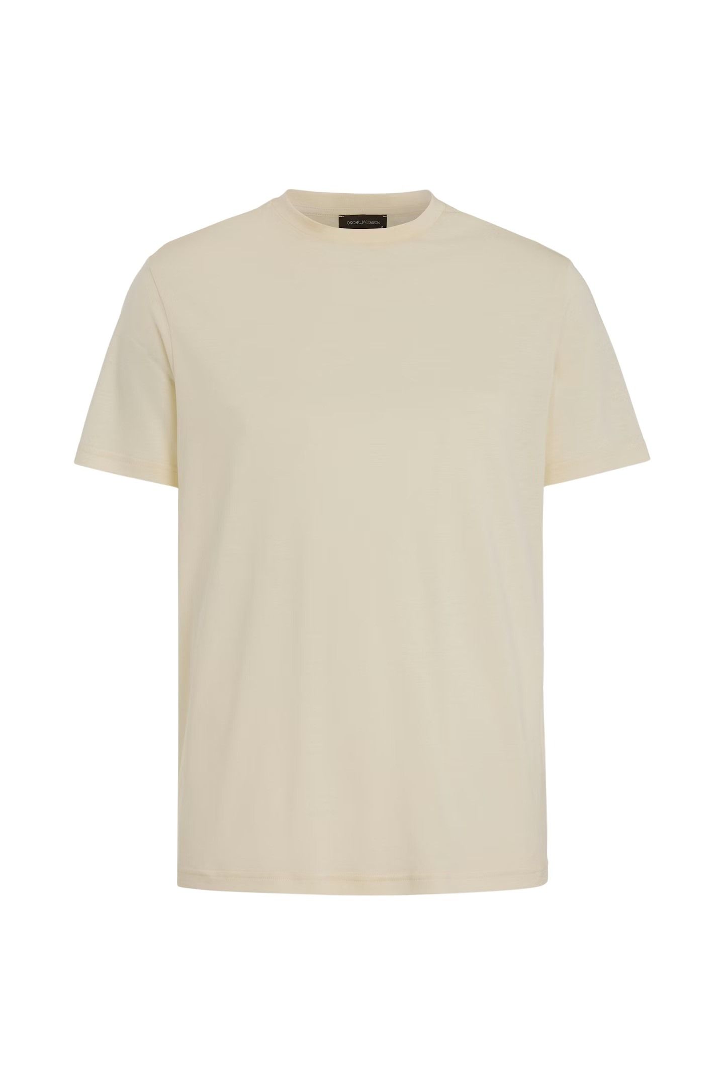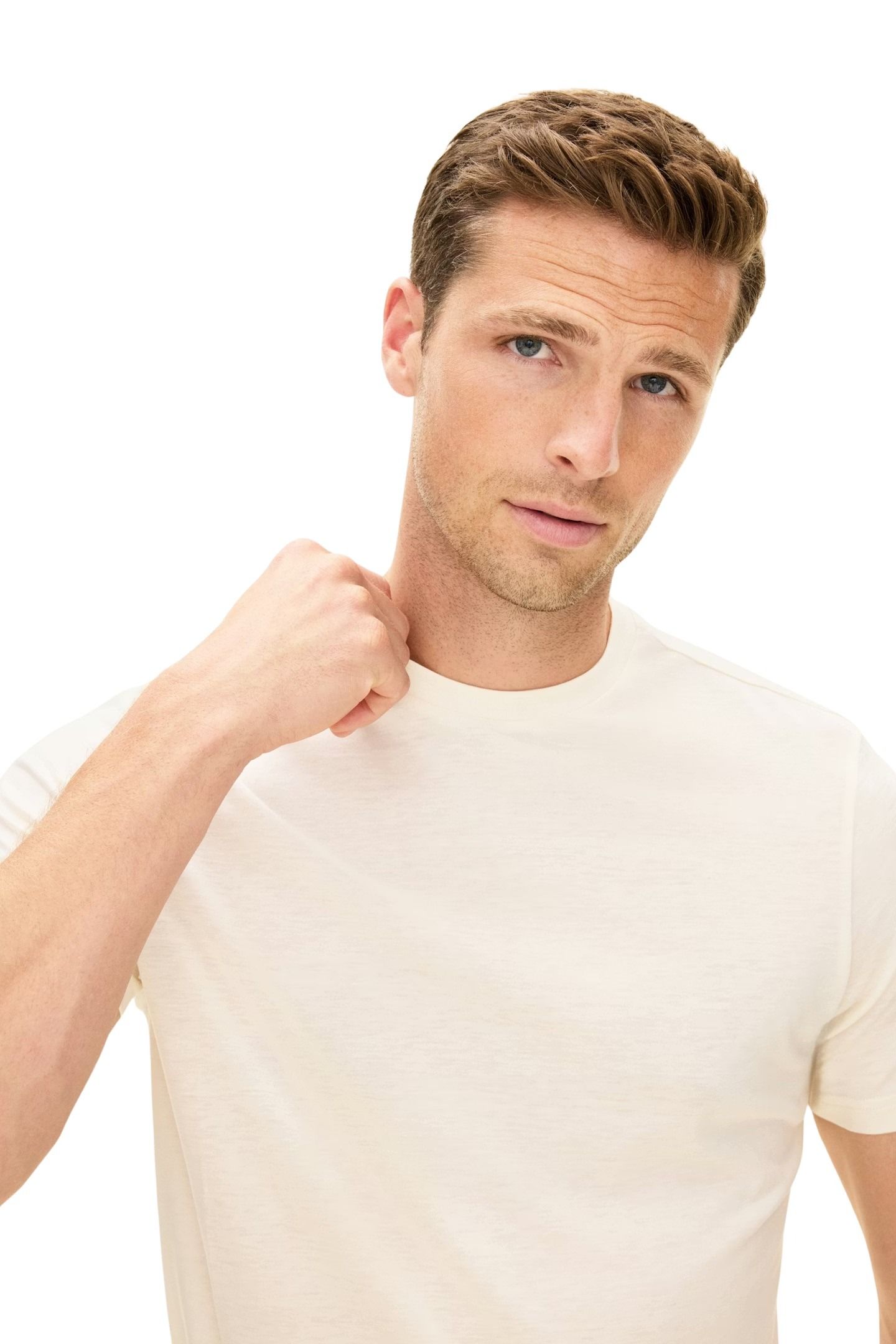 T-skjorte til herre fra Oscar Jacobson. Laget i en myk blanding av bomull og tencel som føles lett og behagelig mot huden. Stoffet har en diskret glans som gir et rent og elegant uttrykk. Like fin under blazer som til en mer avslappet hverdagsstil.