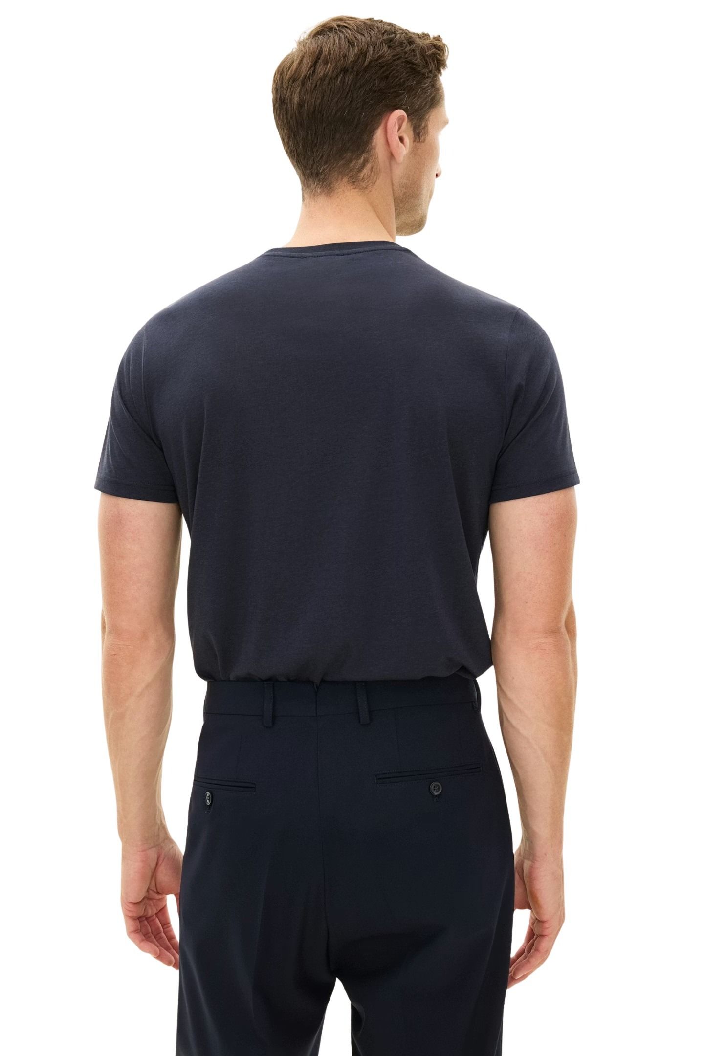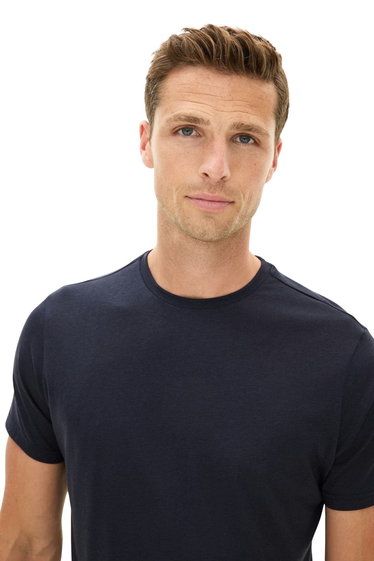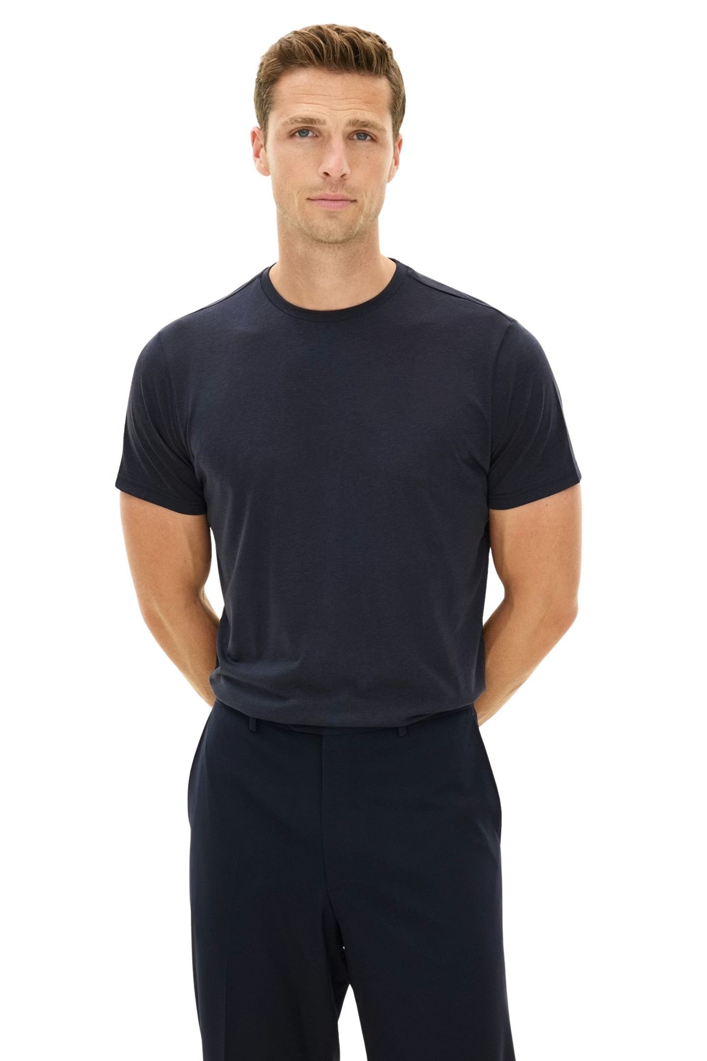 T-skjorte til herre fra Oscar Jacobson. Laget i en myk blanding av bomull og tencel som føles lett og behagelig mot huden. Stoffet har en diskret glans som gir et rent og elegant uttrykk. Like fin under blazer som til en mer avslappet hverdagsstil.