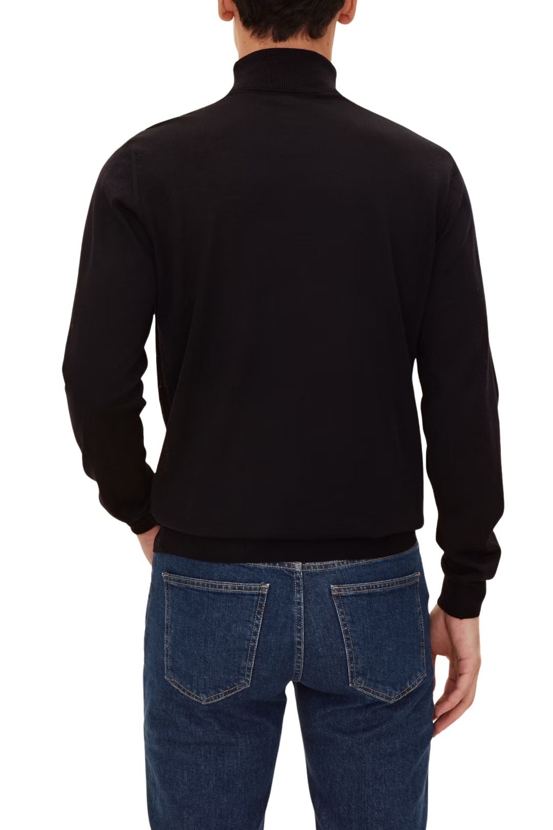 Høyhalset genser til herre fra Oscar Jacobson, laget i komfortabel råull av merinoull. Denne lette genseren er det perfekte valget for et smart casual antrekk, enten den brukes alene eller under en fin blazer.