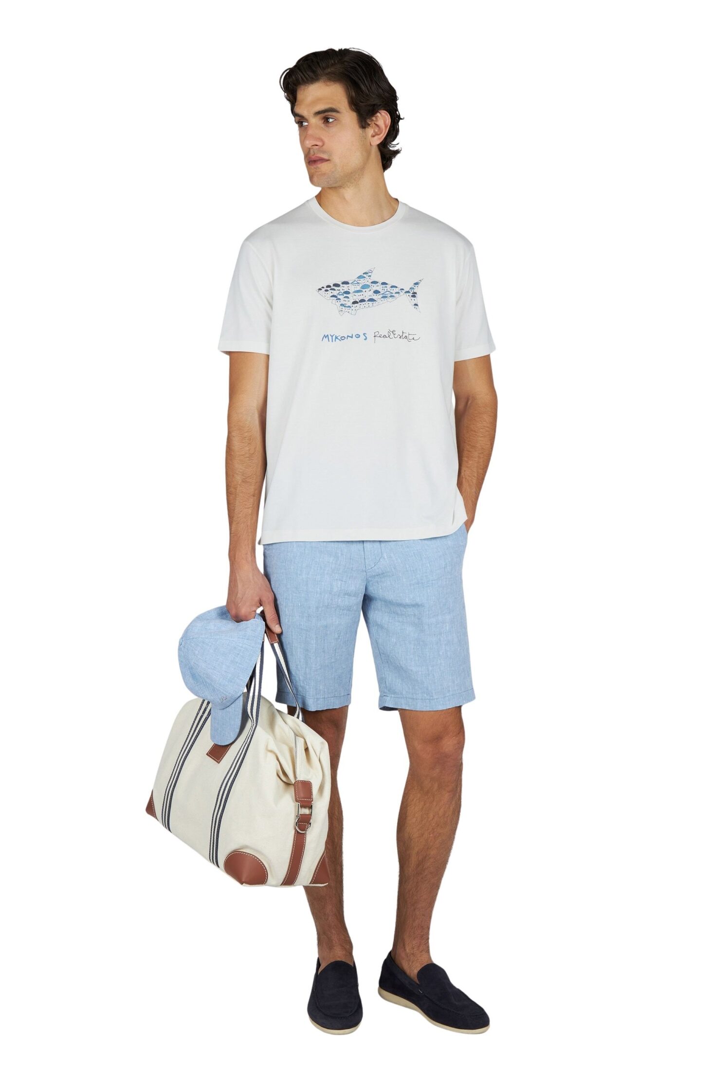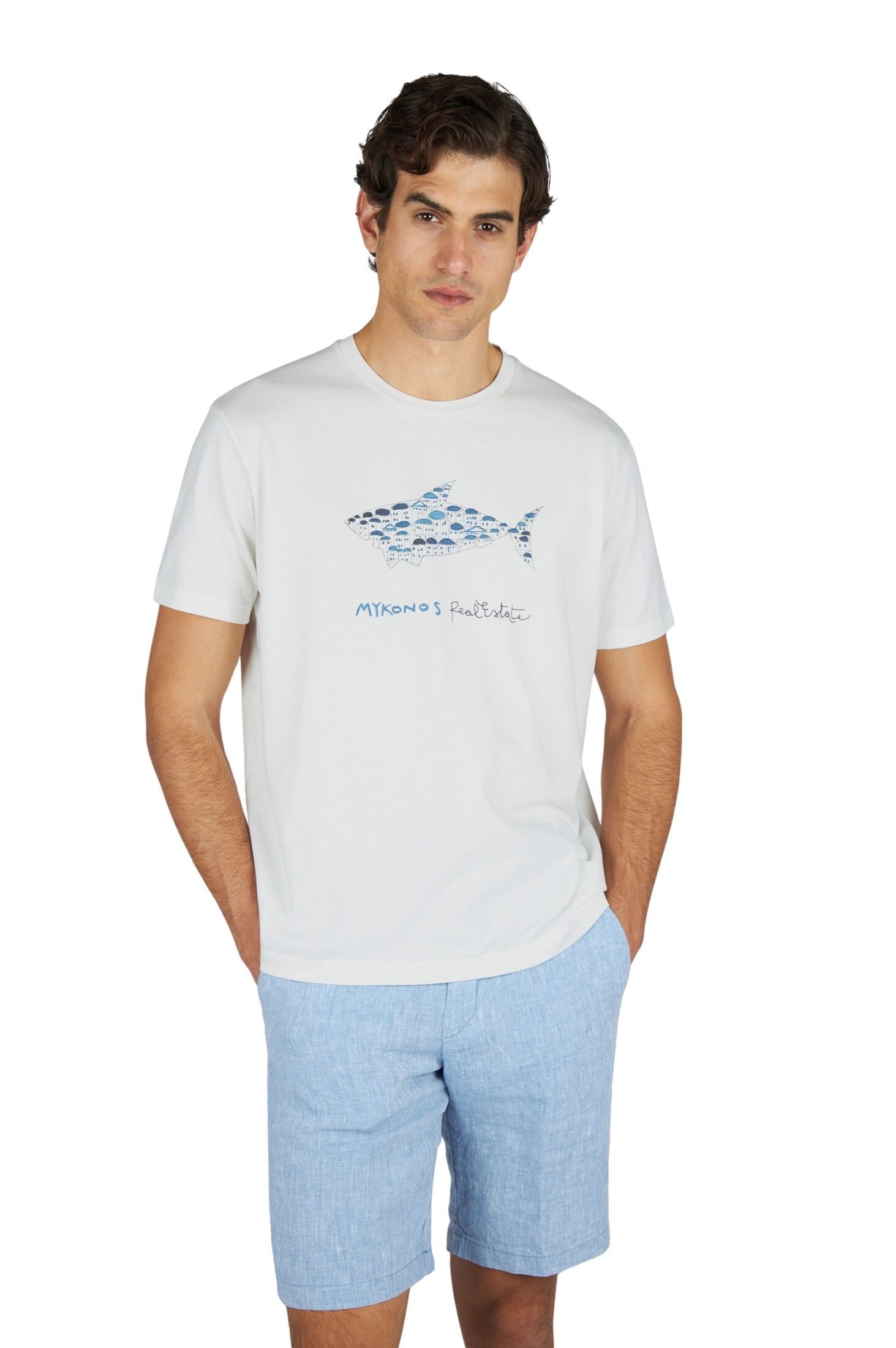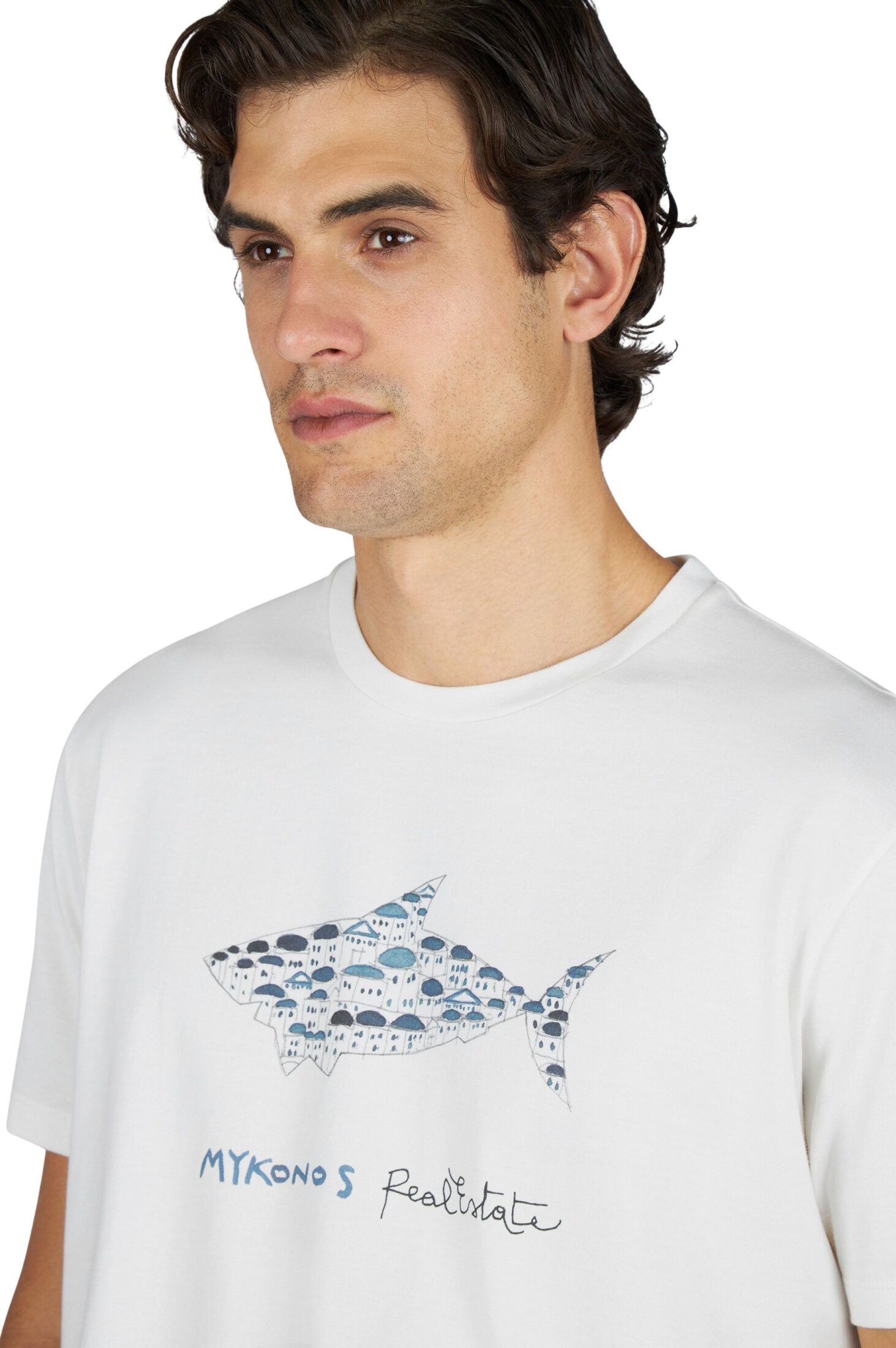 Cotton Jersey T-Shirt With Mikonos Real Estate Print – Hvit