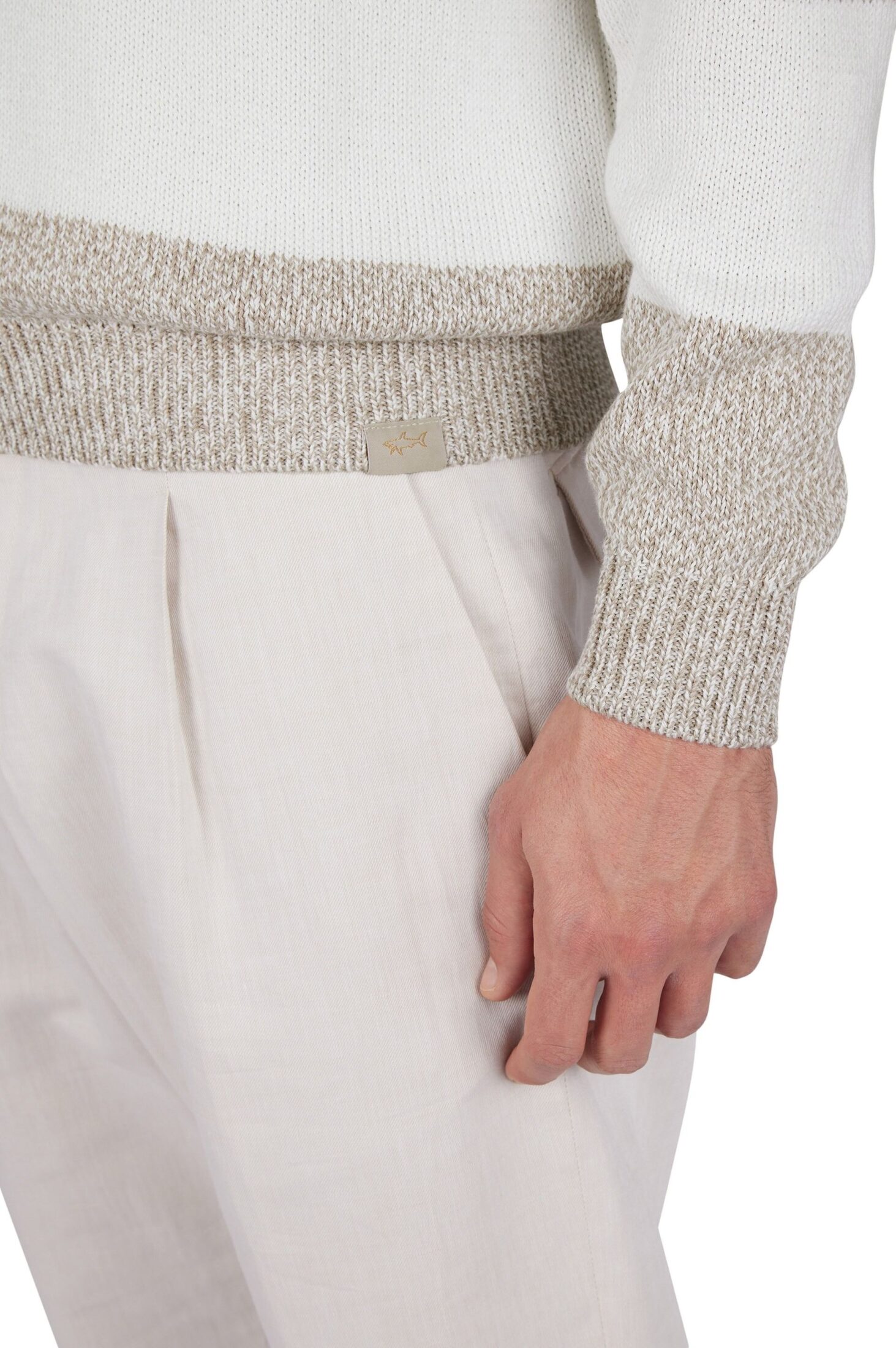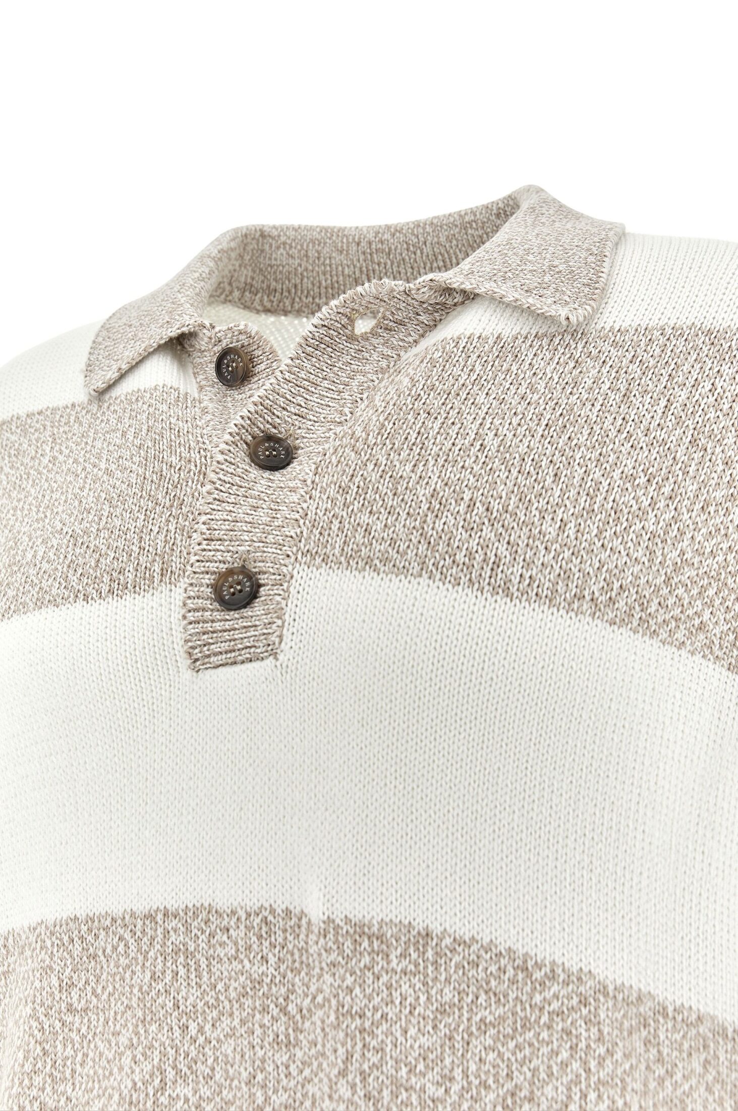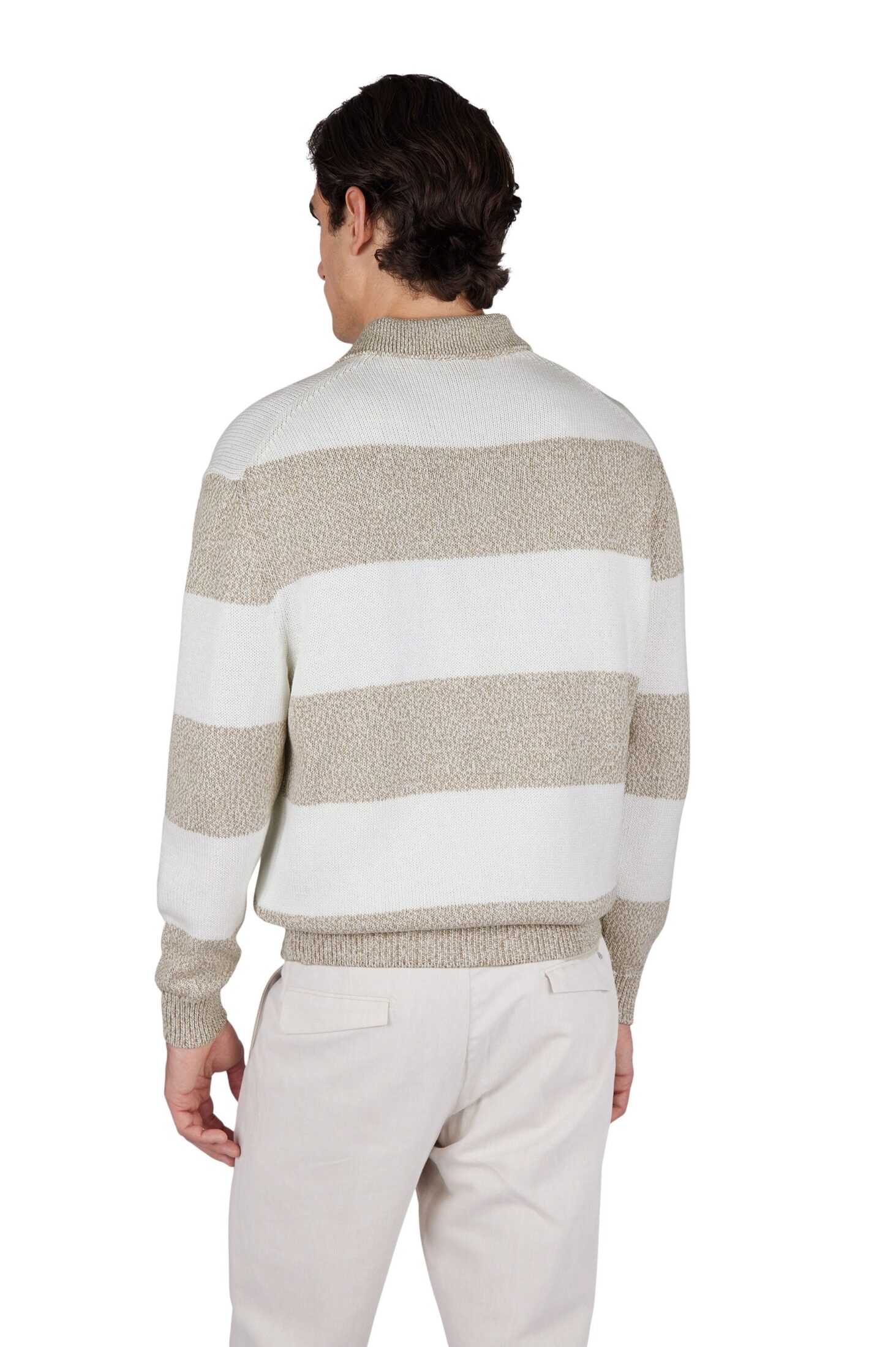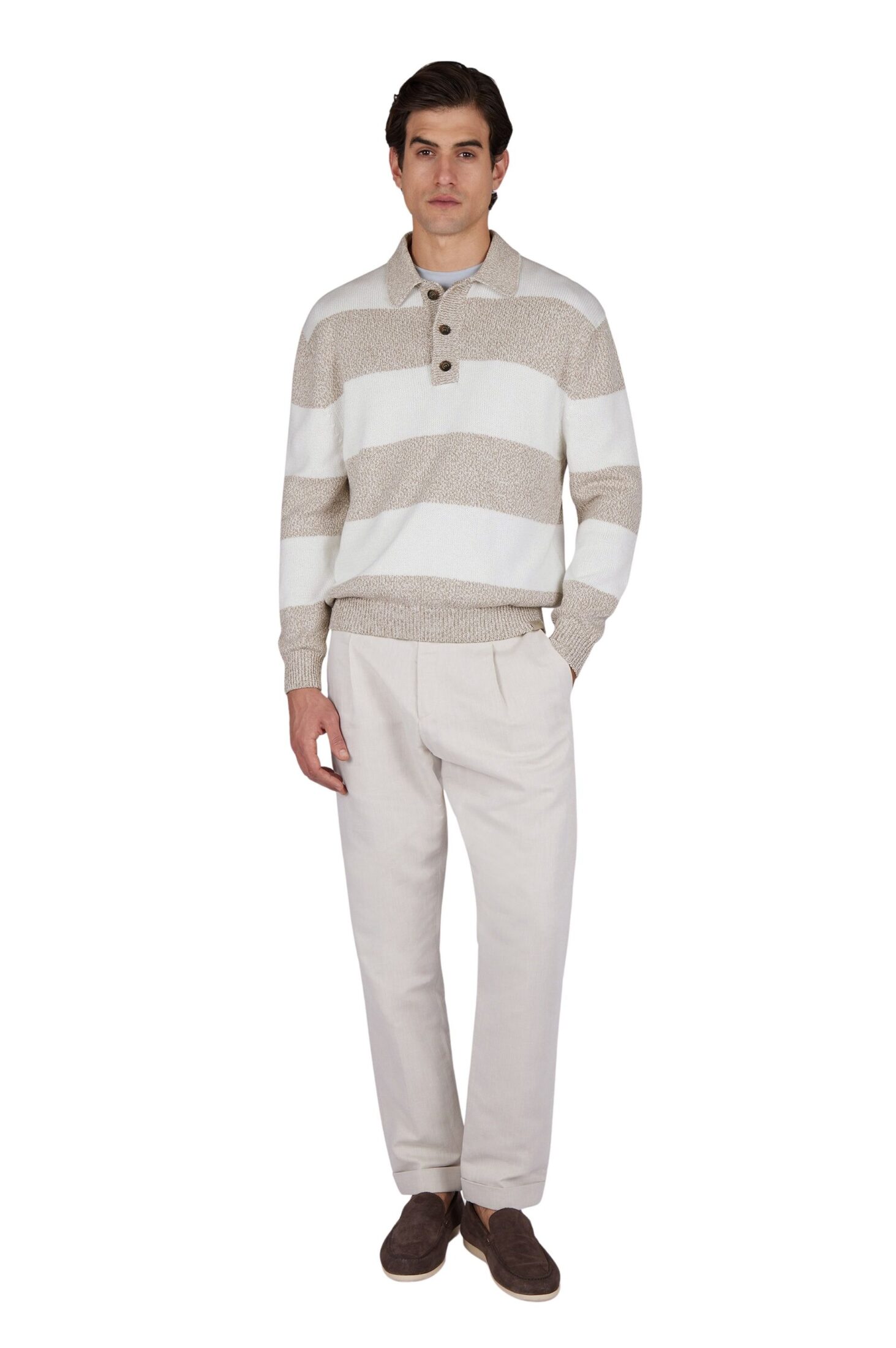Genser til herre fra Paul & Shark. En maritim og stilren strikket polo med klassiske horisontale striper og treknapps stolpe. Laget i eksklusiv Giza-bomull med Piuma-garn som gir en ekstra myk, lett og pustende kvalitet mot huden. En allsidig herrepolo som passer like godt til sommerlige dager ved sjøen som til en avslappet, velkledd stil i byen.