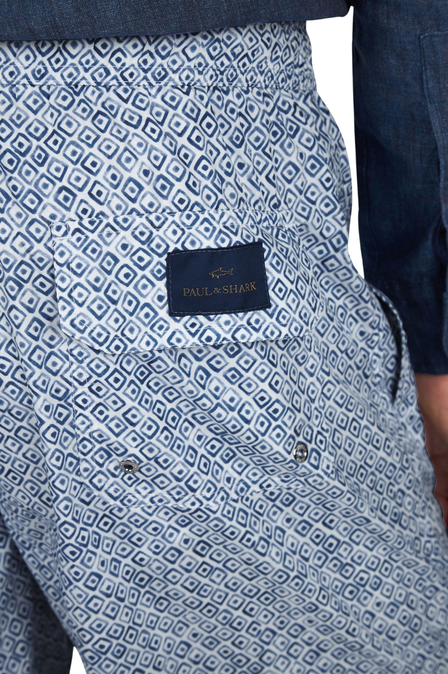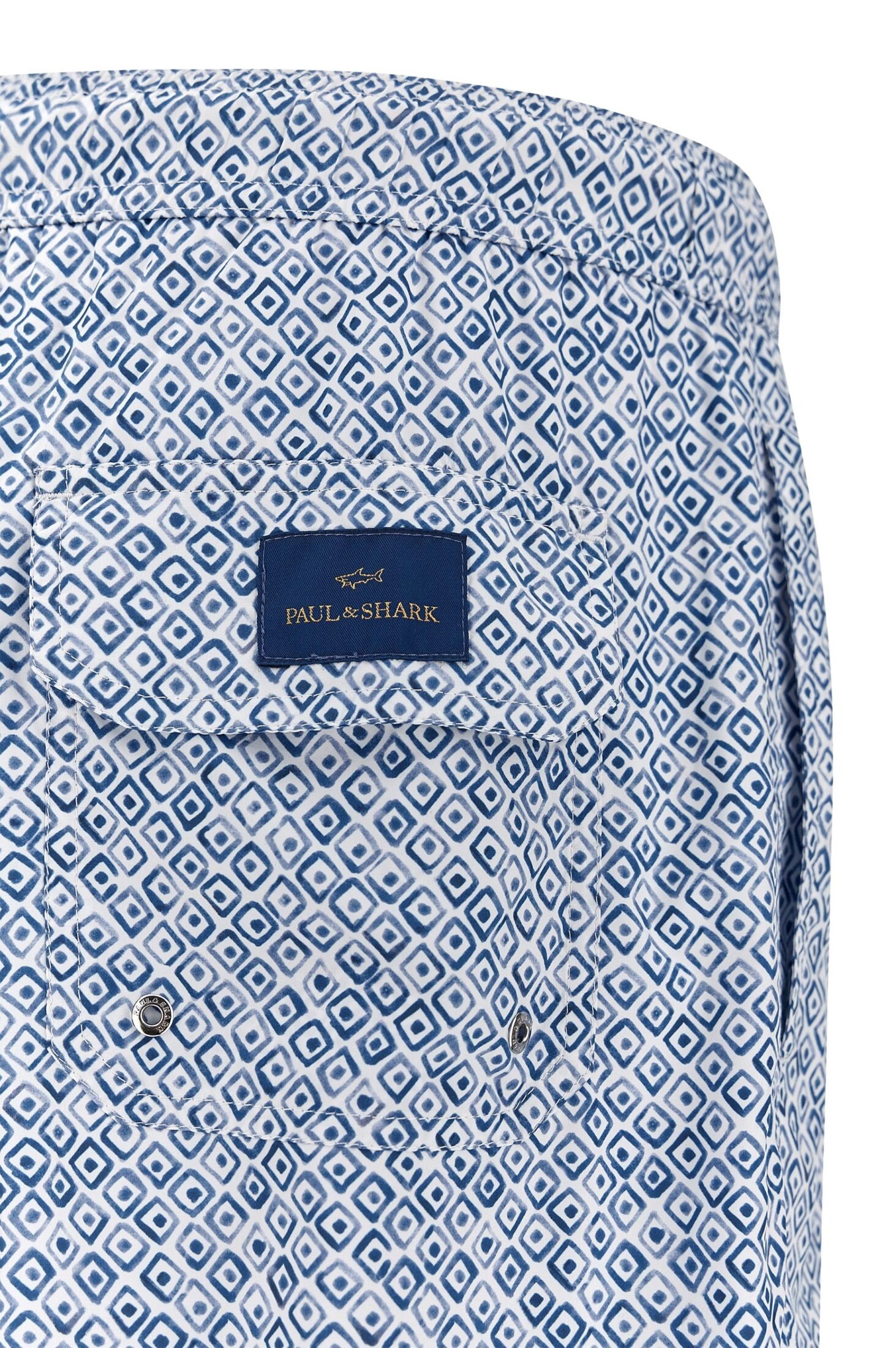 Badeshorts til herre fra Paul & Shark. Badeshorts med snøring i livet, perfekt til både strand og båtliv. Laget i ultralett mikrofiber som tørker raskt og gir optimal komfort hele dagen. Det eksklusive Riviera Collection Geometric Watercolor-printet gir et sommerlig, maritimt uttrykk, mens ikonisk Paul & Shark-patch på baklommen setter prikken over i-en.