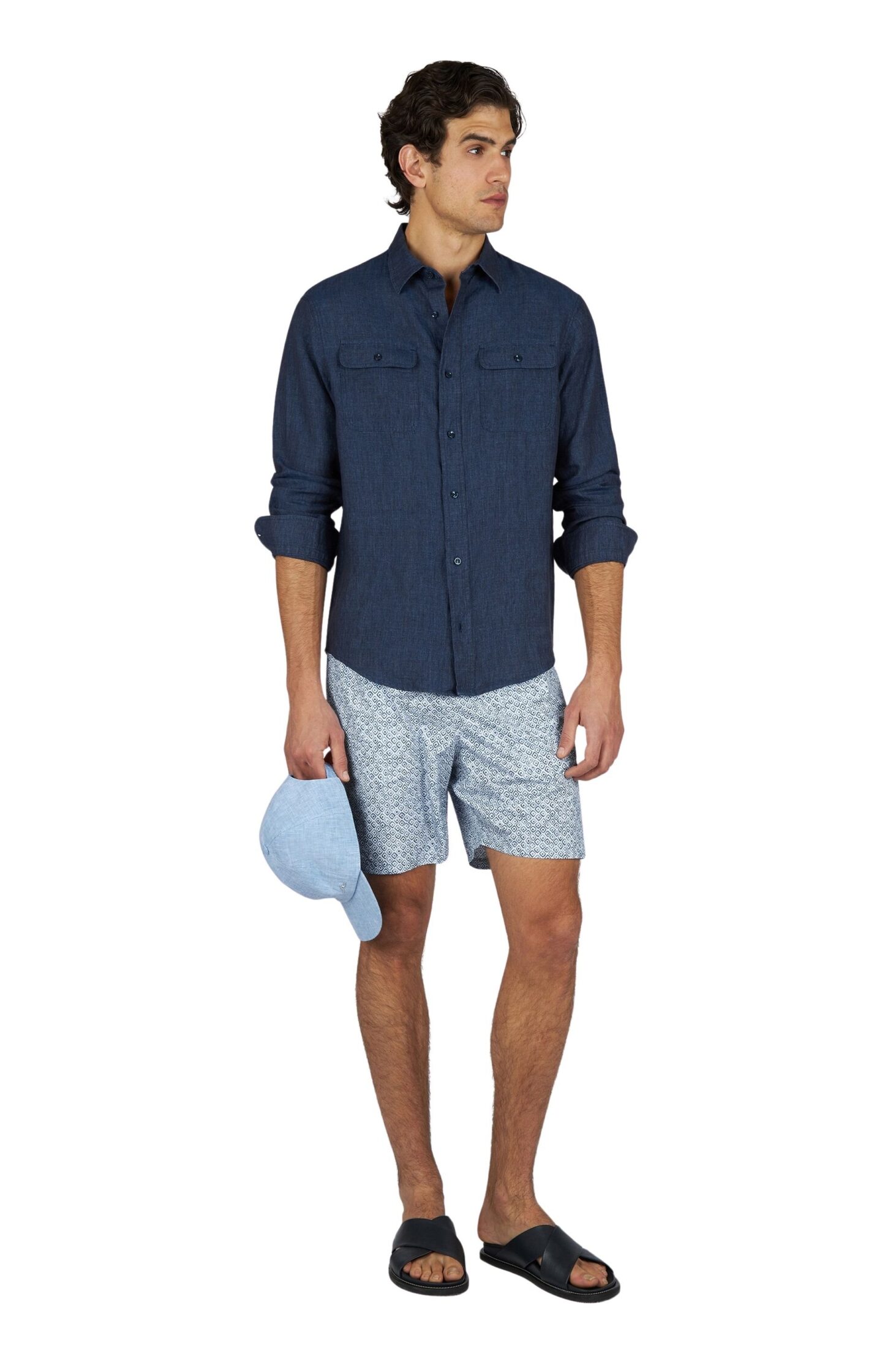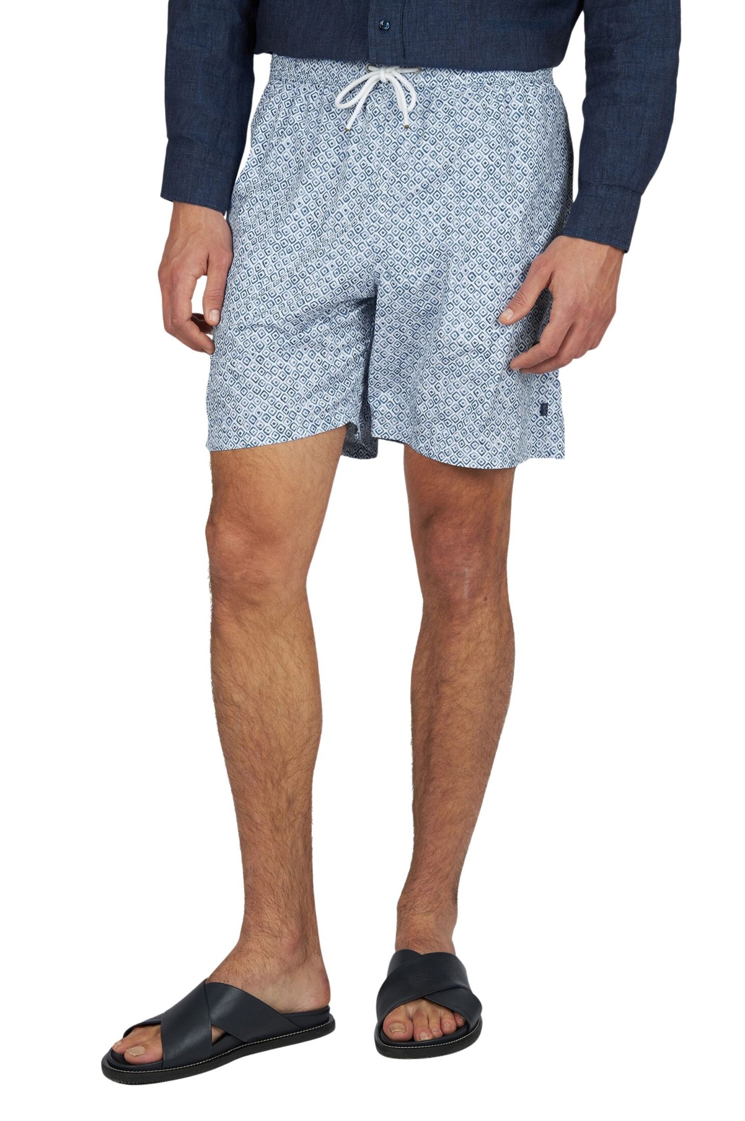 Swimwear With Geometric Watercolor Print – Blå