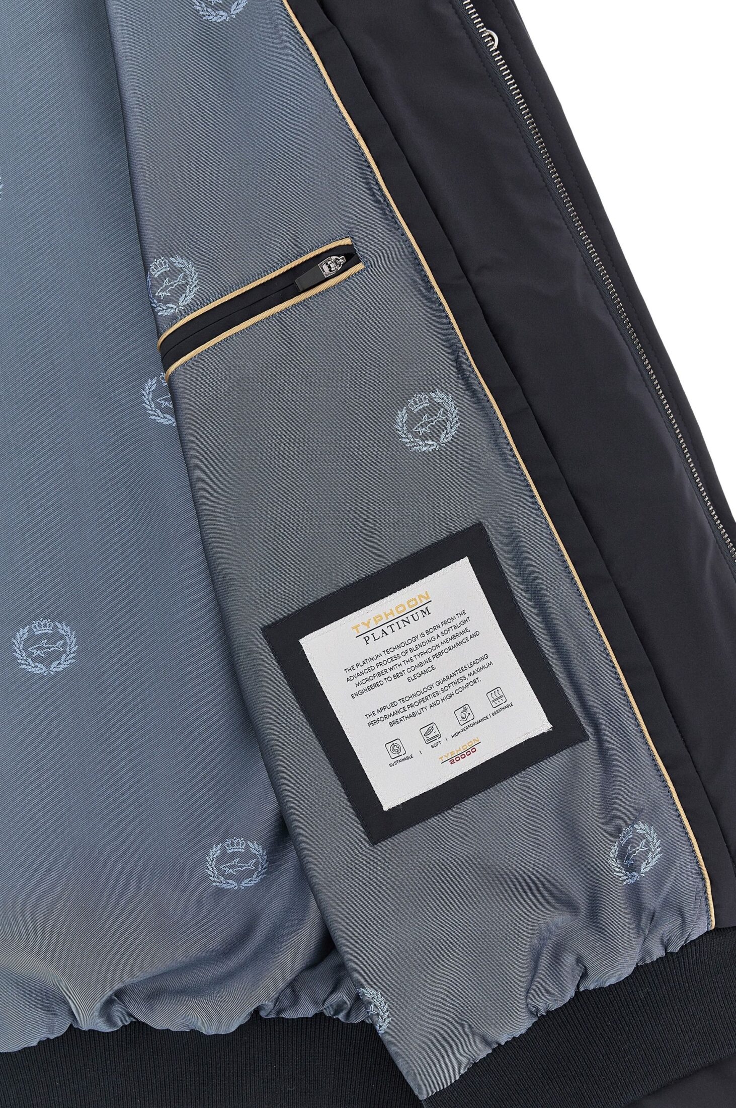 Jakke til herre fra Paul & Shark. En allsidig jakke som kombinerer maritimt uttrykk med høy komfort og teknisk ytelse. Den har avtakbart frontpanel og toveis glidelås med trykknapplukking, som gjør den fleksibel gjennom skiftende værforhold. Laget i eksklusive Typhoon® Platinum, et pustende, vind- og vanntett materiale som gir optimal beskyttelse med et sofistikert preg.