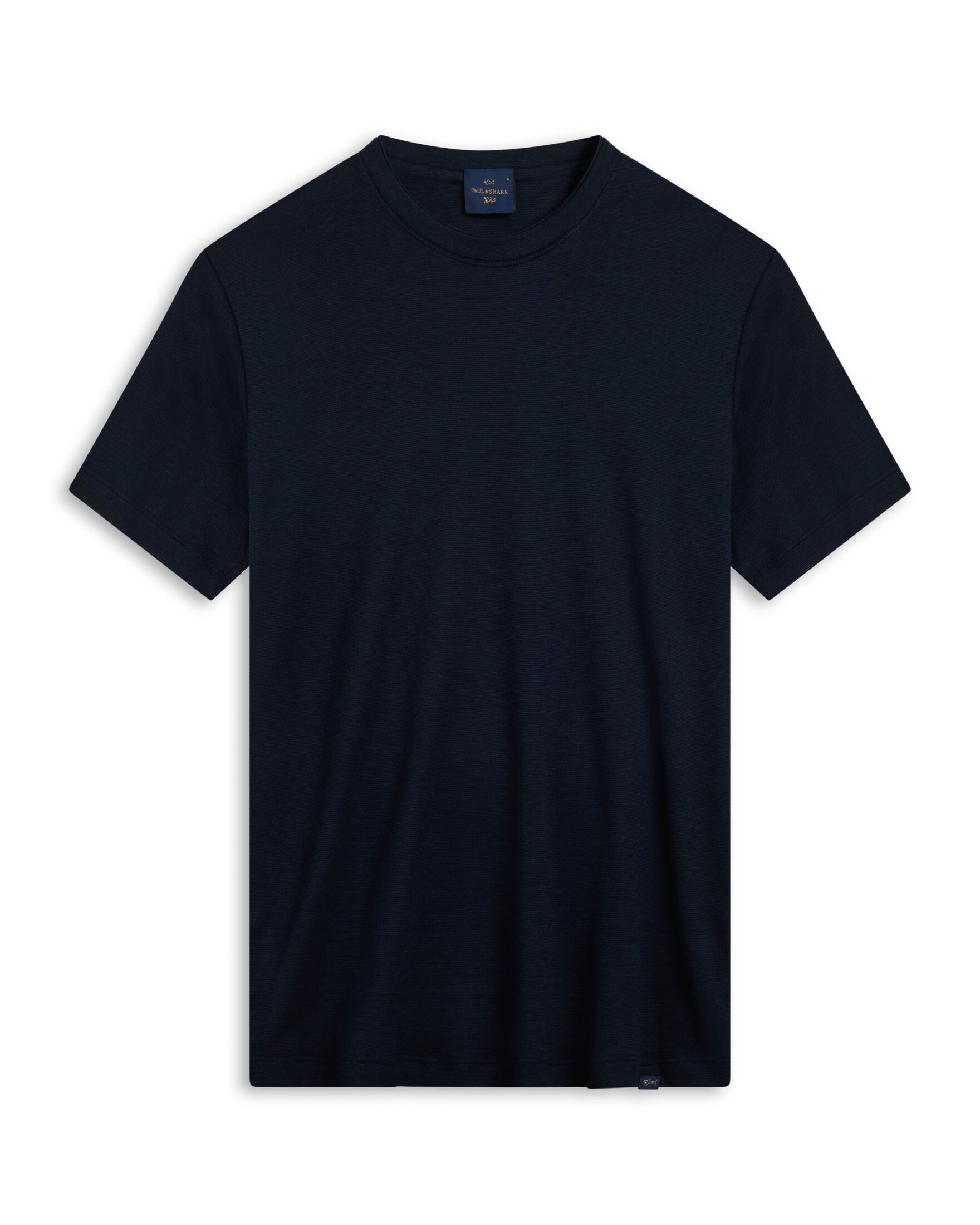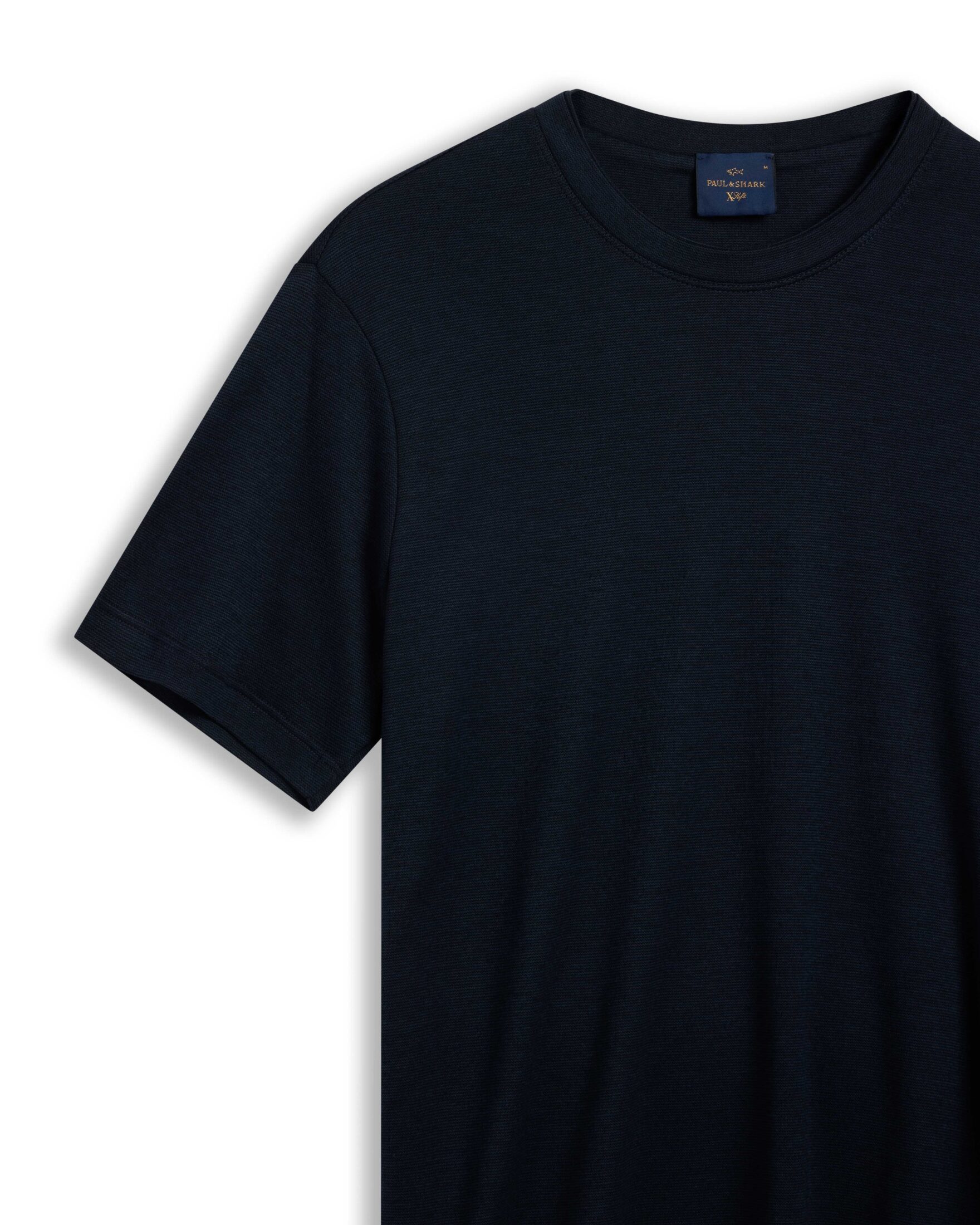 T-skjorte til herre fra Paul & Shark. En eksklusiv T-skjorte som kombinerer bomull og lyocell i myk interlock-kvalitet med innovativ X-Soft-behandling for en ekstra behagelig følelse mot huden. Klassisk design med rund hals og korte ermer gjør den til en allsidig base i garderoben. Ikonisk Shark-logo nederst og subtil hai-detalj bak gir et sofistikert og gjenkjennelig uttrykk.