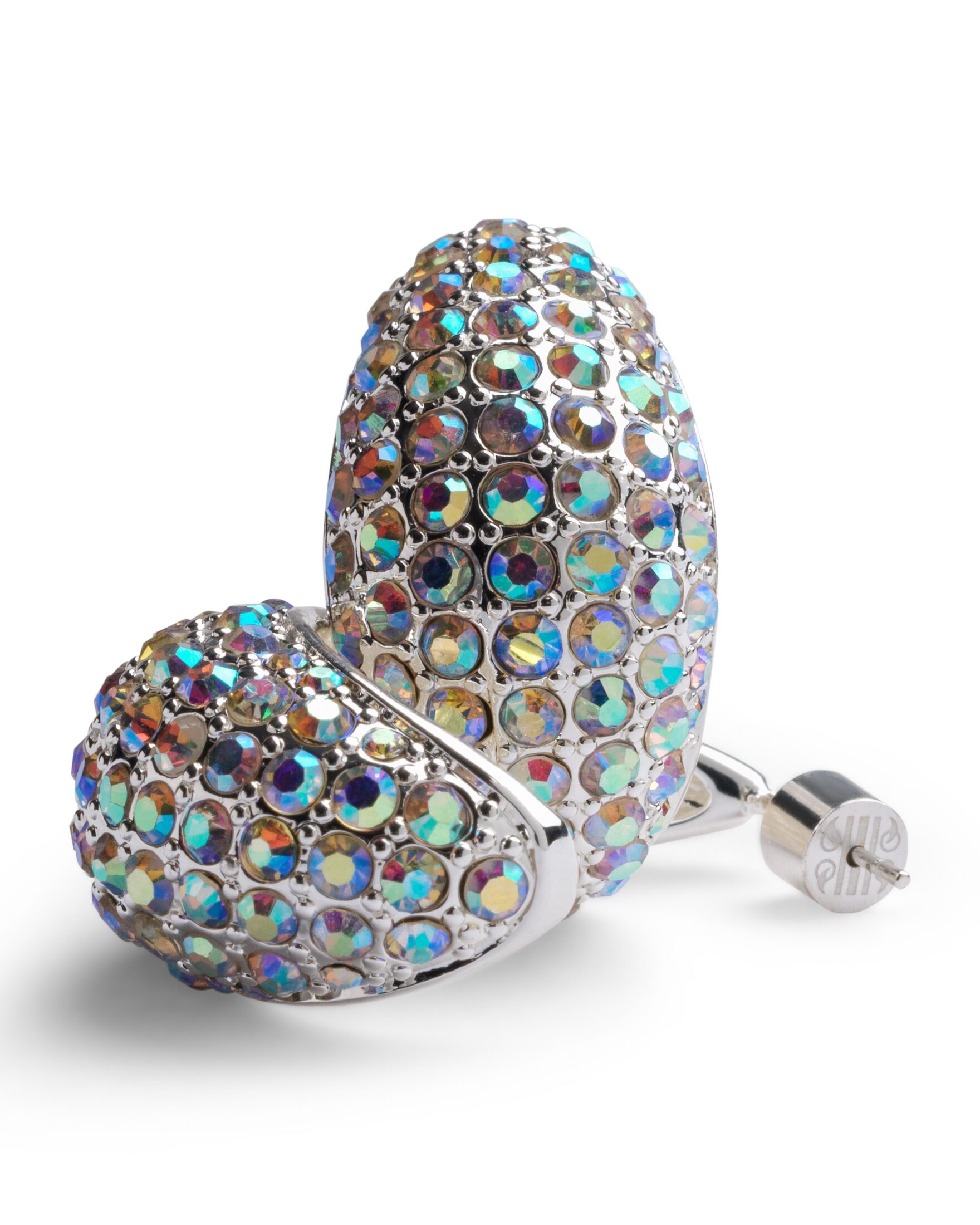 Øredobber fra Pearl Octoposs.y. Flatterende buet form besatt med mange reflekterende krystaller som fanger lyset vakkert.