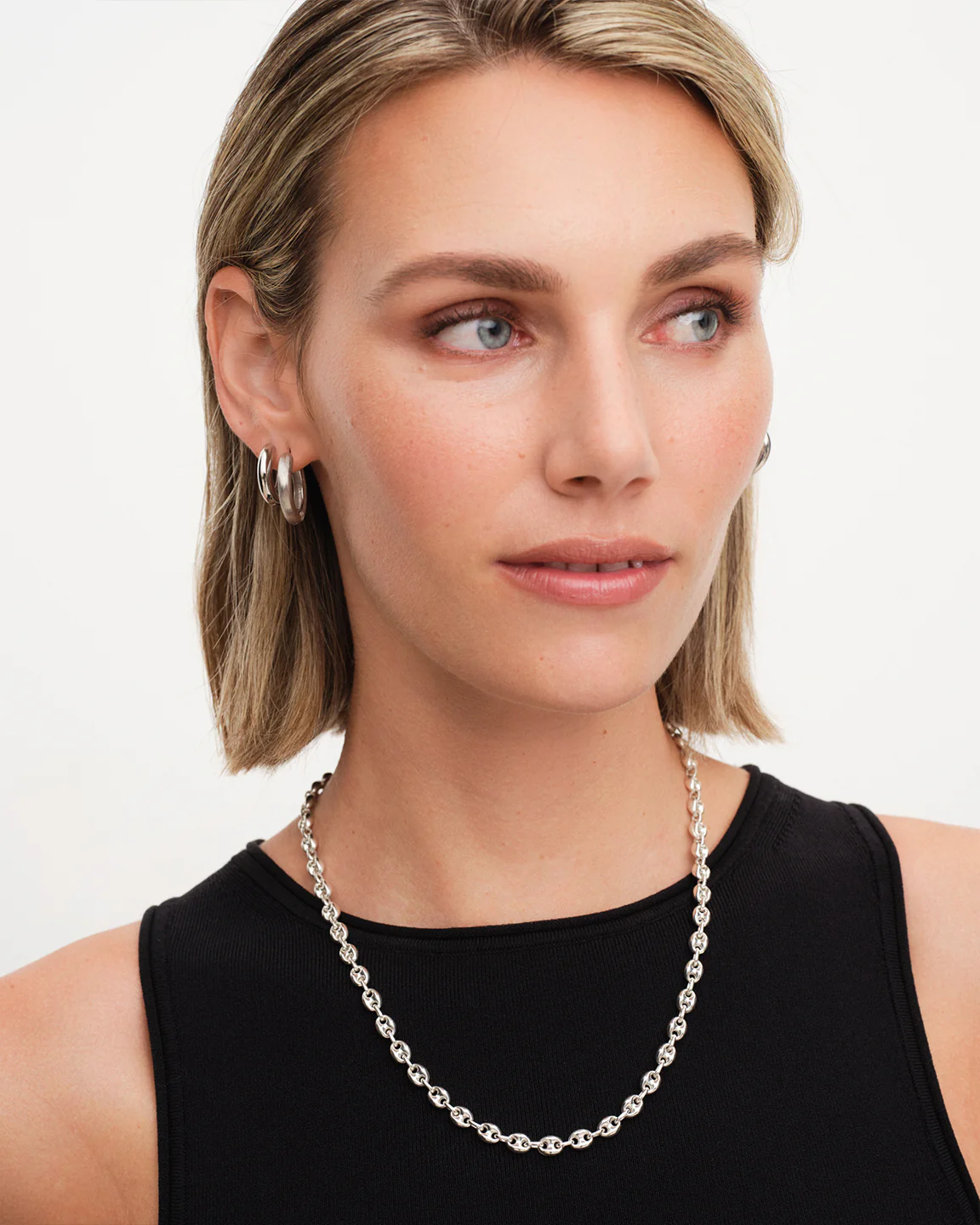 Halskjede fra Philippa Studios. Et rent, minimalistisk halskjede belagt med hvit rhodium, som passer perfekt til enhver anledning. Bruk det alene for en stilren look, eller lag dybde ved å kombinere det med andre kjeder fra kolleksjonen.