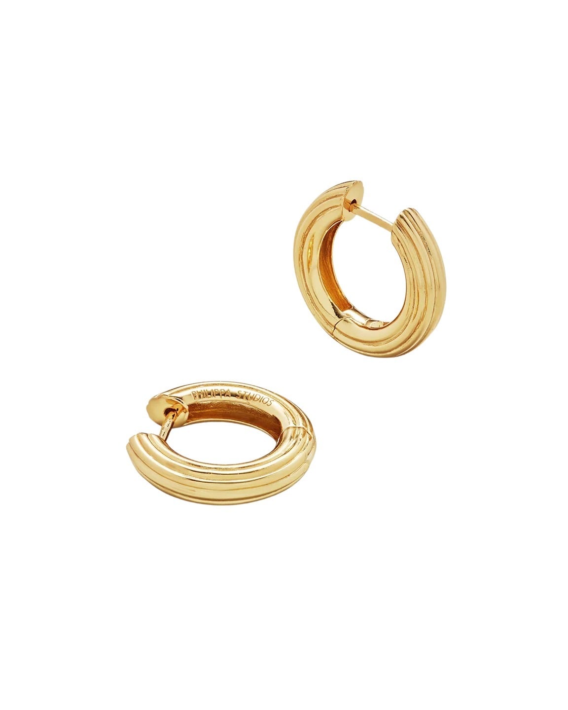 Øreringer fra Philippa Studios. Elegante øreringer belagt i 18K gull, som gir et markert uttrykk med sine tidløse riller og kraftfulle form. De står sterke alene, men kan også enkelt styles med andre øredobber for en mer personlig look.