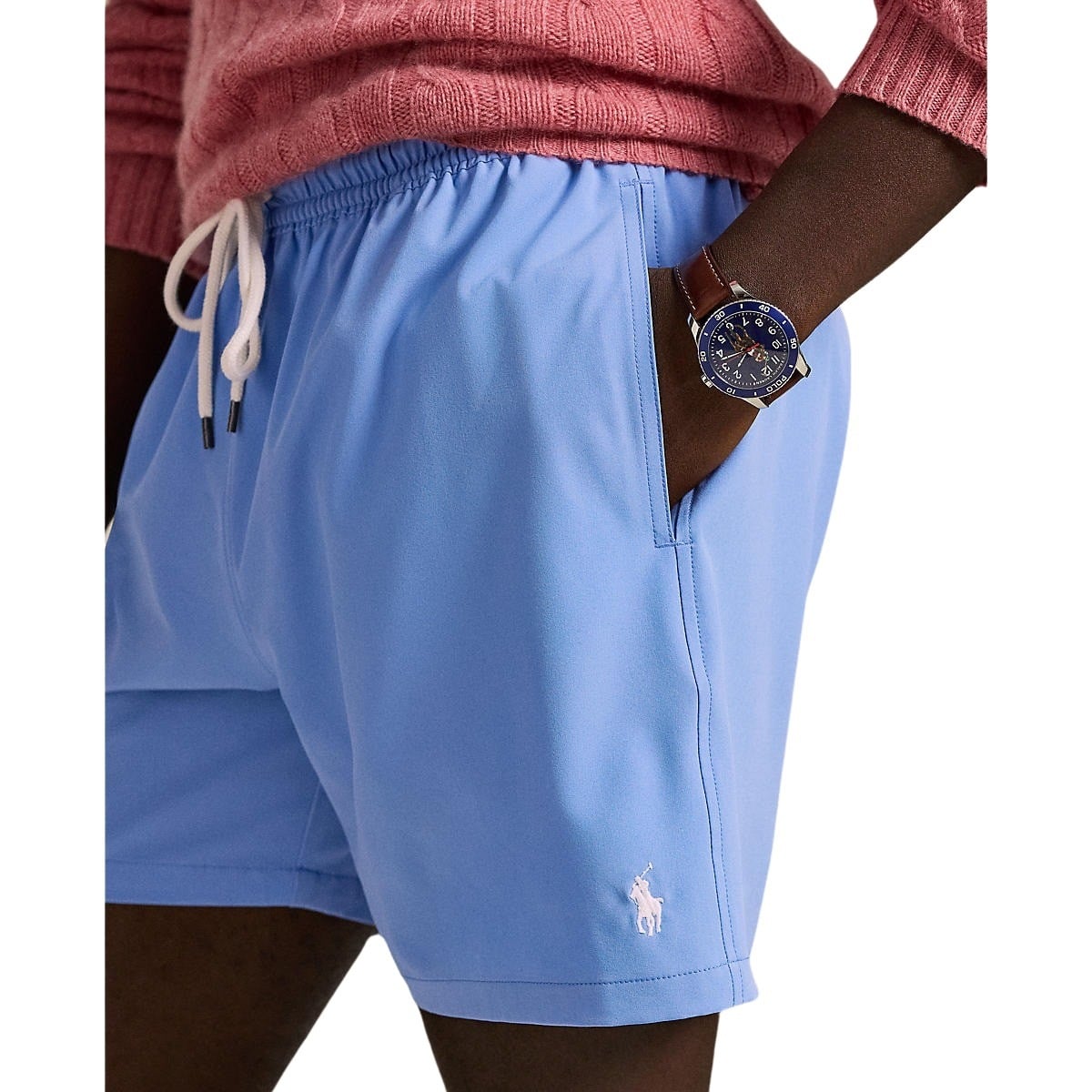 Badeshorts til herre fra Polo Ralph Lauren. En klassisk og tidløs badeshorts i en ren, elegant lyseblå farge. Modellen er en del av Traveler-serien – kjent for komfort, rask tørketid og ikonisk stil.