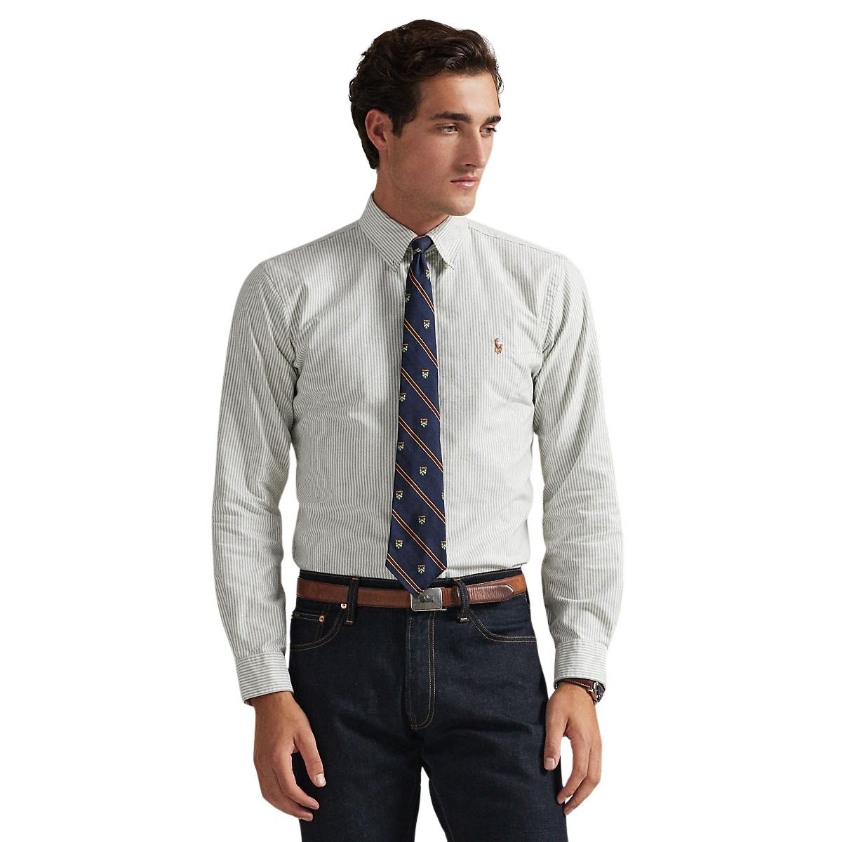 Skjorte til herre fra Polo Ralph Lauren. En klassisk oxfordskjorte i myk bomull med tidløse striper og ikonisk brodert Polo-logo. Den skreddersydde passformen gir et rent og elegant uttrykk – perfekt både til dress og jeans.