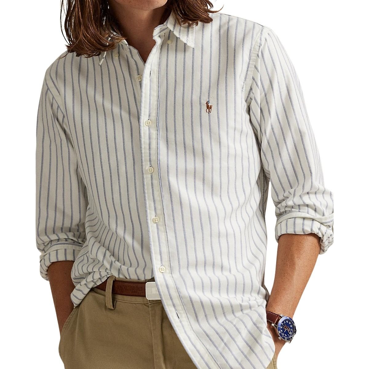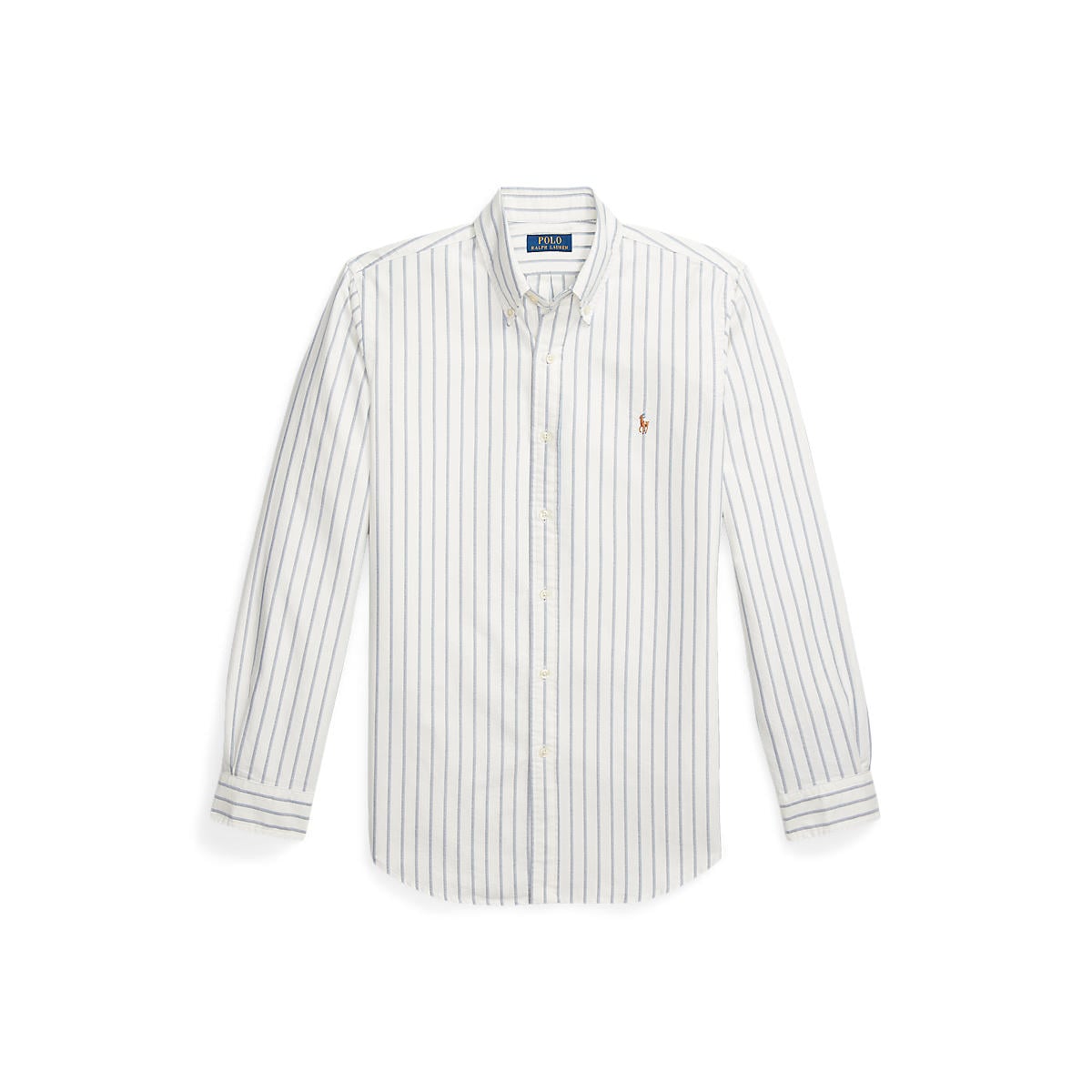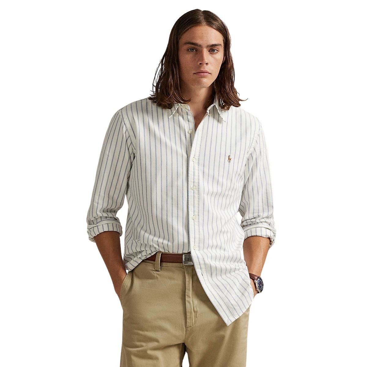 Skjorte til herre fra Polo Ralph Lauren. En tidløs skjorte i myk oxford-bomull med klassiske blå striper. Den skreddersydde passformen og ikoniske Polo-logoen gjør den til et elegant og allsidig valg – perfekt til både jobb og fritid.