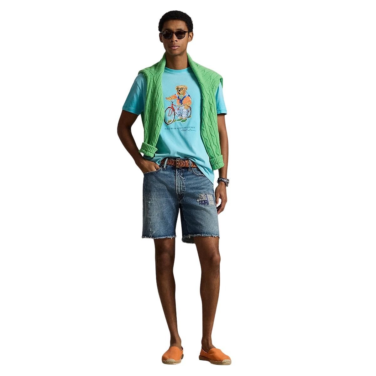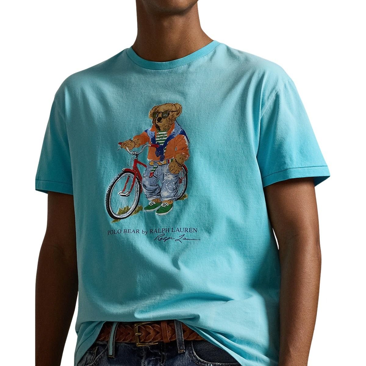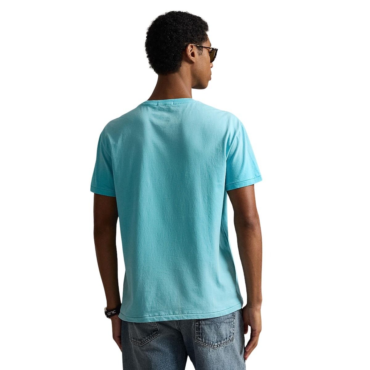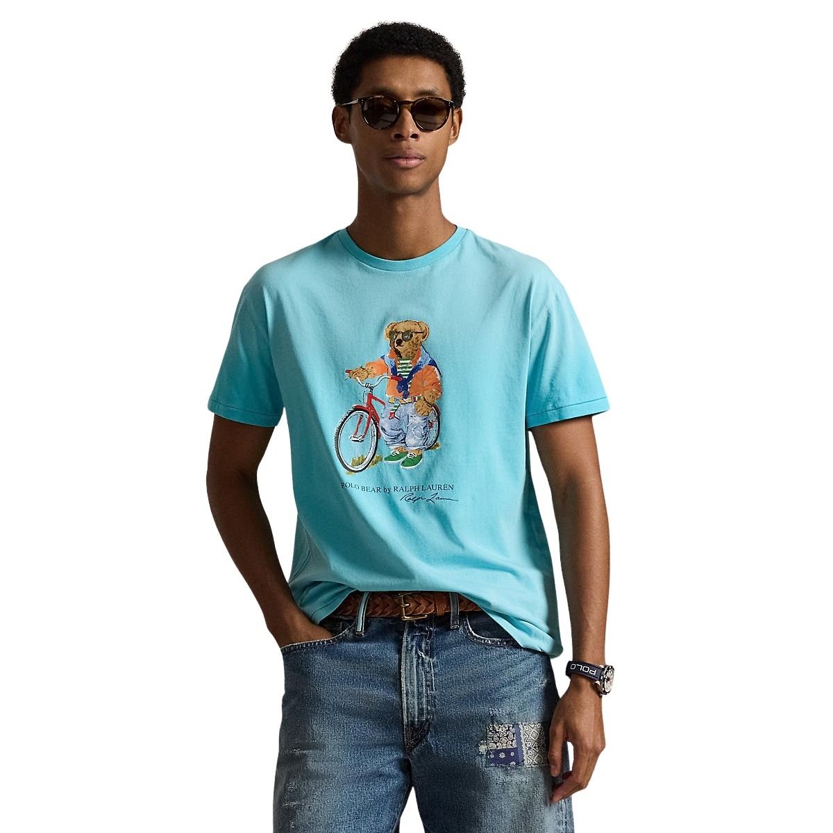 T-skjorte til herre fra Polo Ralph Lauren. Laget av myk bomullsjersey og har den ikoniske Polo Bear trykt på brystet, kledd i et fargerikt Ralph Lauren-antrekk. Den er plaggfarget, vasket og spesialbehandlet for et naturlig, solbleket uttrykk. En komfortabel og karakteristisk T-skjorte som setter et lekent preg på antrekket.