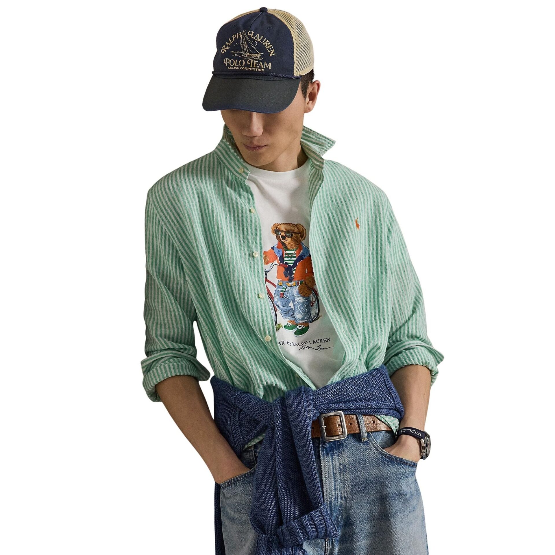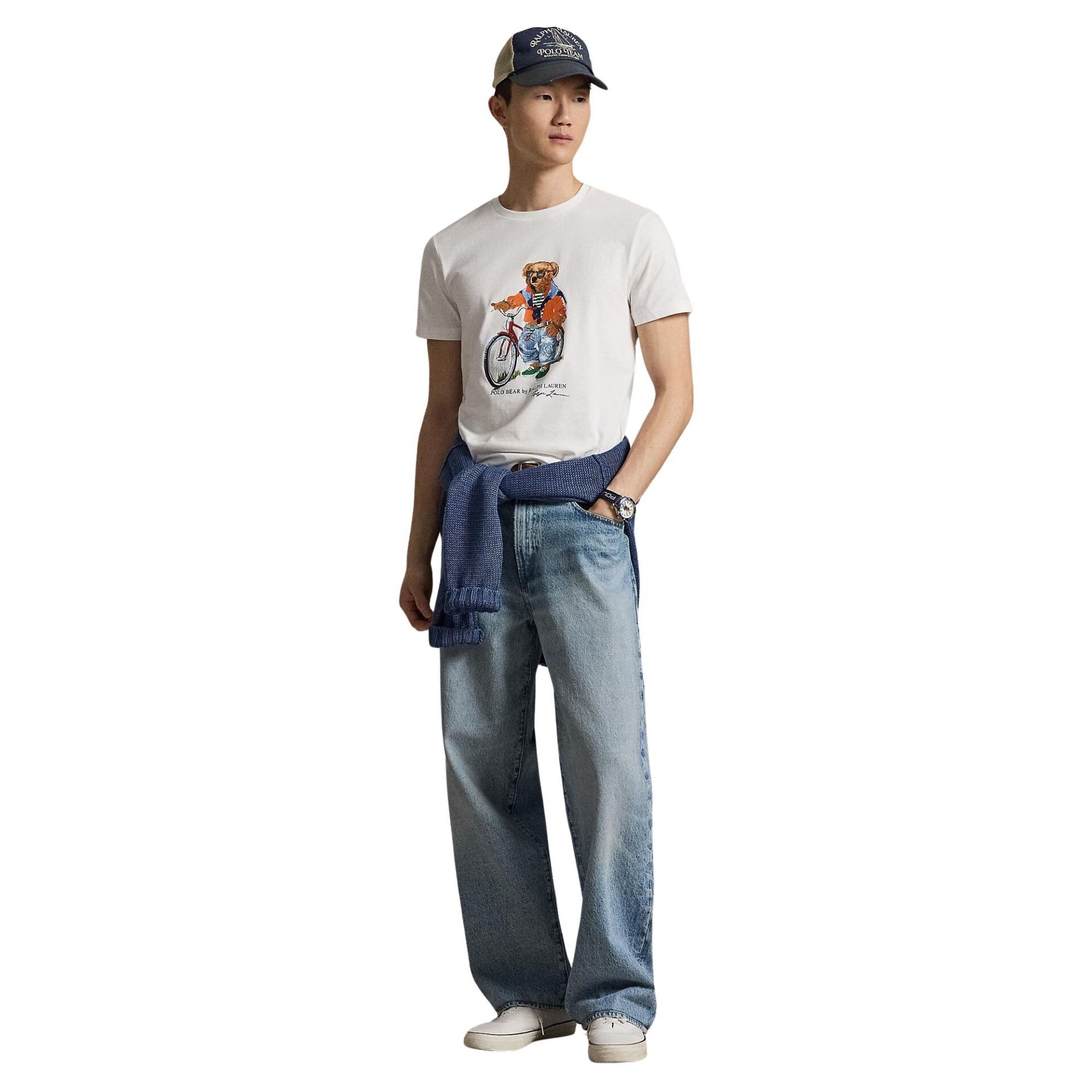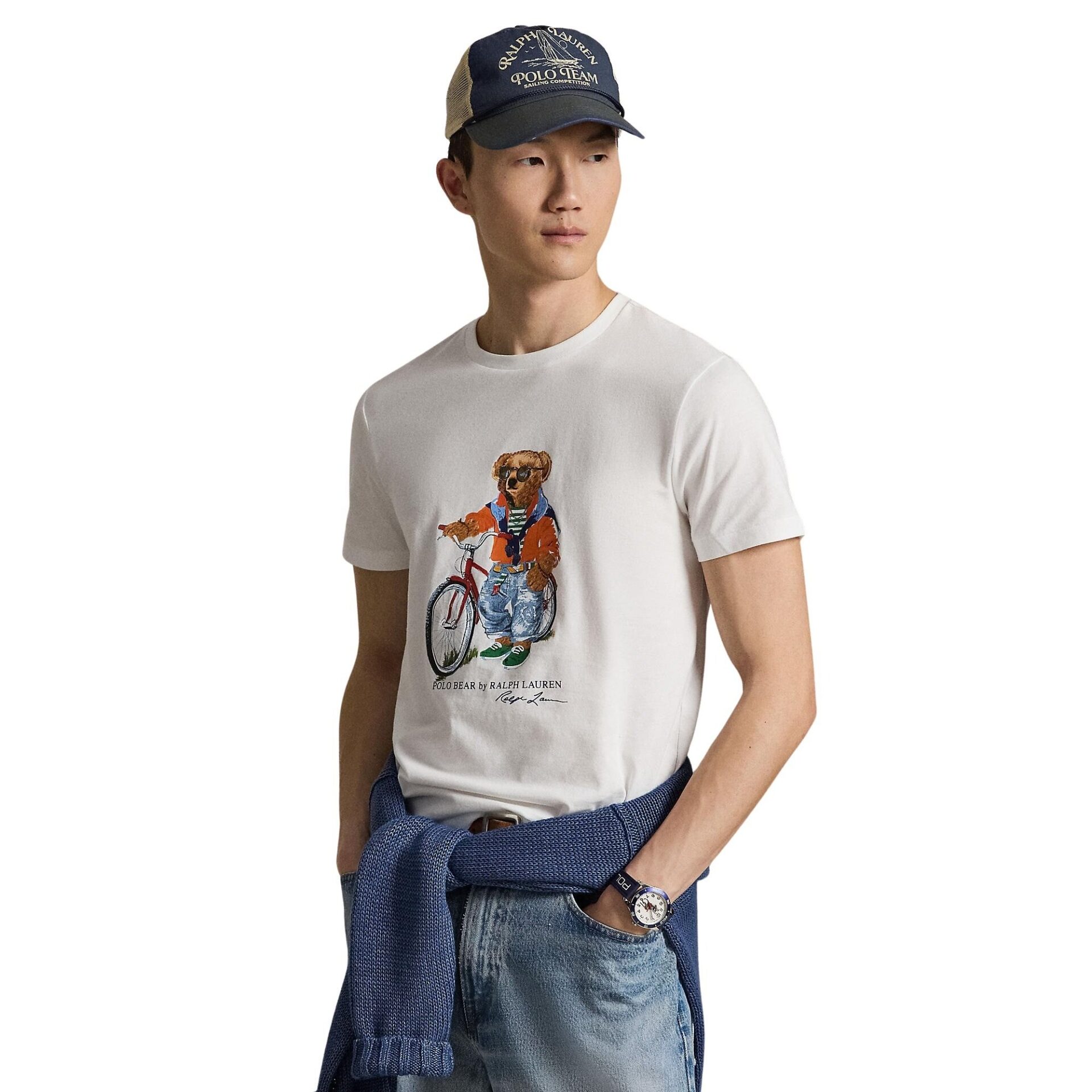 T-skjorte til herre fra Polo Ralph Lauren. Laget av myk bomullsjersey og har den populære Polo Bear trykt på brystet. Bjørnen er kledd i et fargerikt Ralph Lauren-antrekk som gir et lekent og ikonisk uttrykk. En komfortabel T-skjorte som passer perfekt til hverdagsbruk.