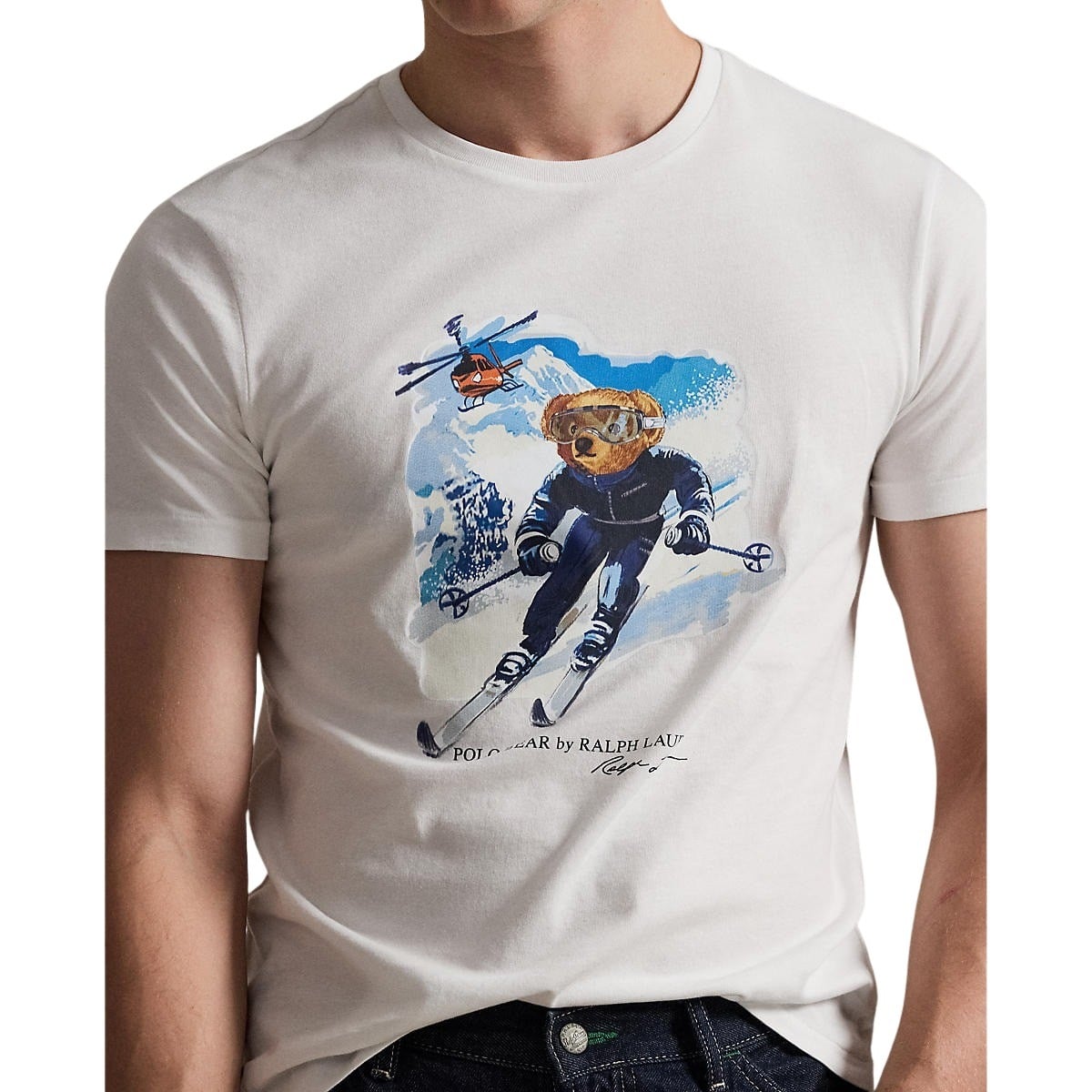 T-skjorte til herre fra Polo Ralph Lauren. En klassisk t-skjorte i myk bomull, dekorert med den ikoniske Polo Bear i et sporty skidesign. Med smal passform og eksklusiv kvalitet gir den et lekent, men raffinert uttrykk. Perfekt til både jeans og chinos.