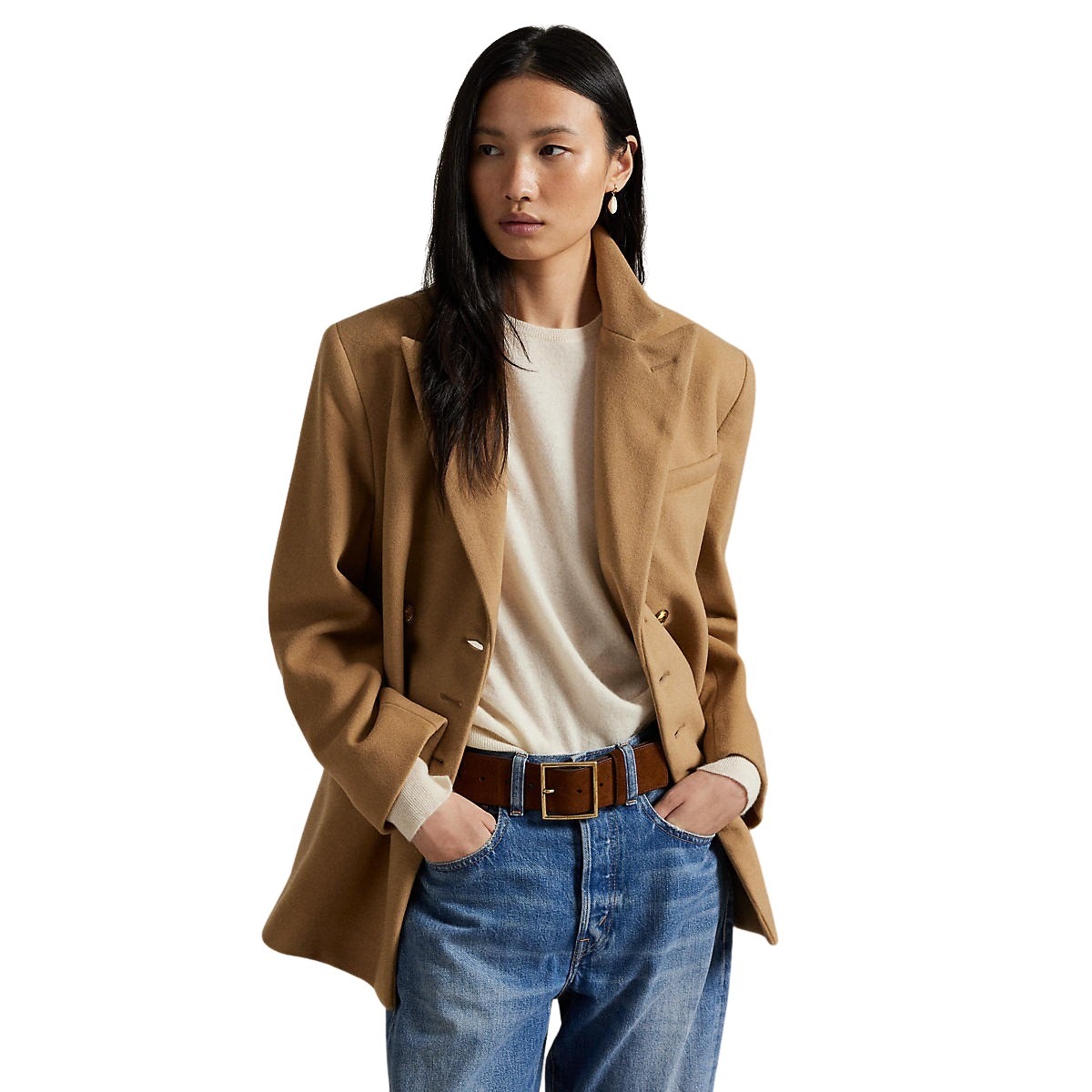 Double-Breasted Wool Melton Blazer – Camel