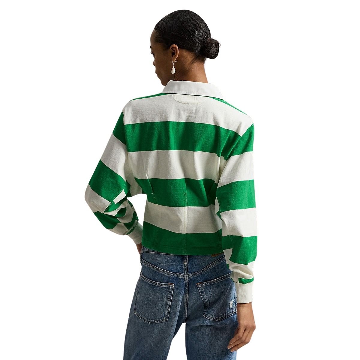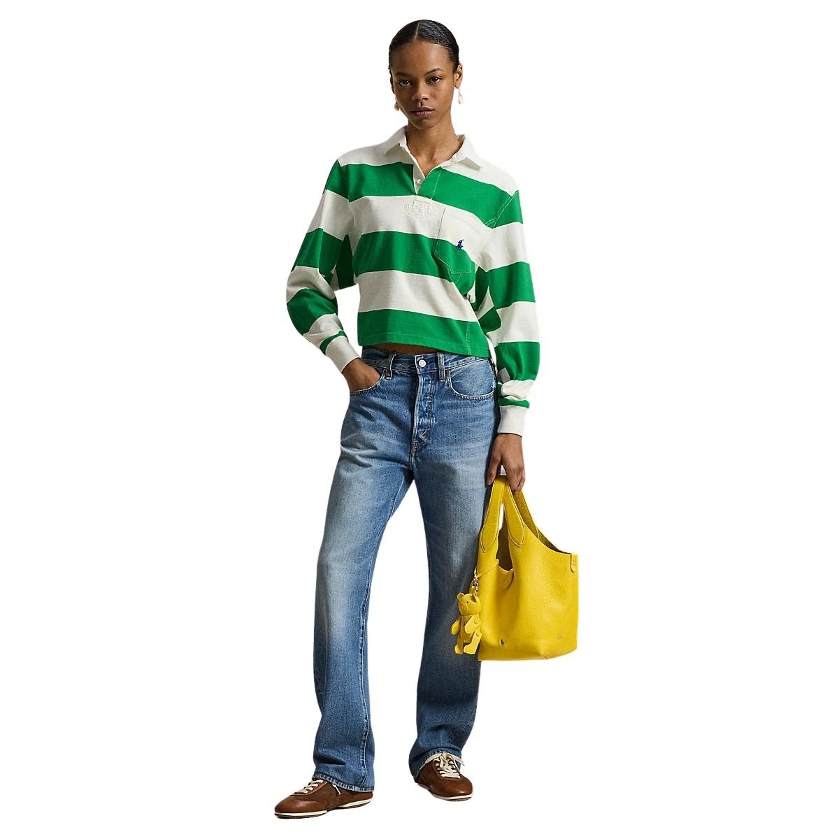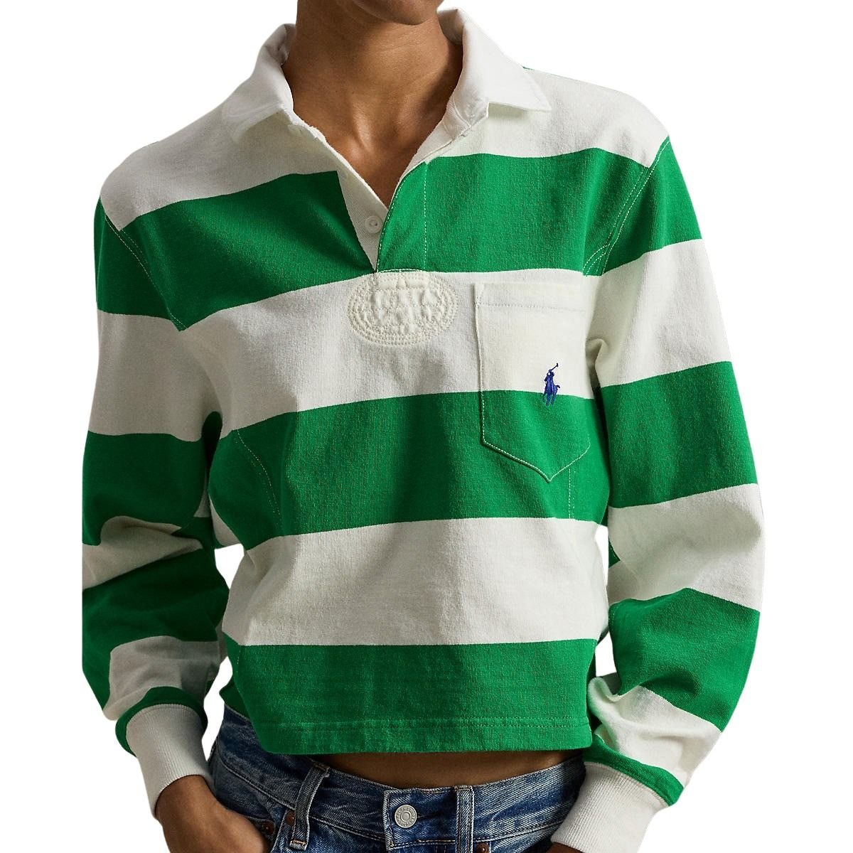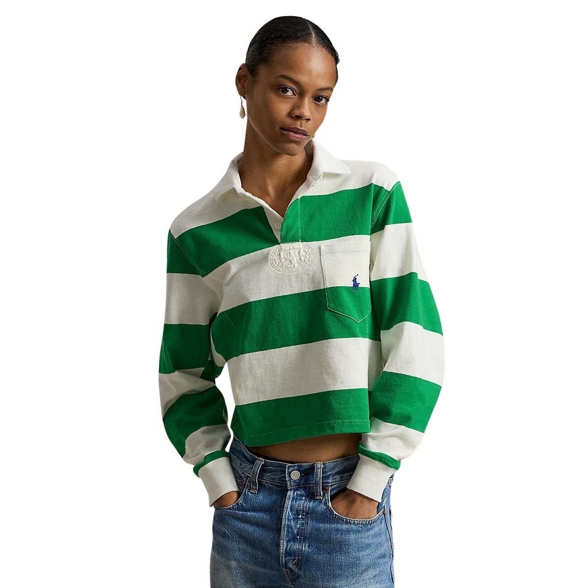 Rugbyskjorte til dame fra Polo Ralph Lauren. Laget i myk jersey i en flatterende, avslappet passform. De brede stripene og kragen gir et klassisk, sporty uttrykk. Avsluttet med brystlomme og brodert Pony for en tidløs Polo-look.